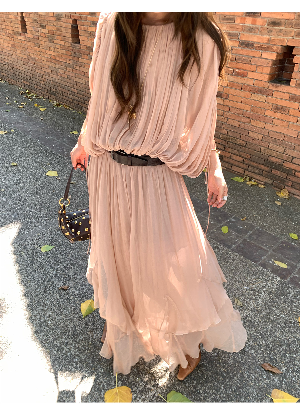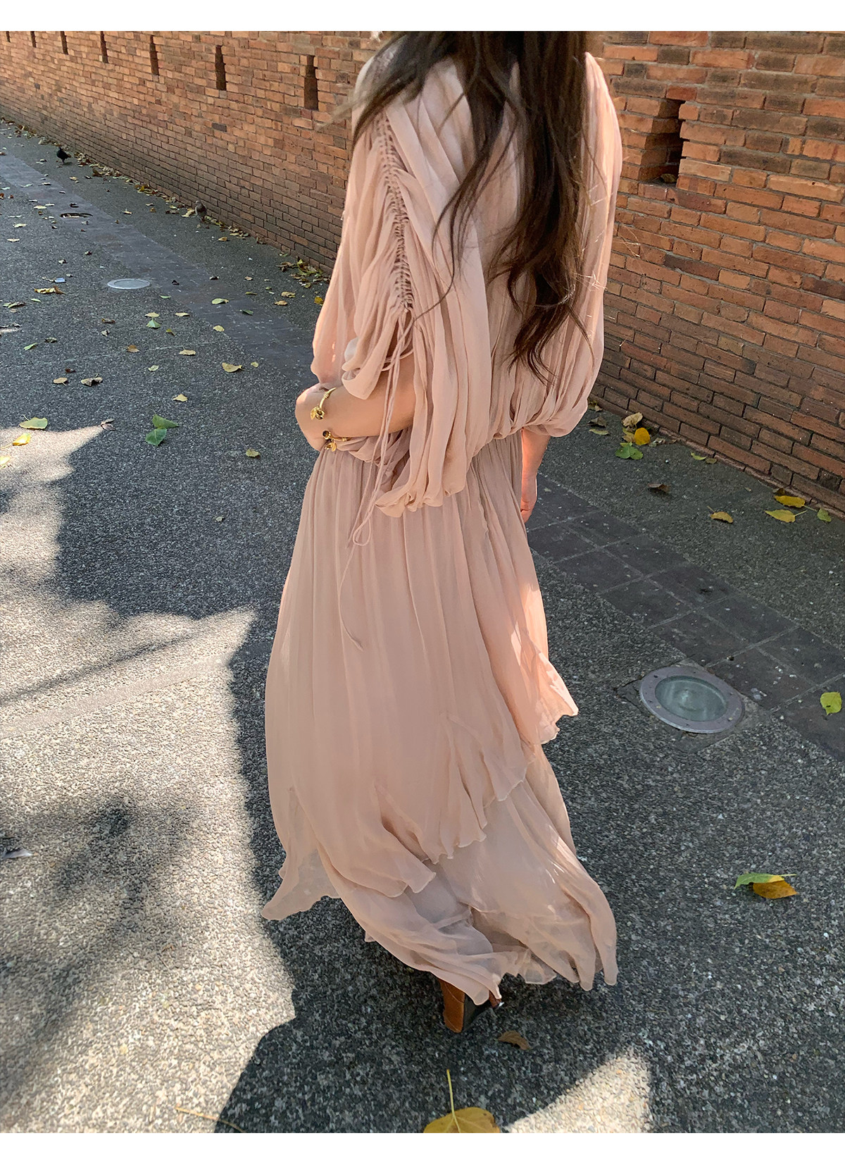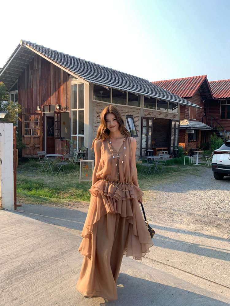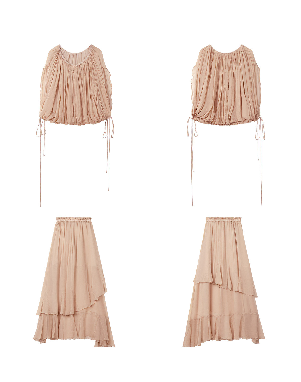 Drawstring Lantern Sleeve Waist-Cinching Long skirt Two-Piece Set
