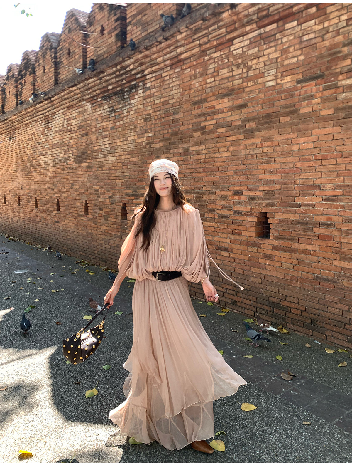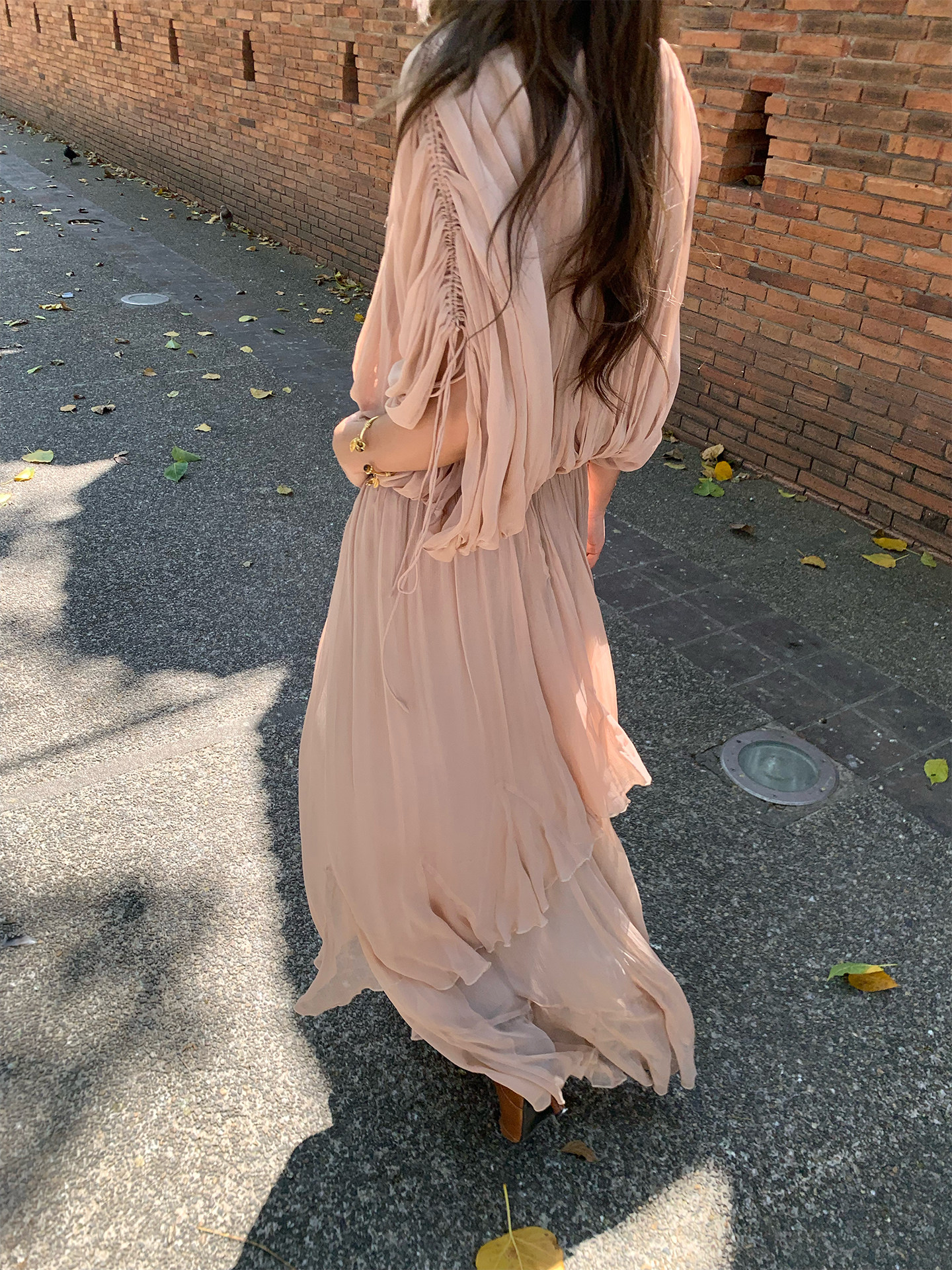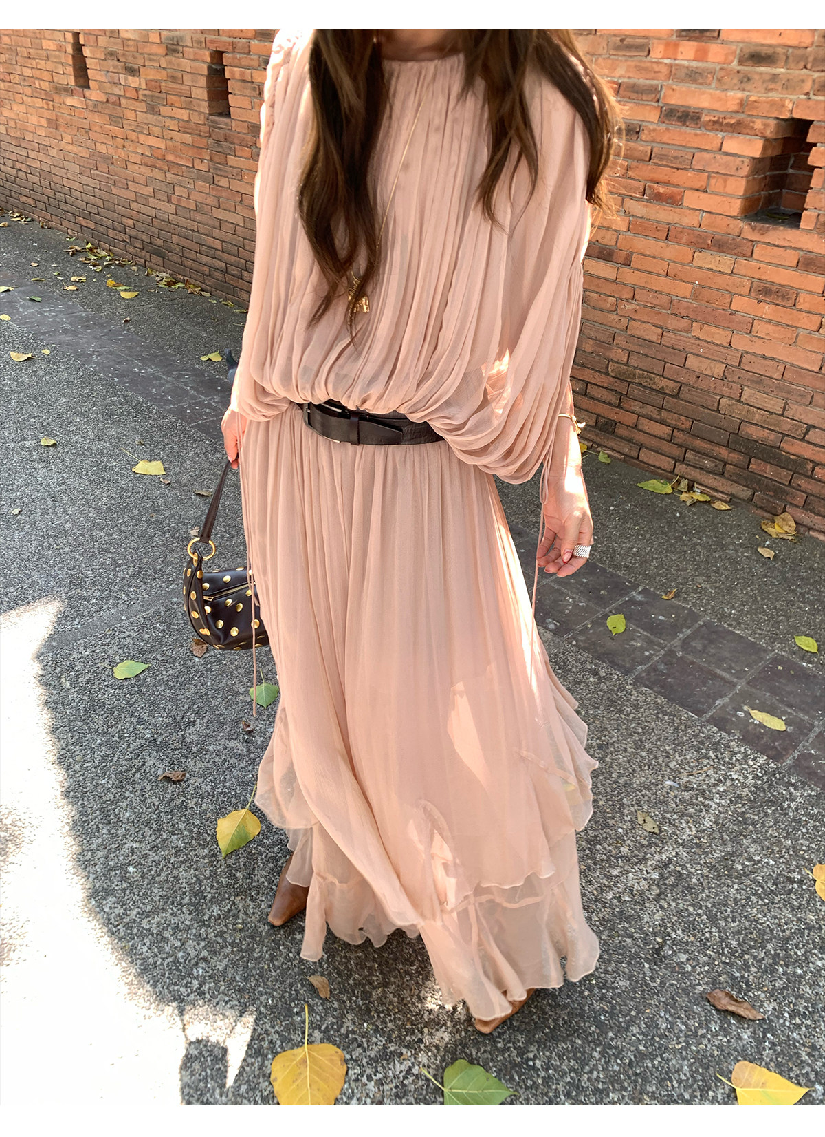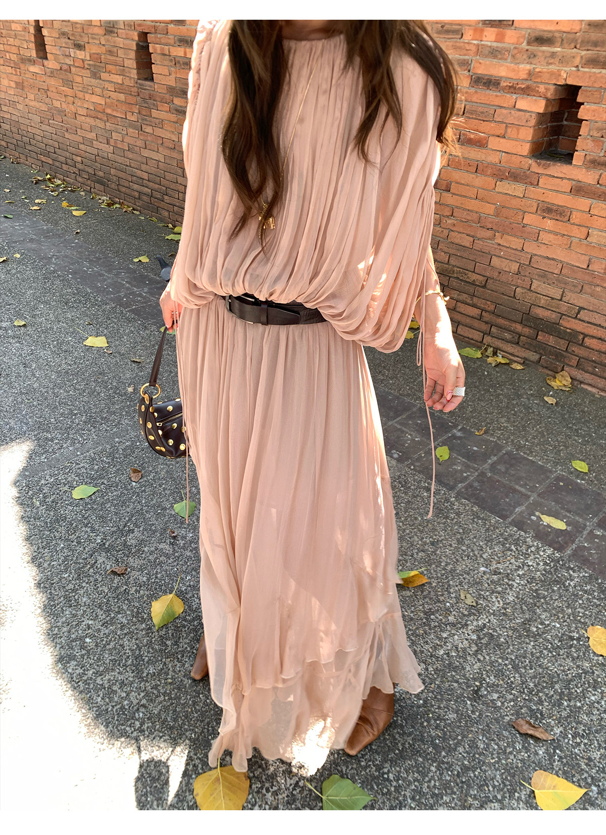 Drawstring Lantern Sleeve Waist-Cinching Long skirt Two-Piece Set