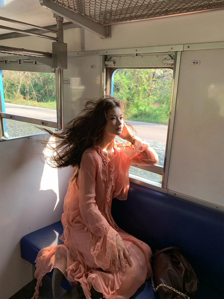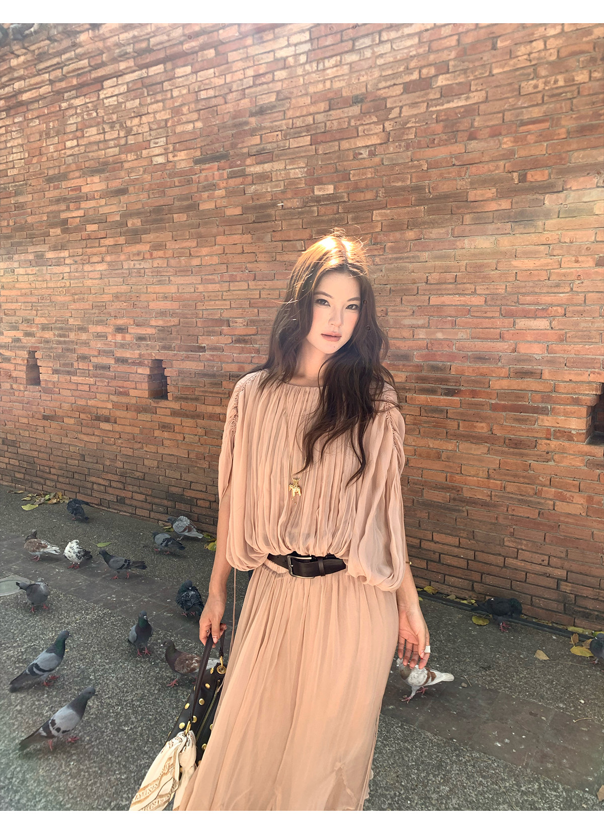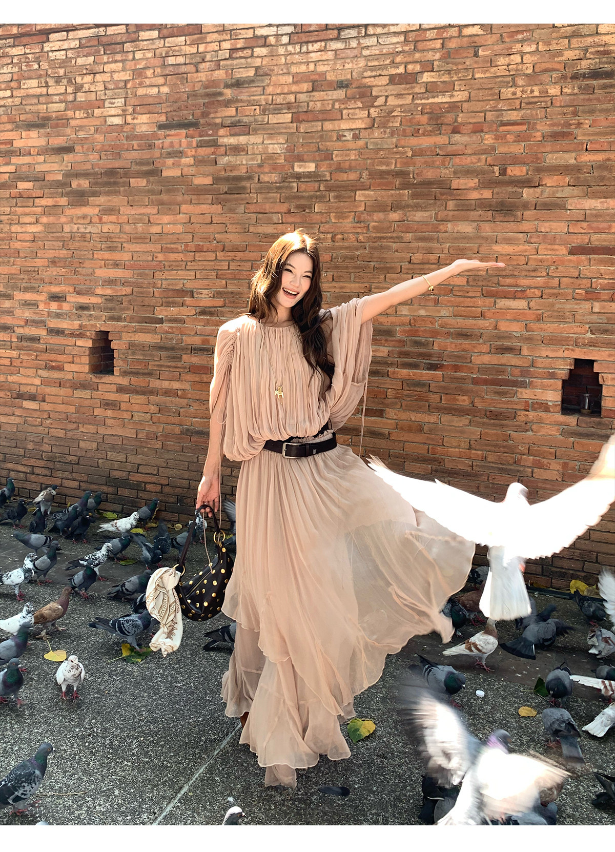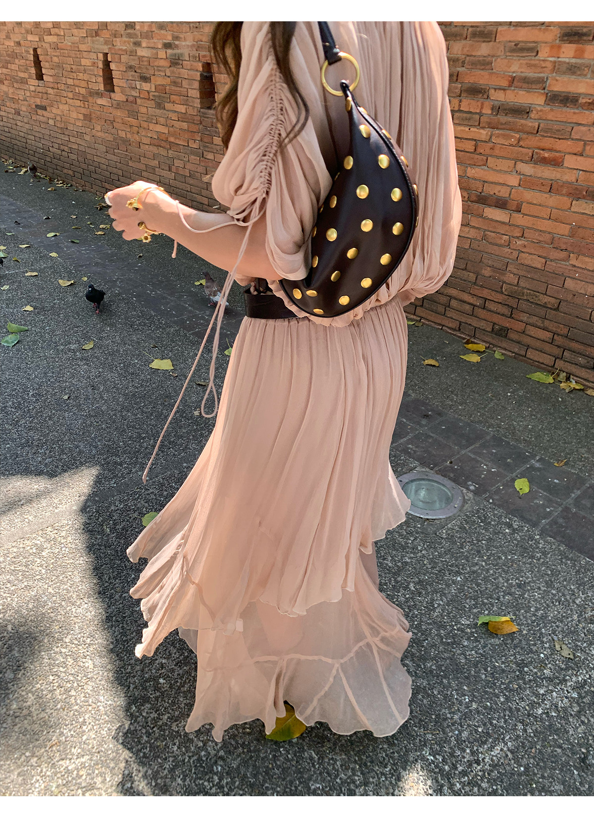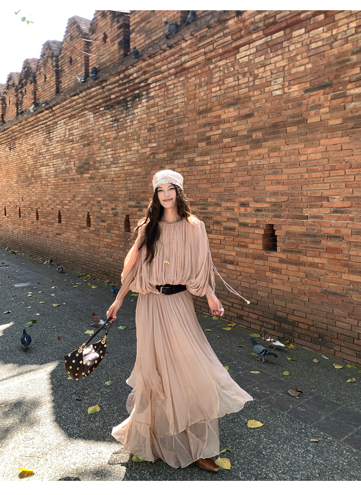 Drawstring Lantern Sleeve Waist-Cinching Long skirt Two-Piece Set