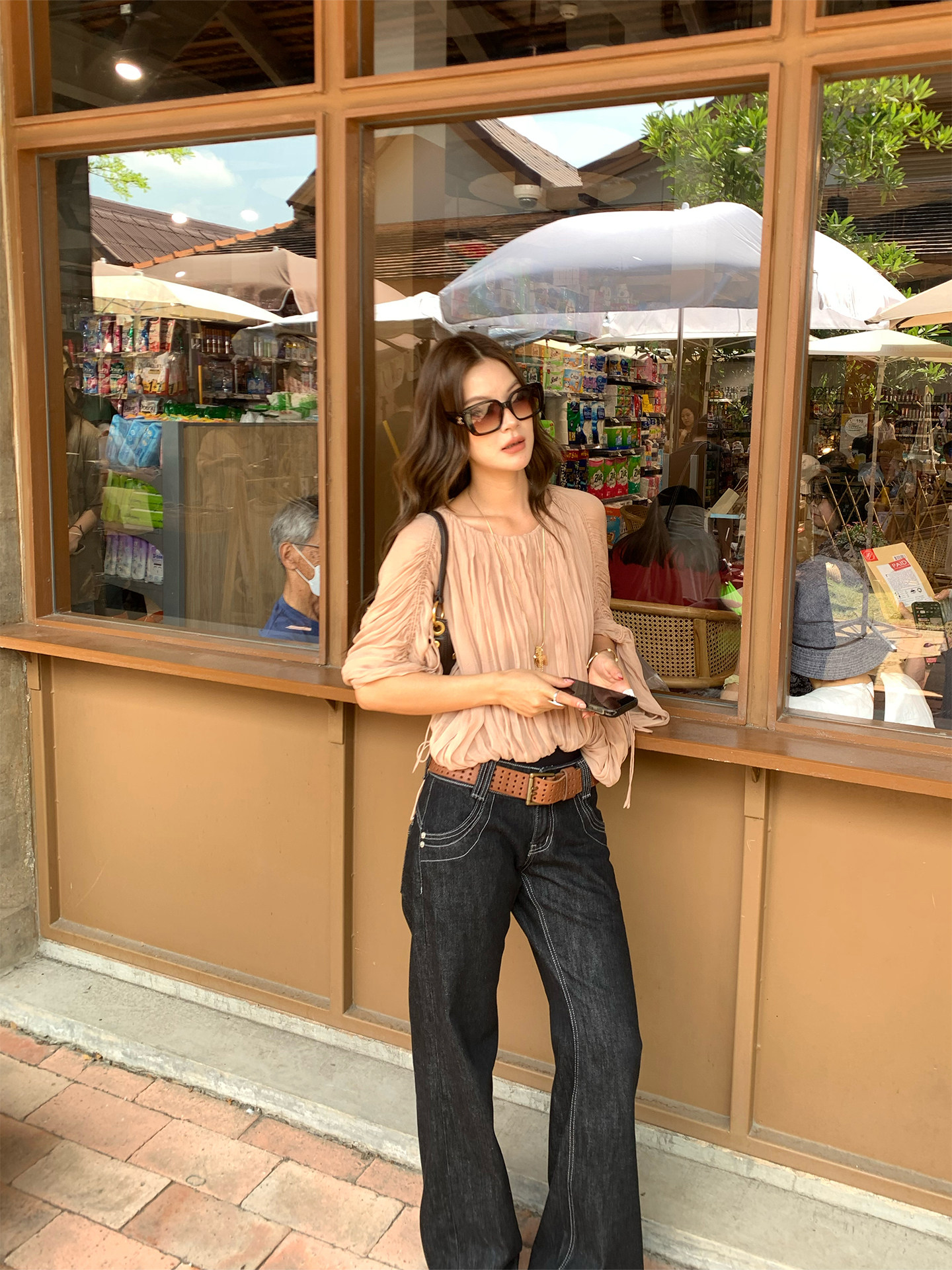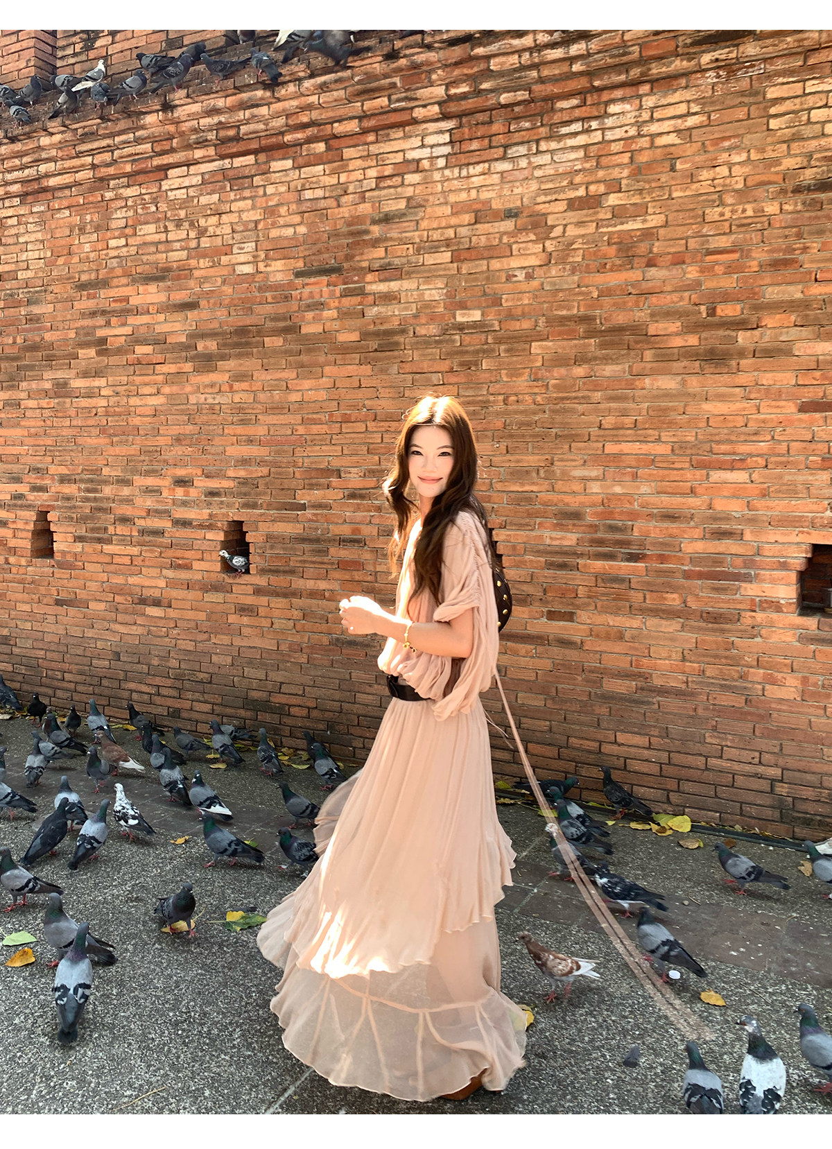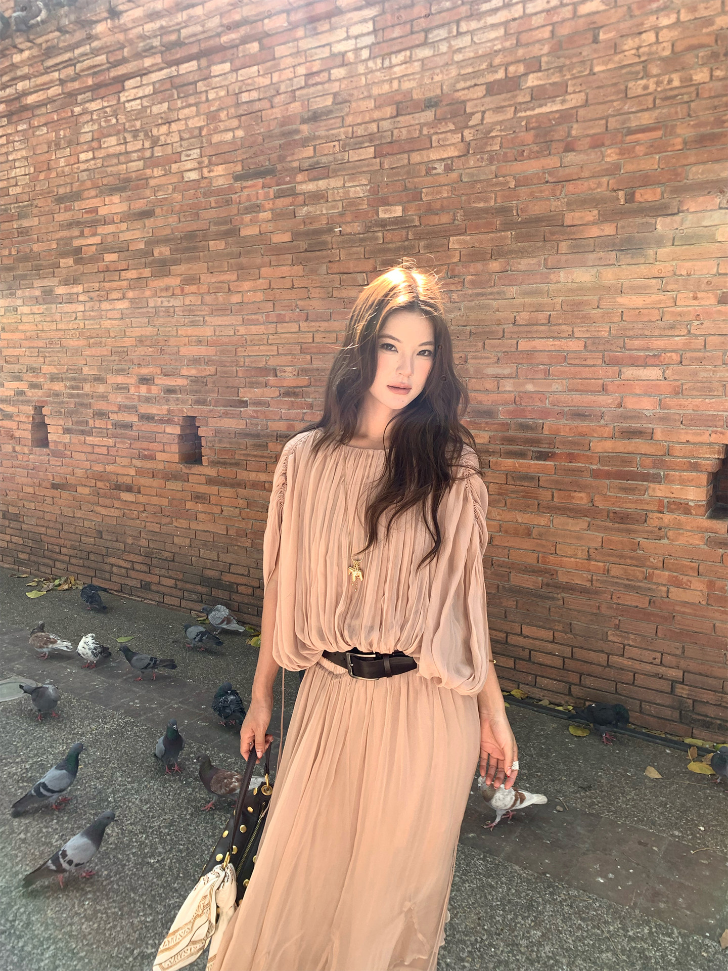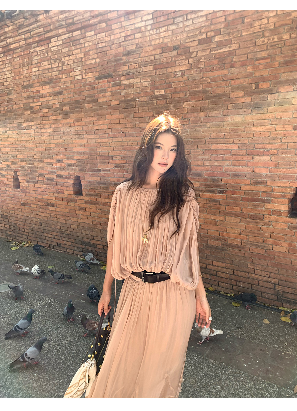 Drawstring Lantern Sleeve Waist-Cinching Long skirt Two-Piece Set