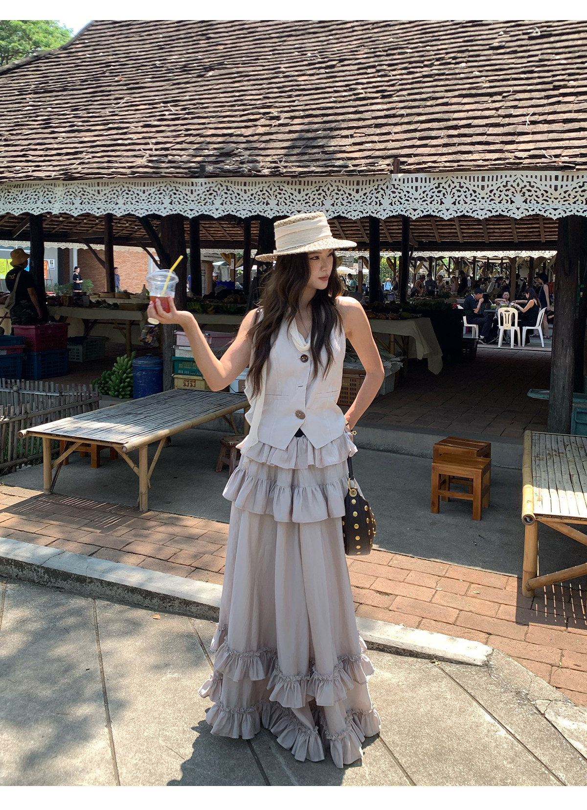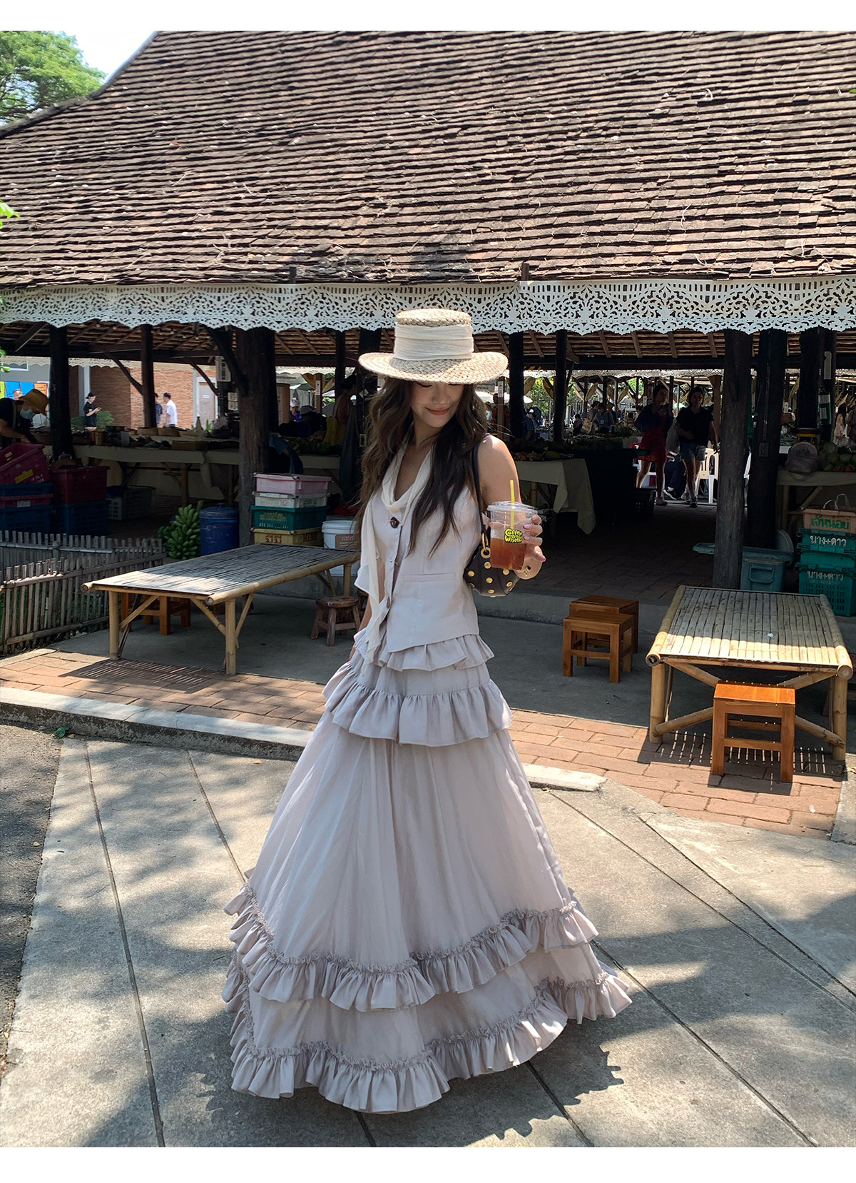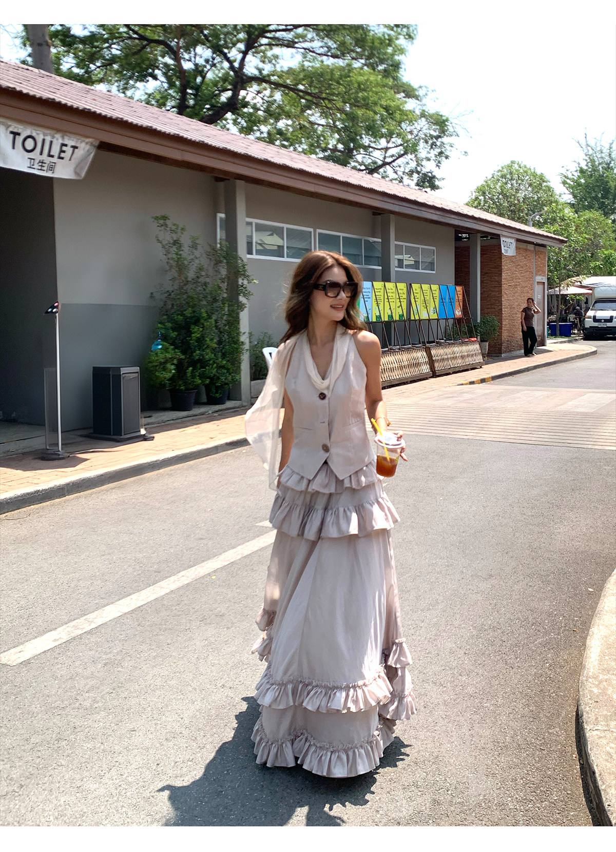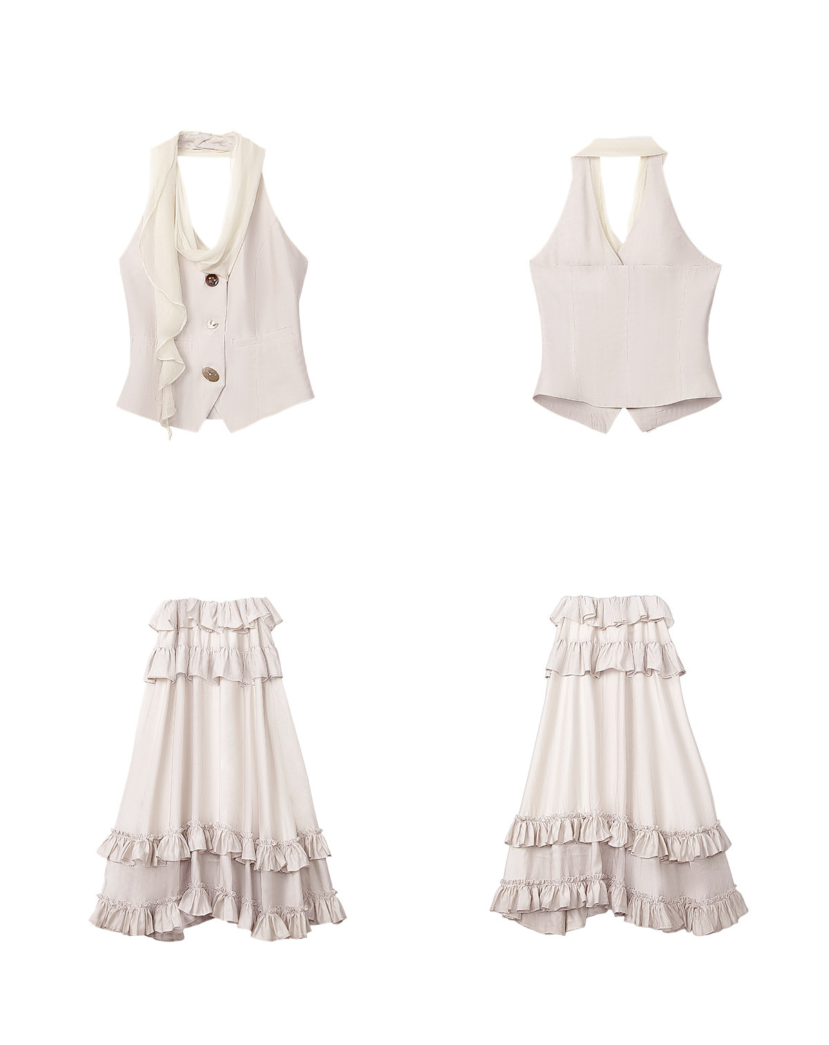 Ribbon Tank Top Layered Skirt Two-Piece Set