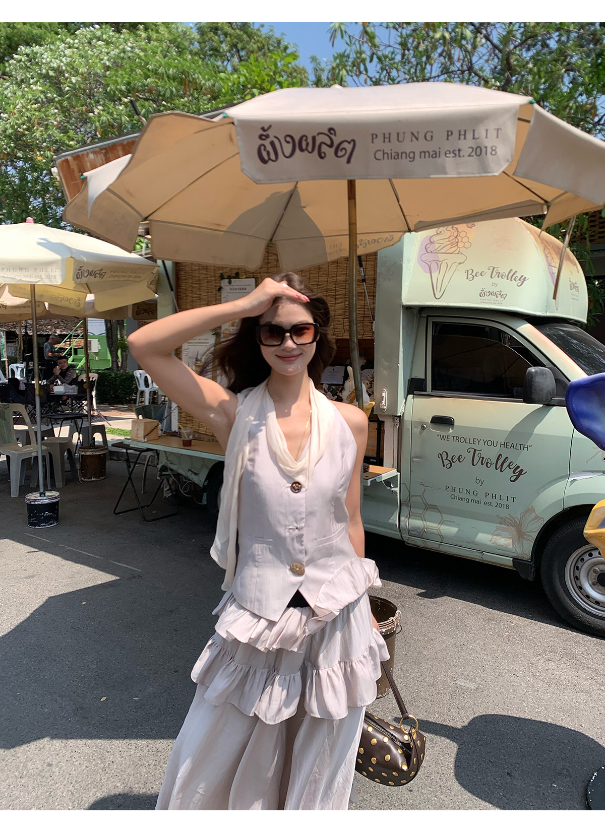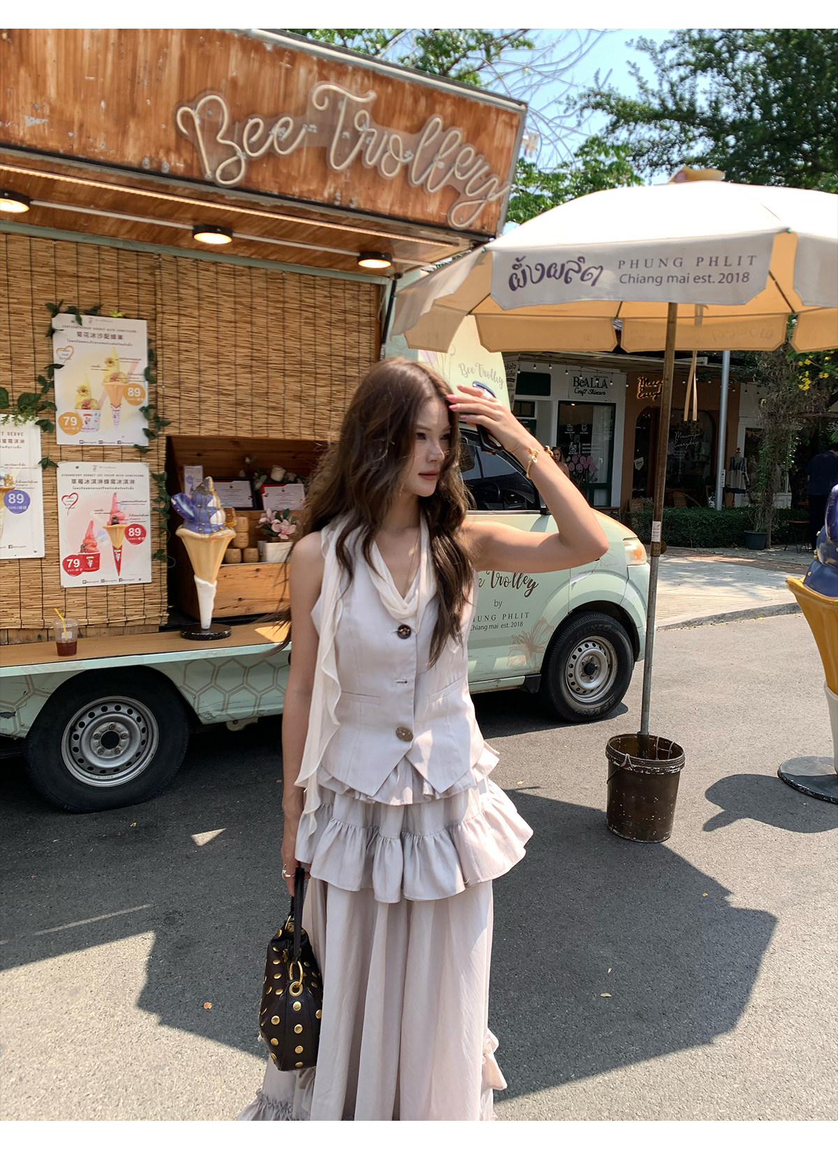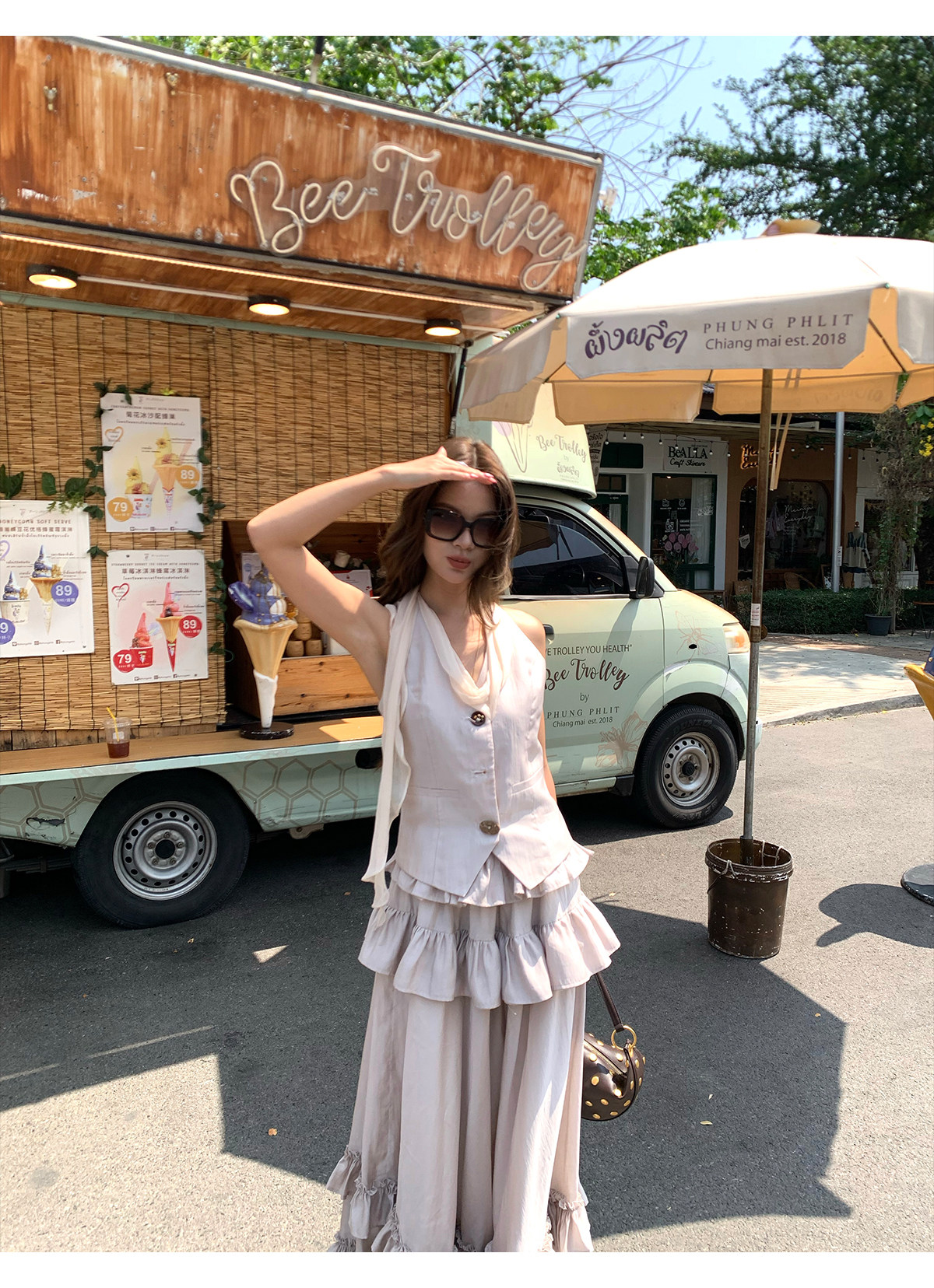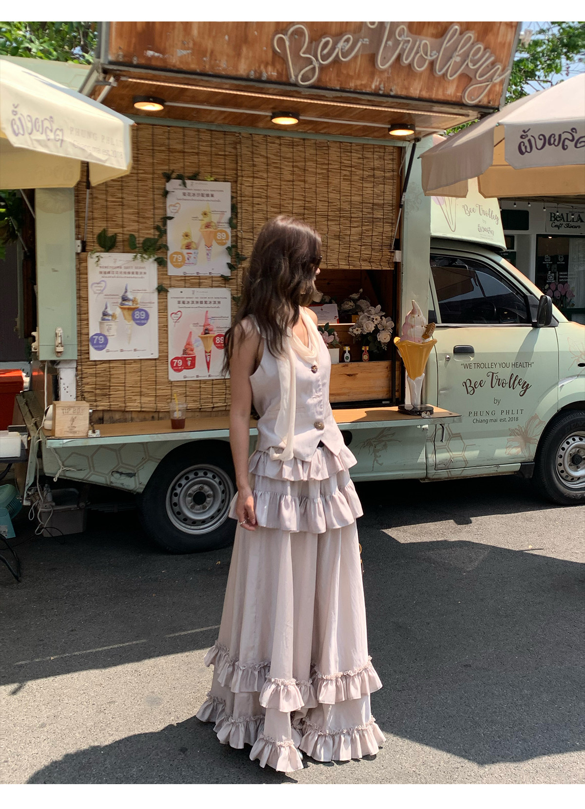 Ribbon Tank Top Layered Skirt Two-Piece Set