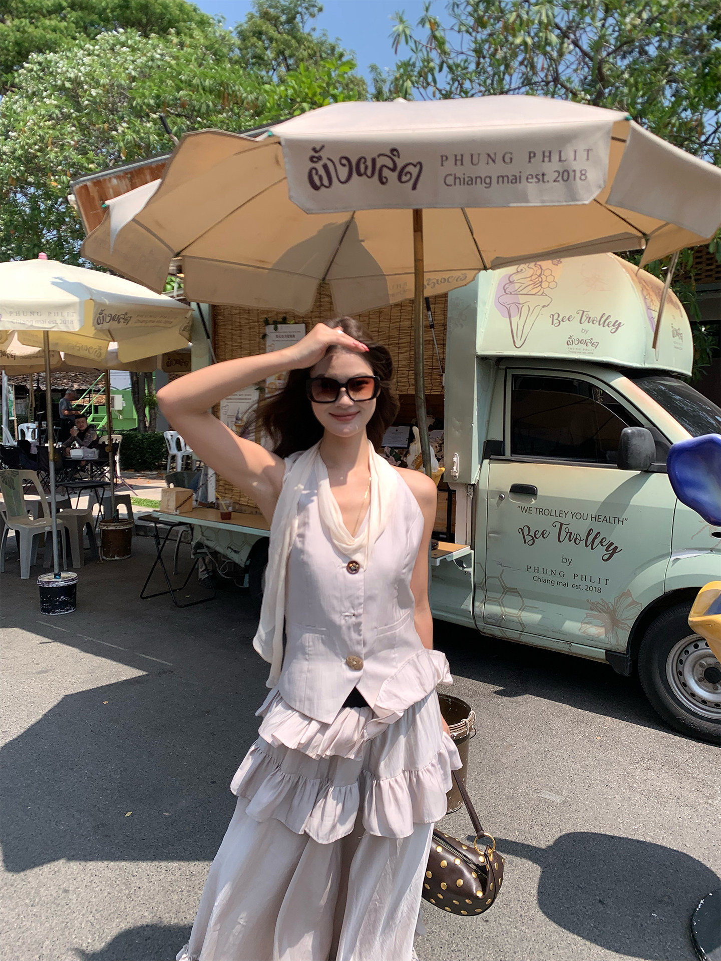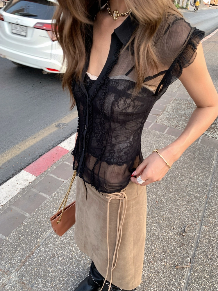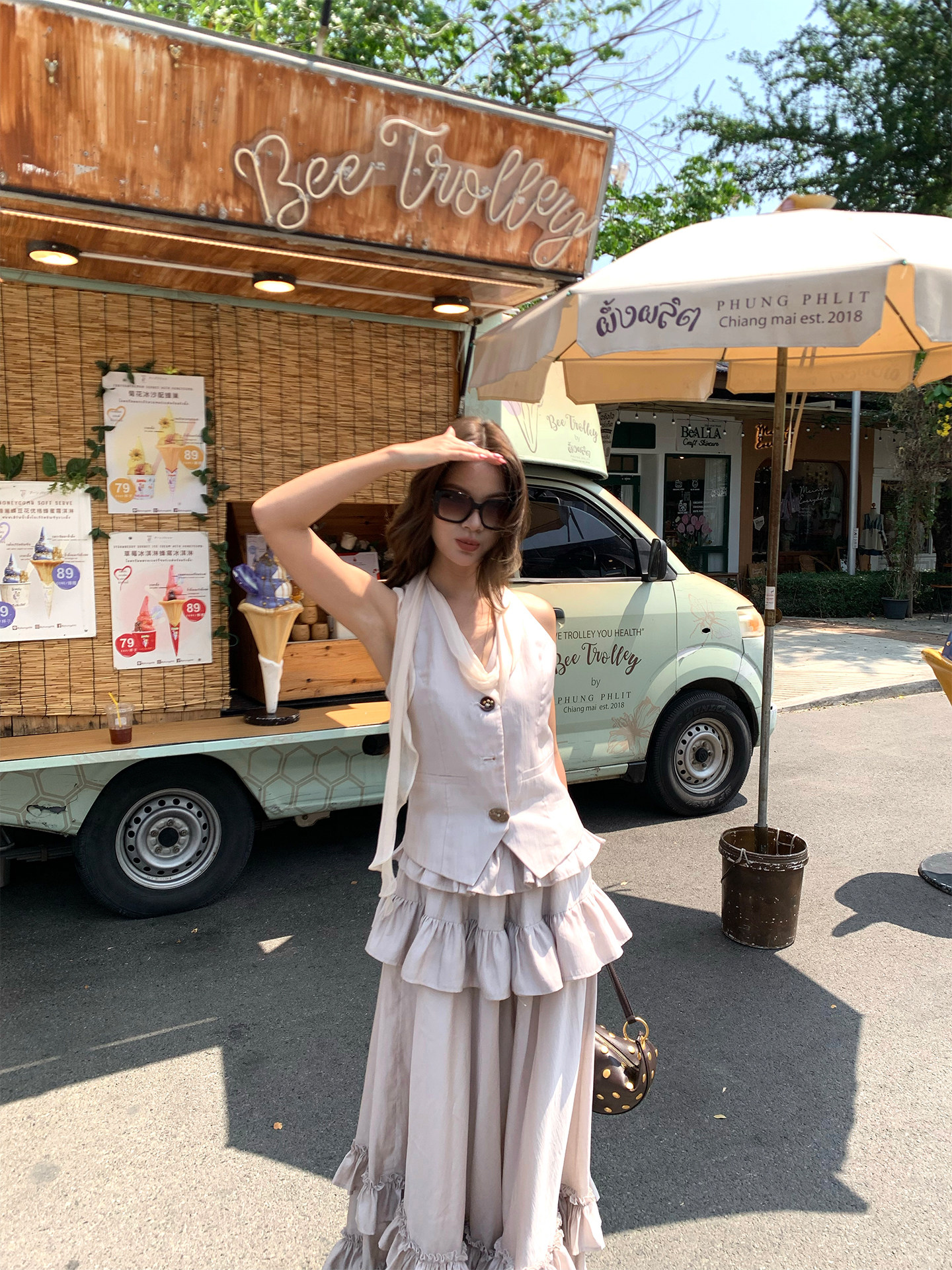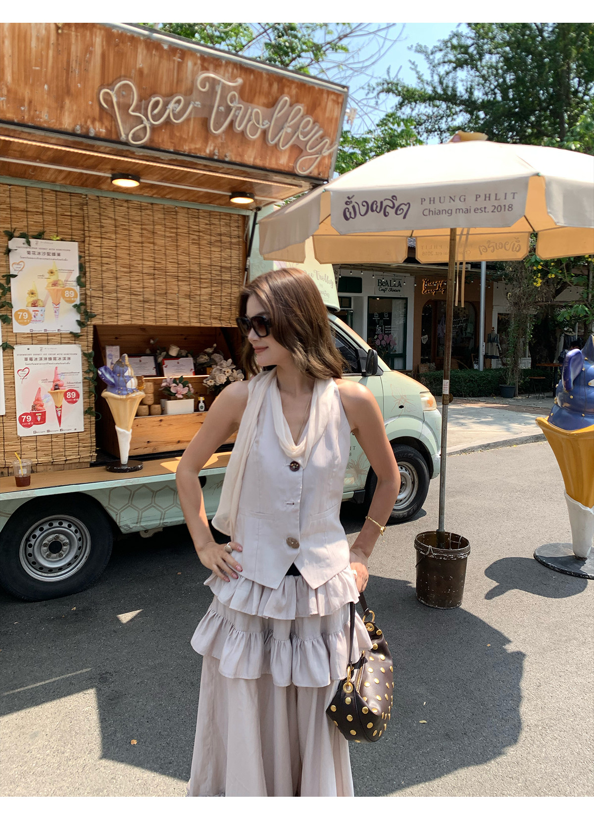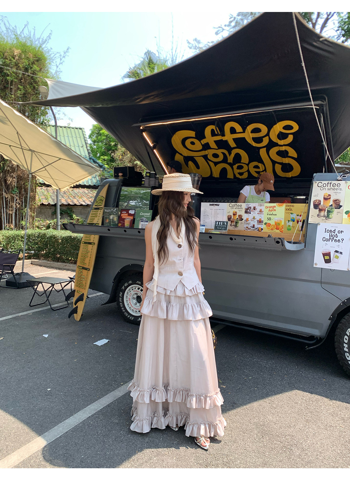 Ribbon Tank Top Layered Skirt Two-Piece Set