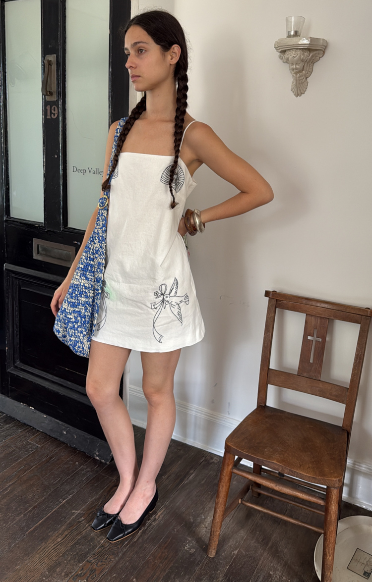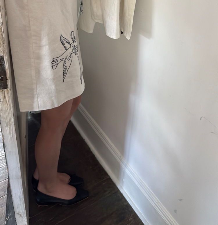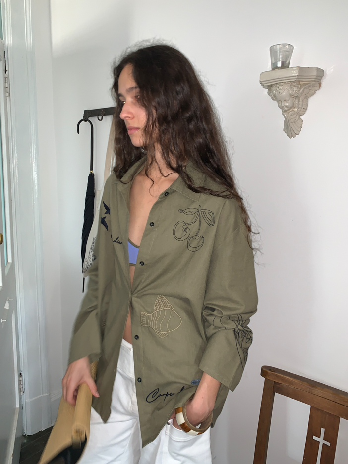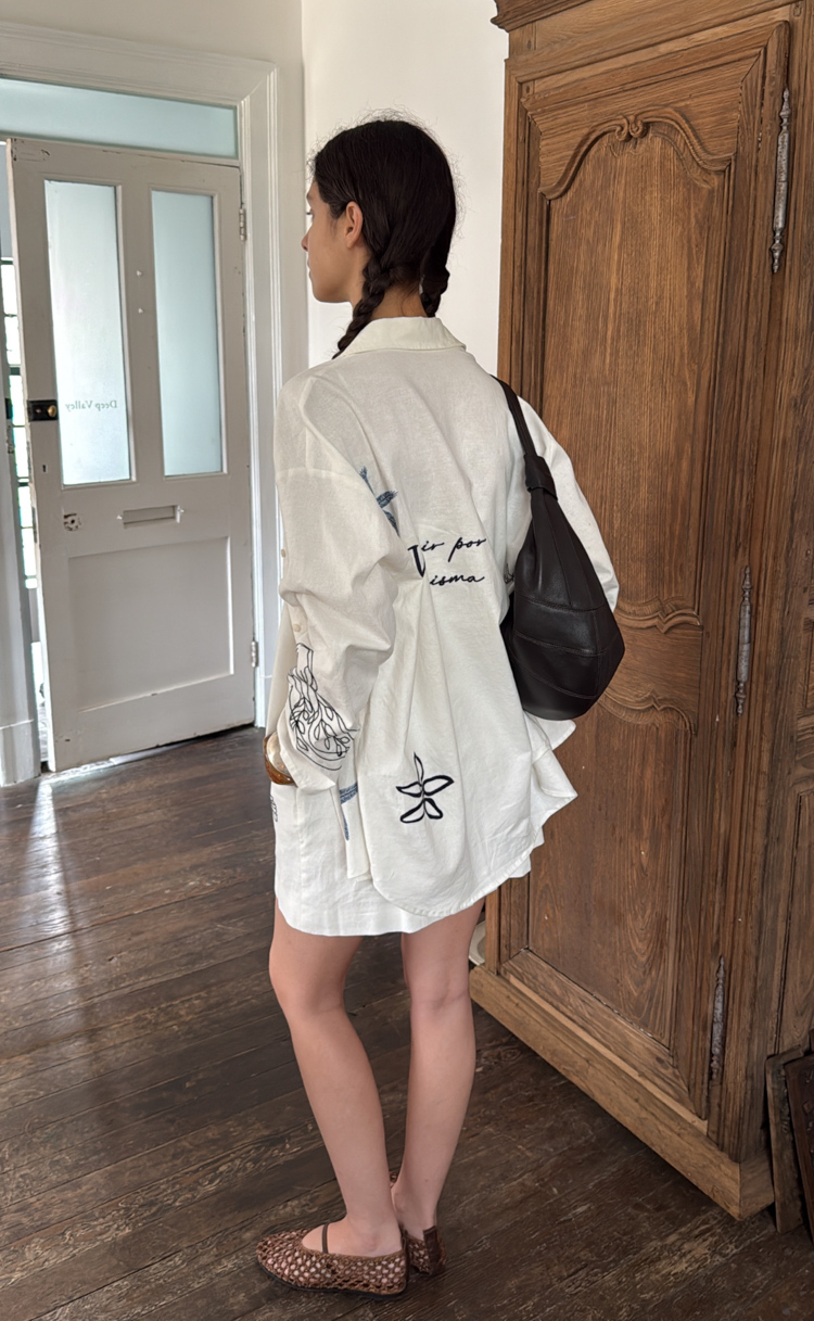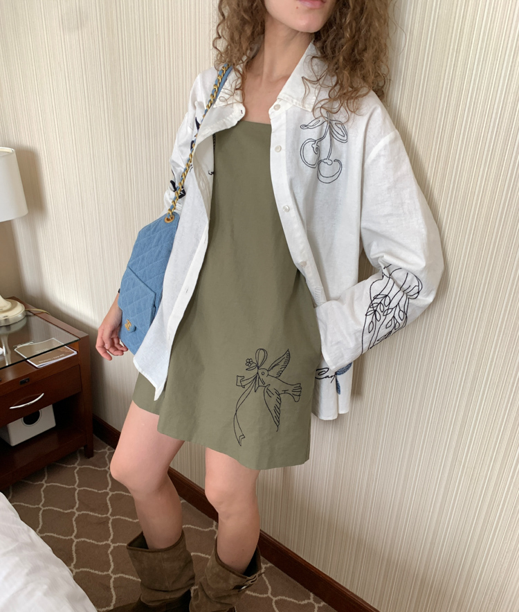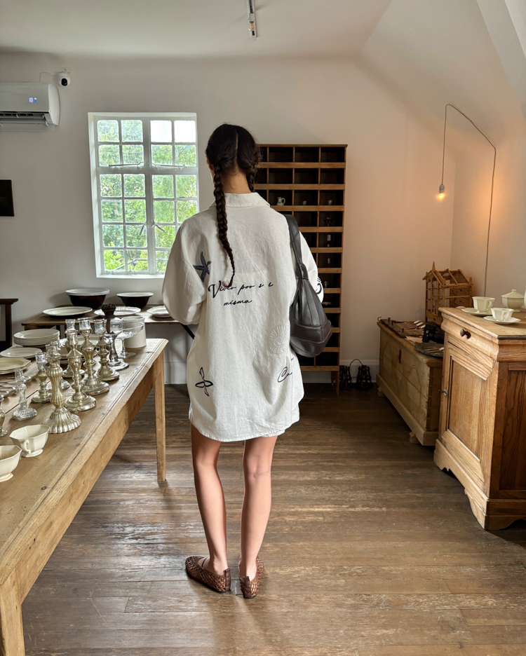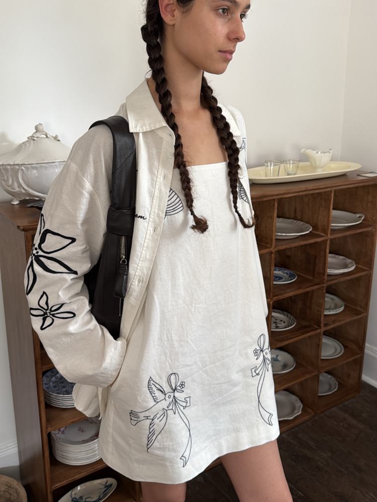 Linen Cotton Blend Vintage Illustrated Embroidered Shirt / Dress