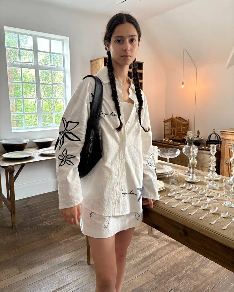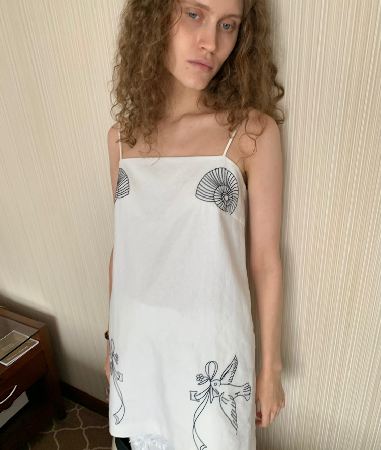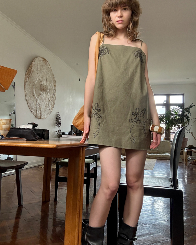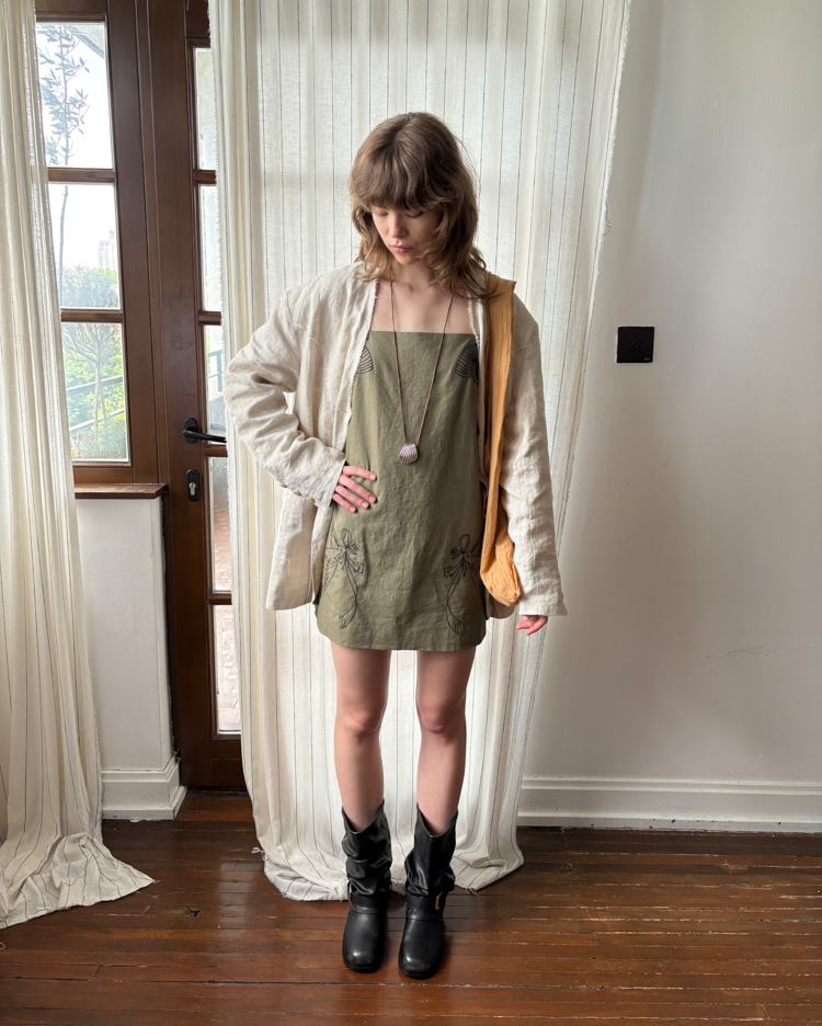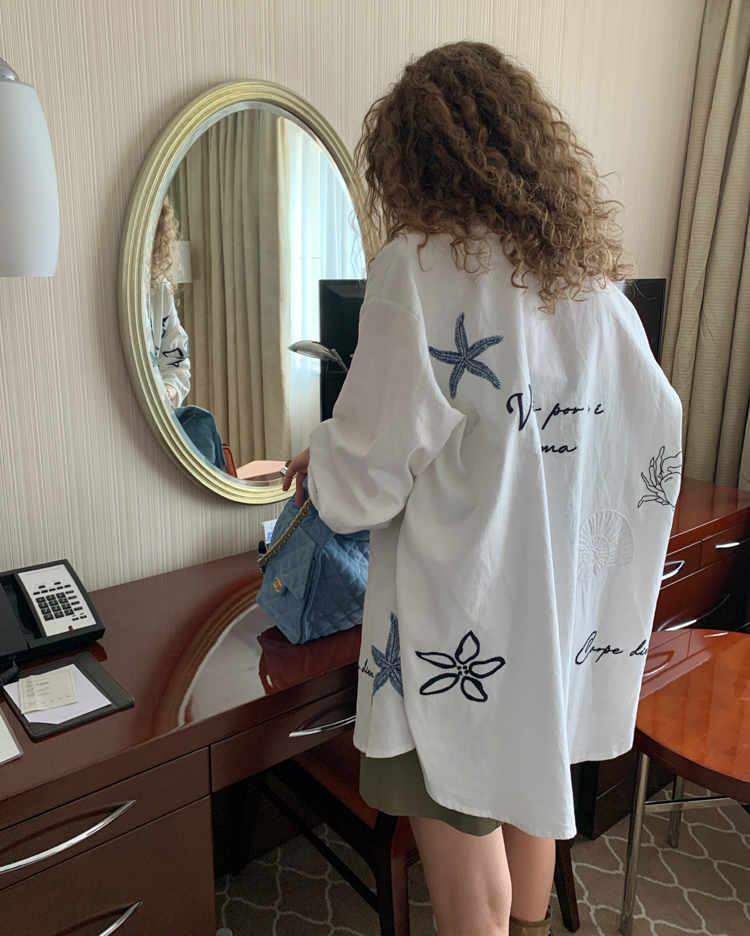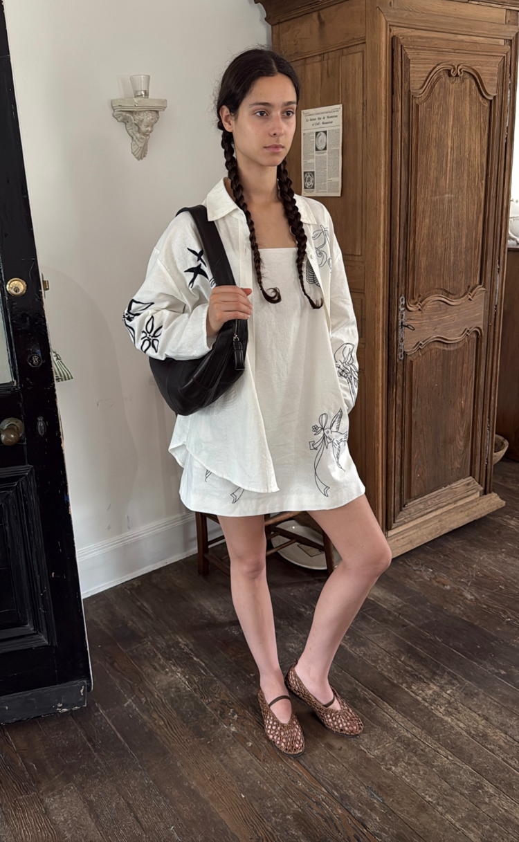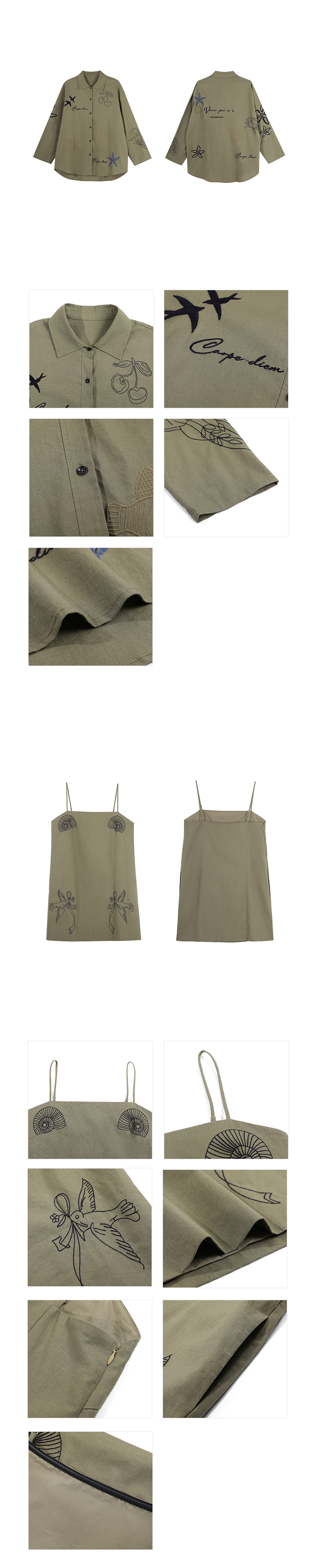 Linen Cotton Blend Vintage Illustrated Embroidered Shirt / Dress