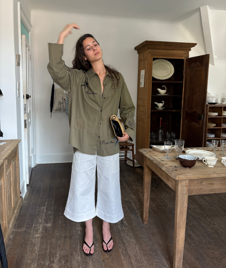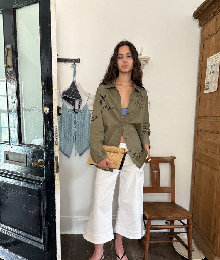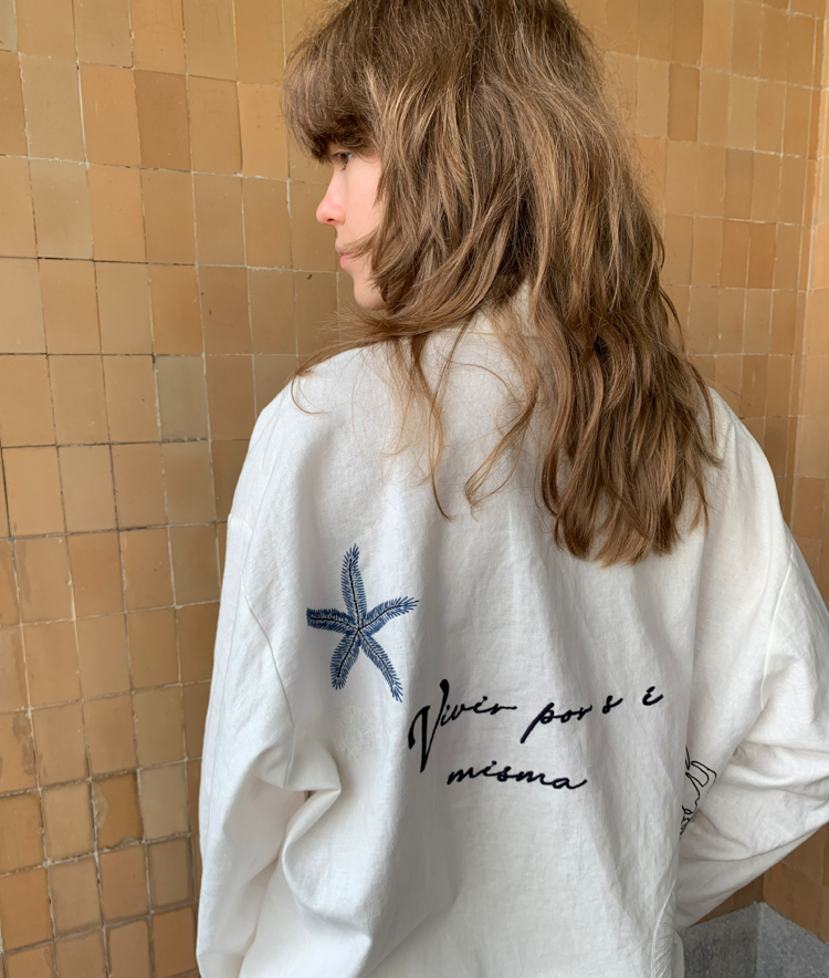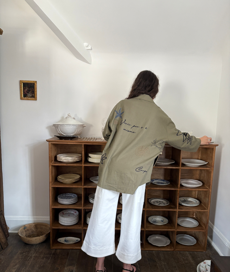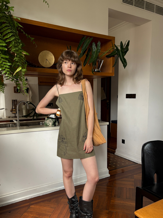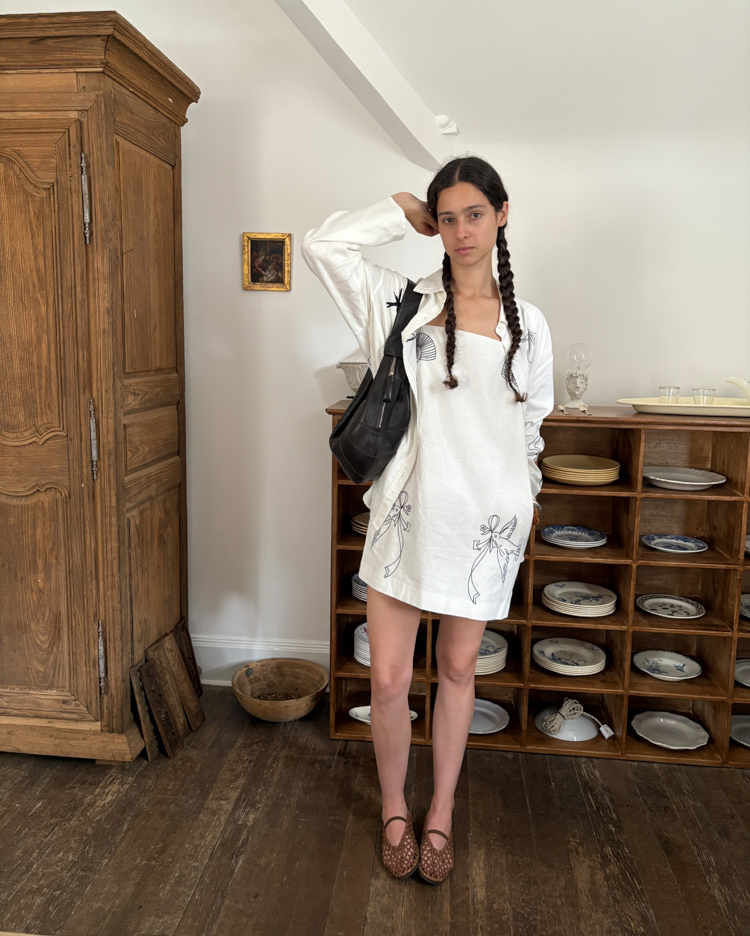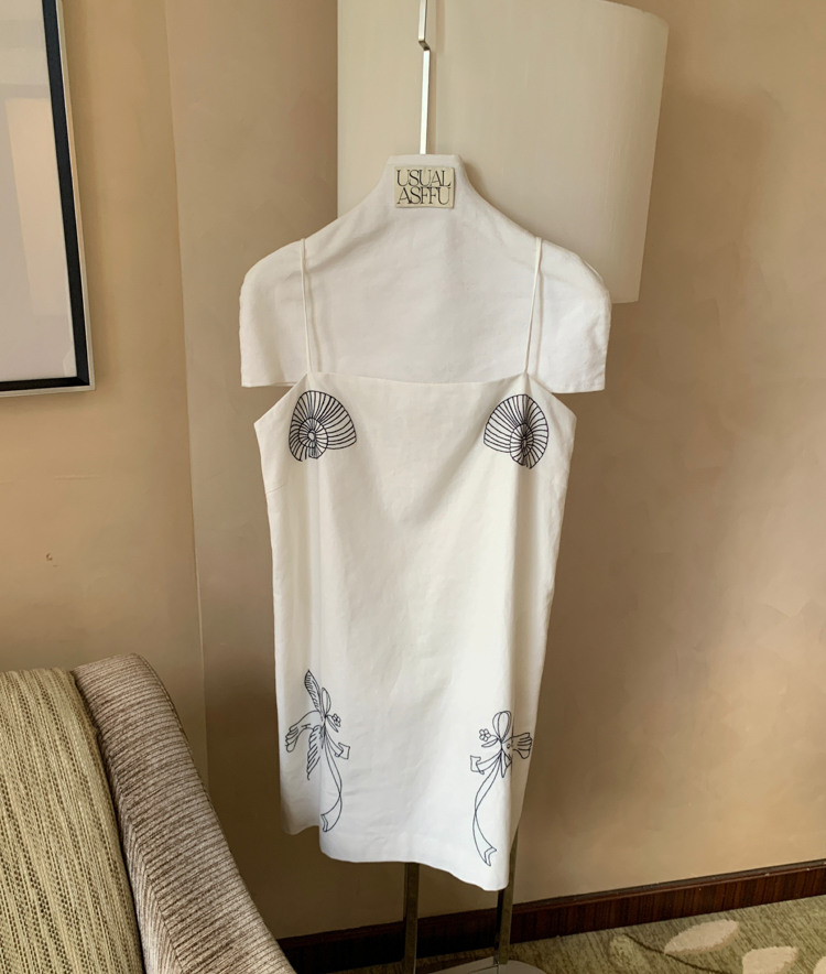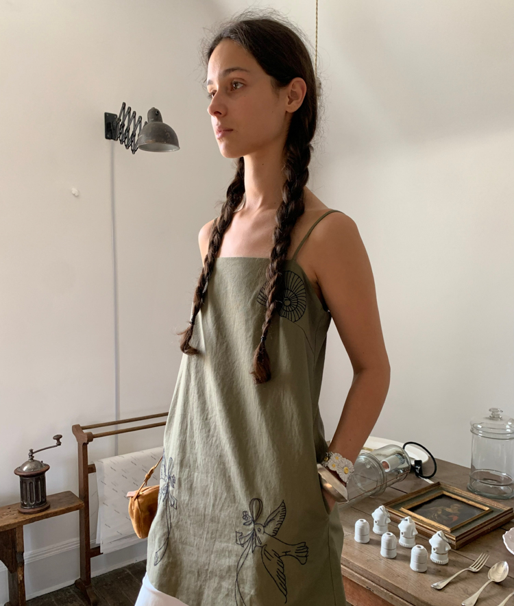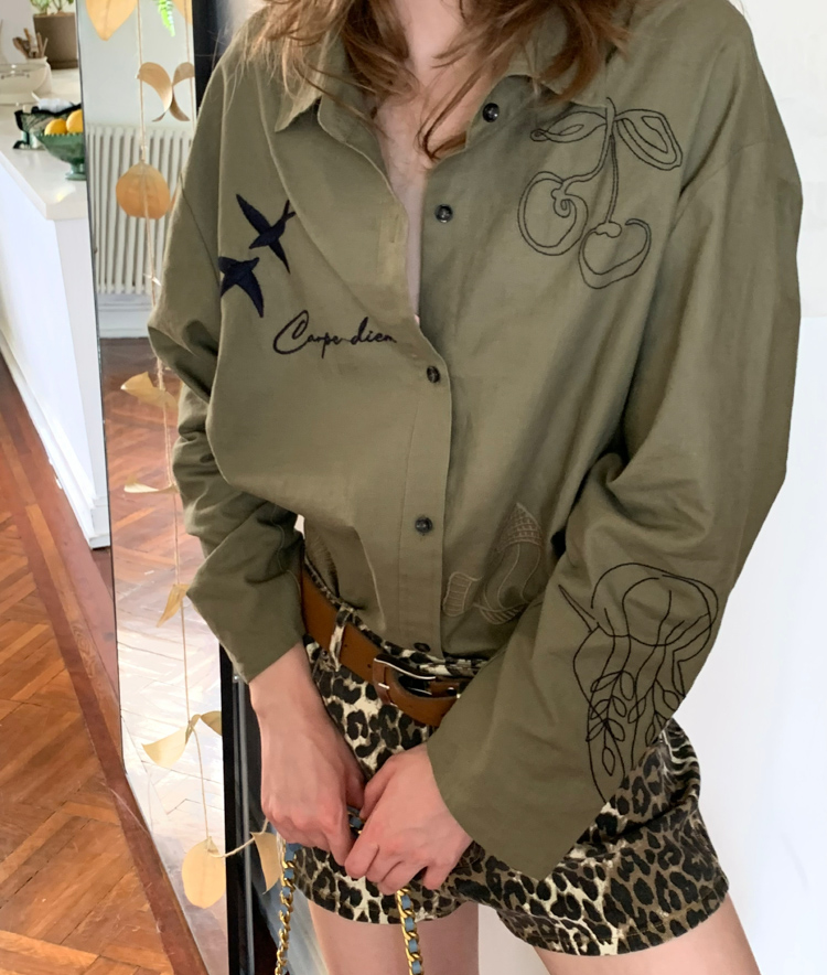 Linen Cotton Blend Vintage Illustrated Embroidered Shirt / Dress