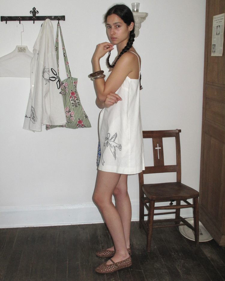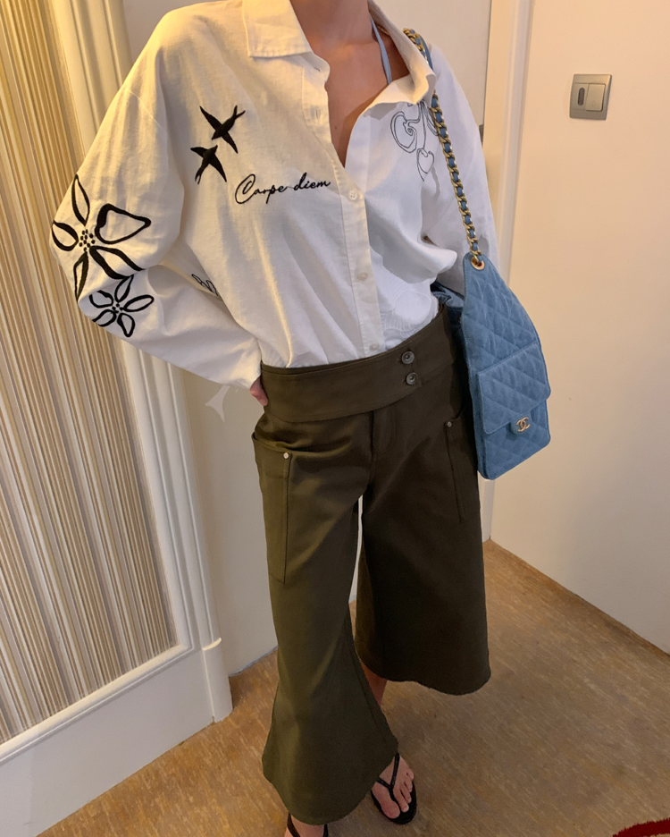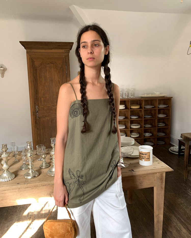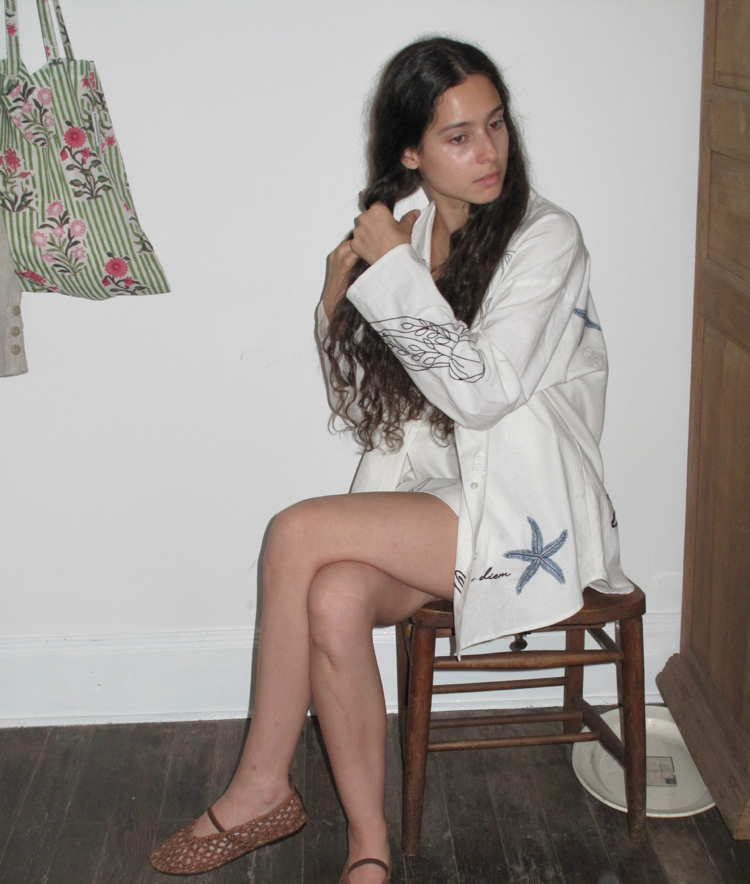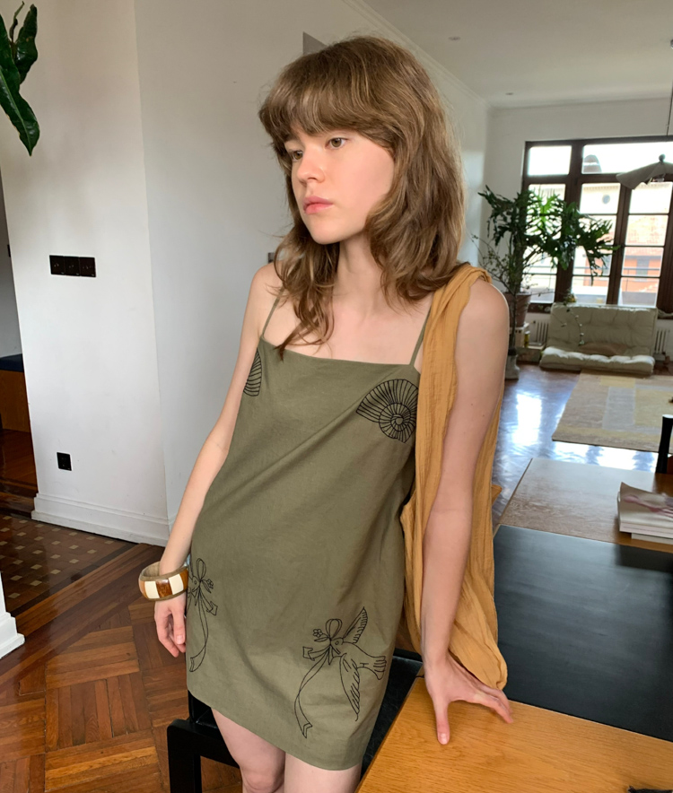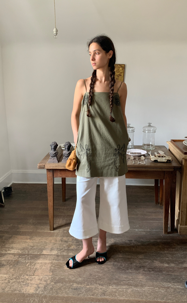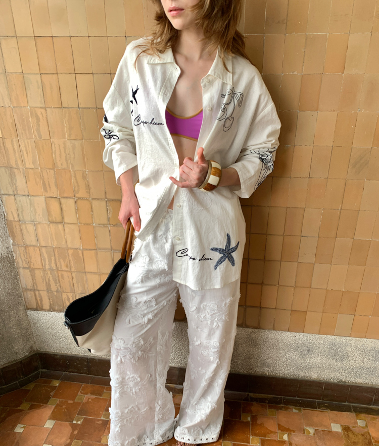 Linen Cotton Blend Vintage Illustrated Embroidered Shirt / Dress