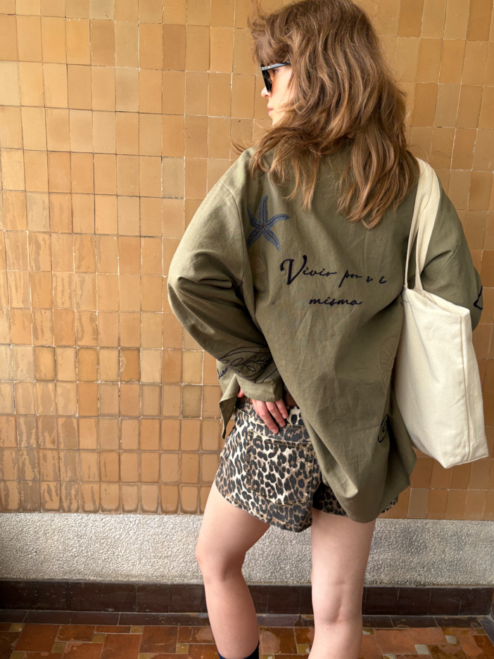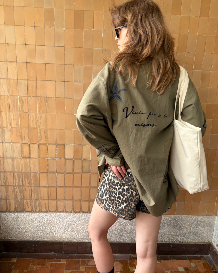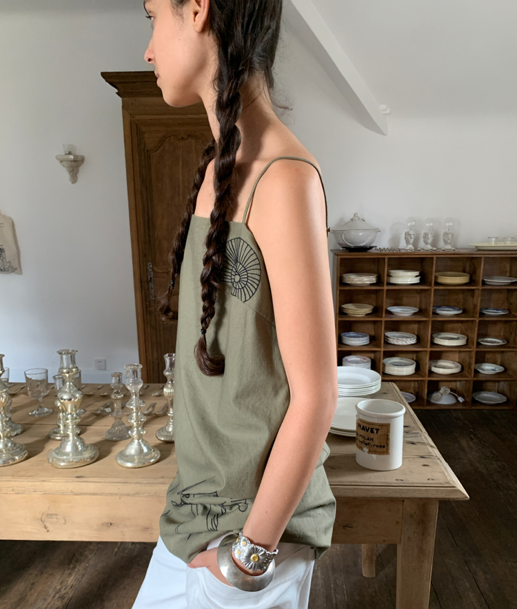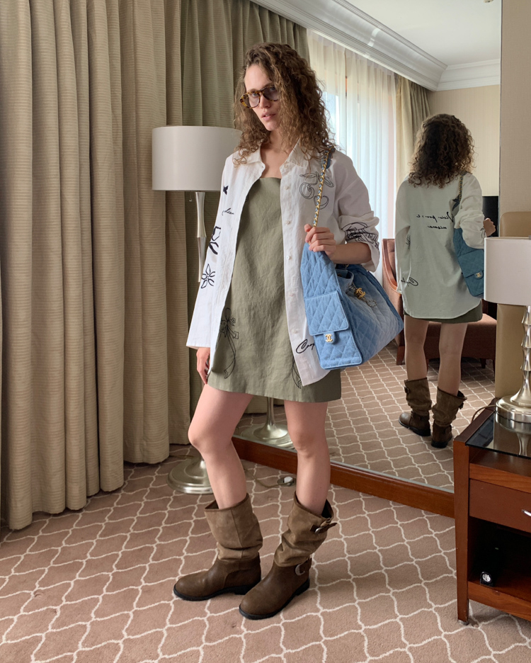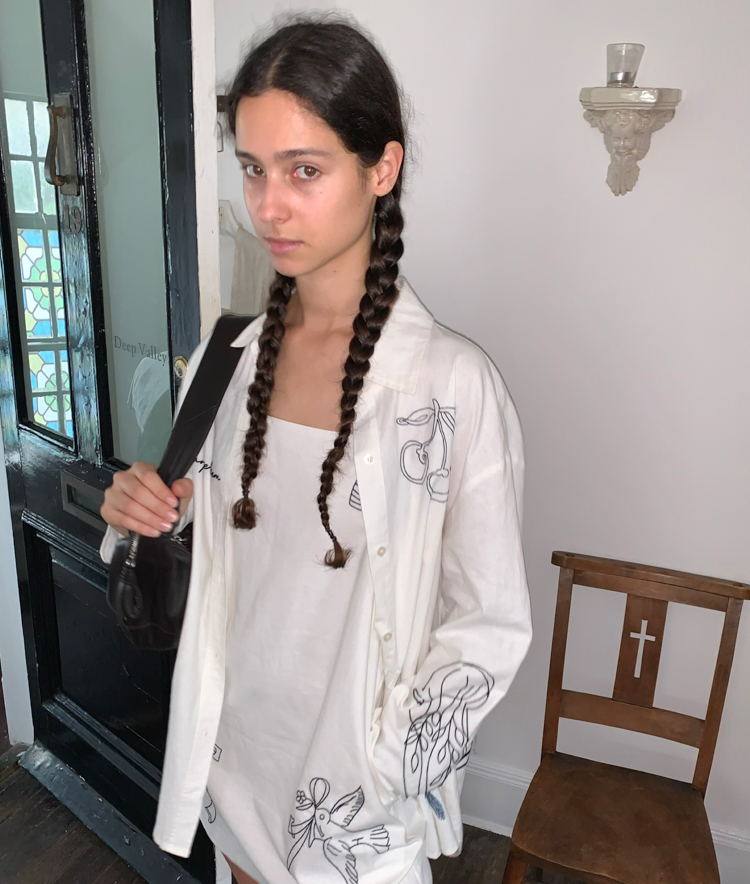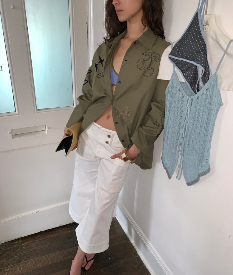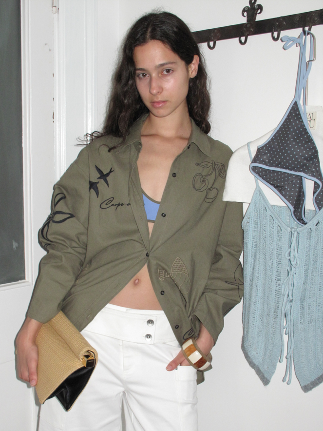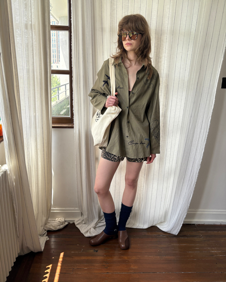 Linen Cotton Blend Vintage Illustrated Embroidered Shirt / Dress