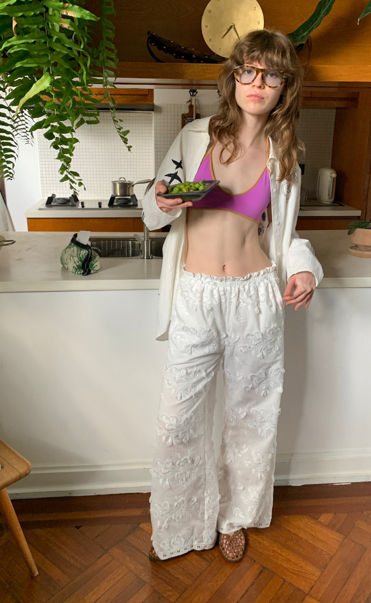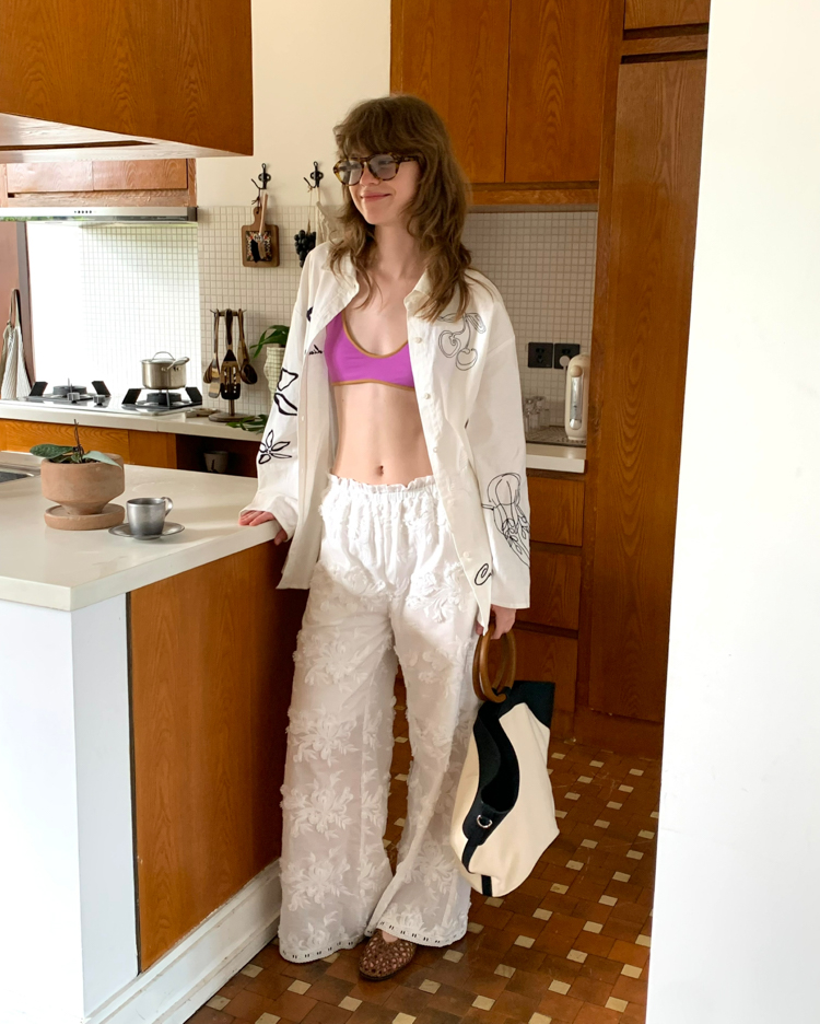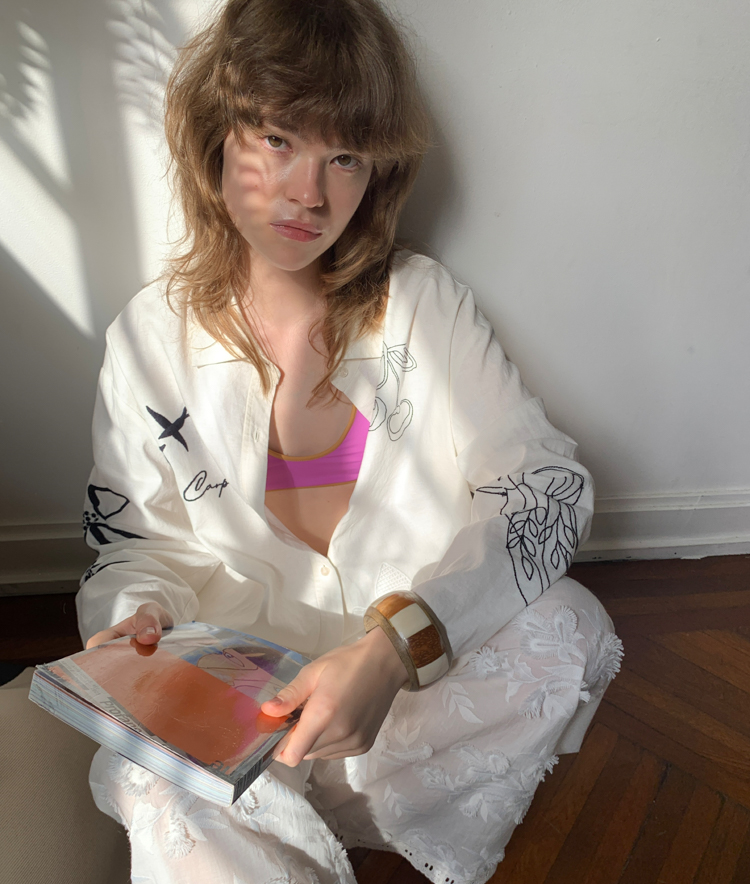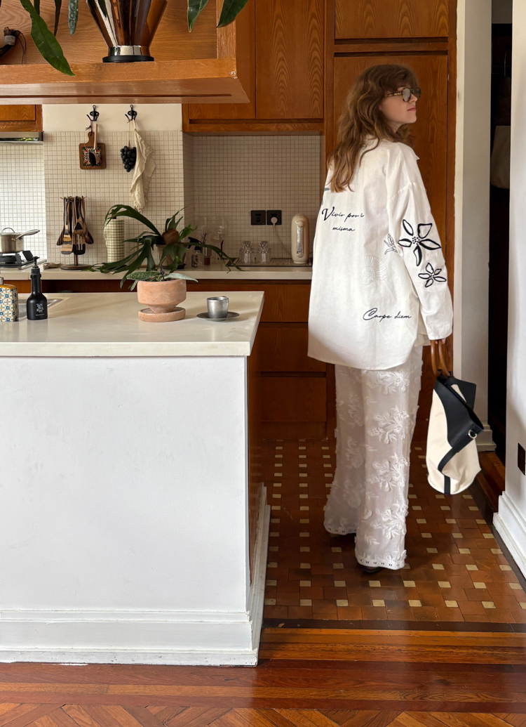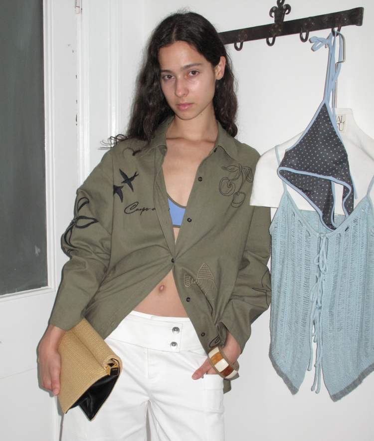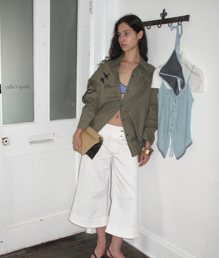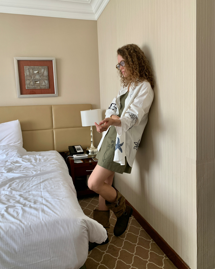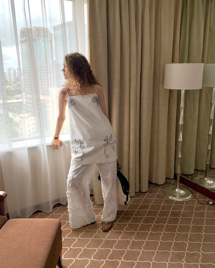 Linen Cotton Blend Vintage Illustrated Embroidered Shirt / Dress