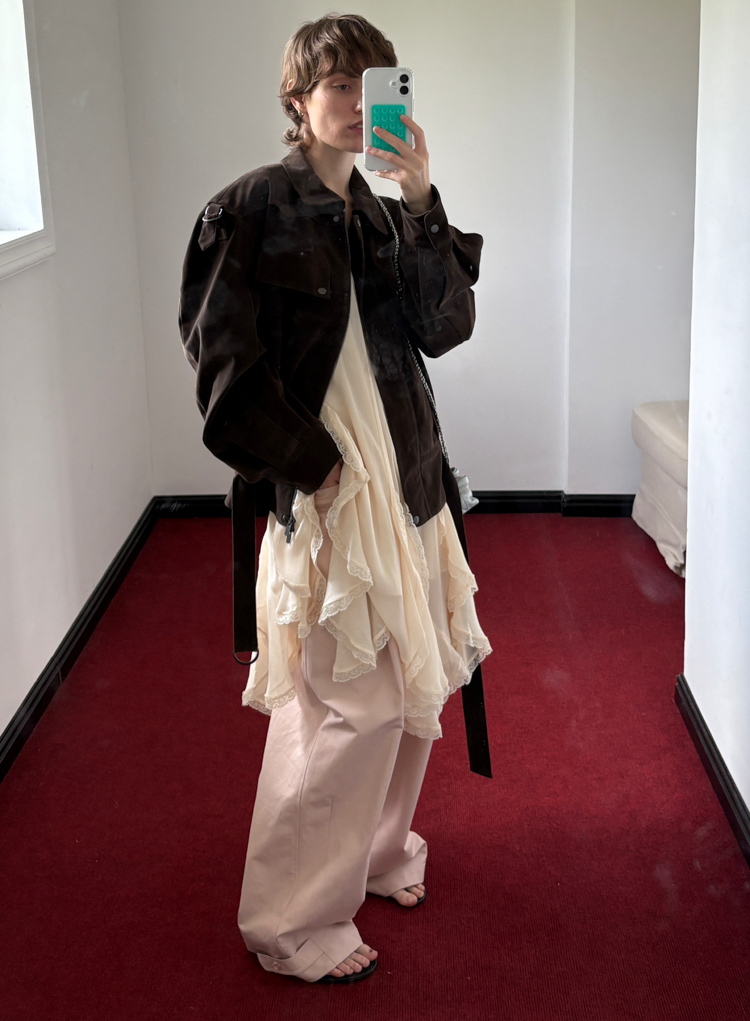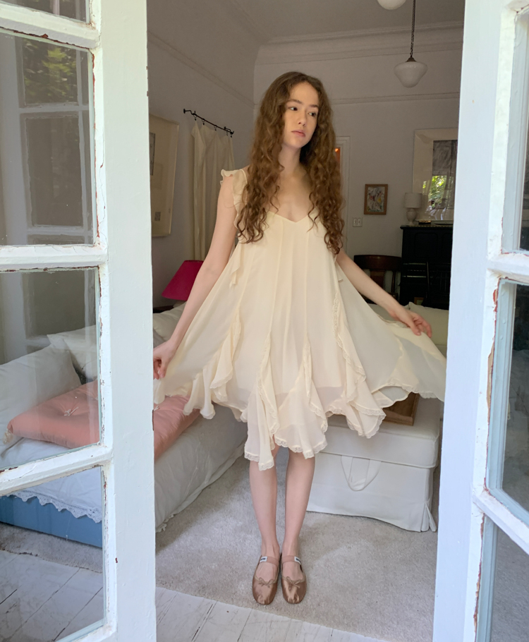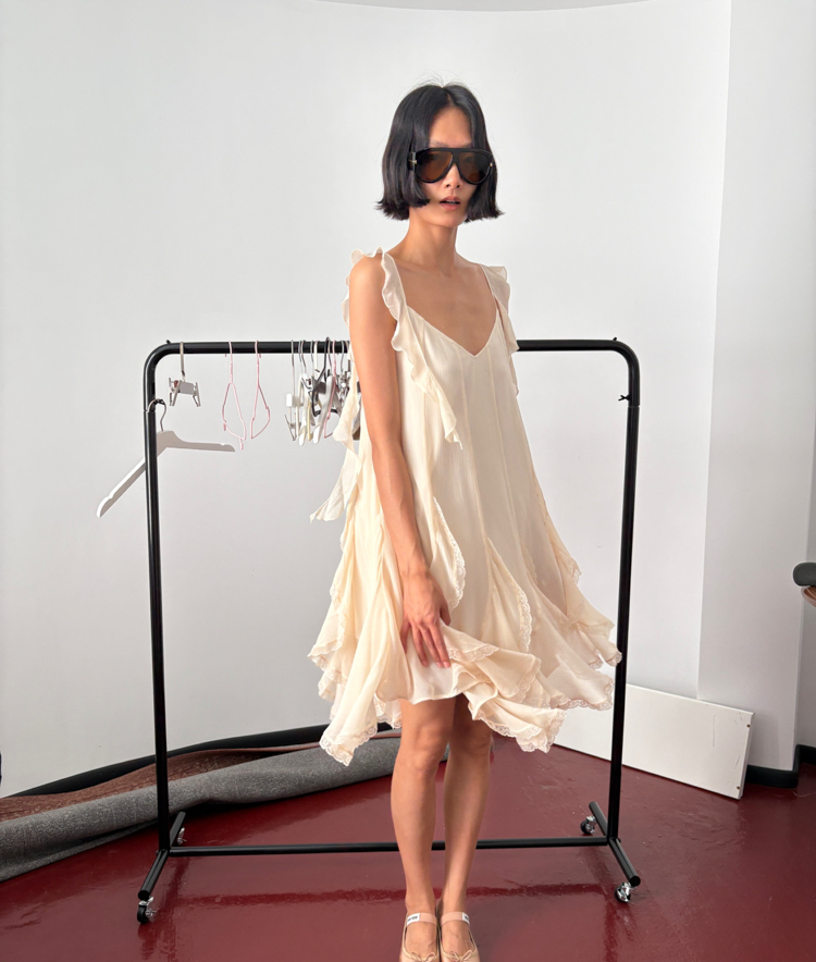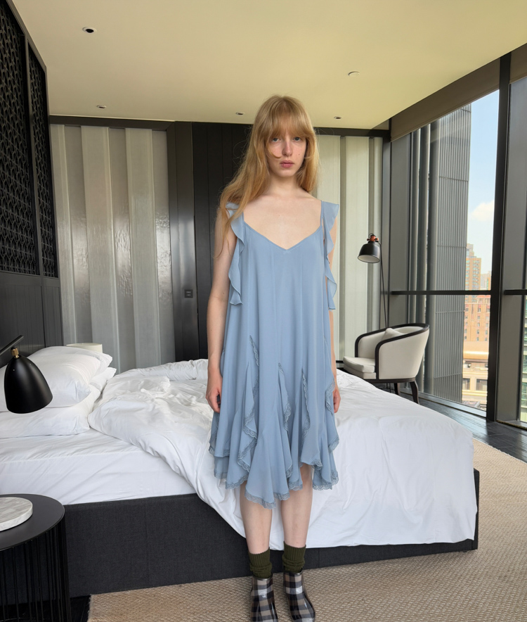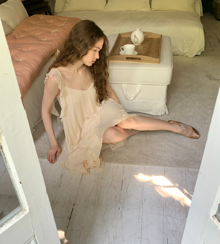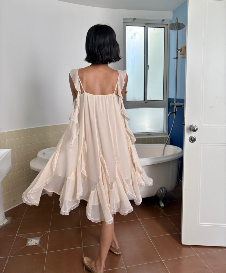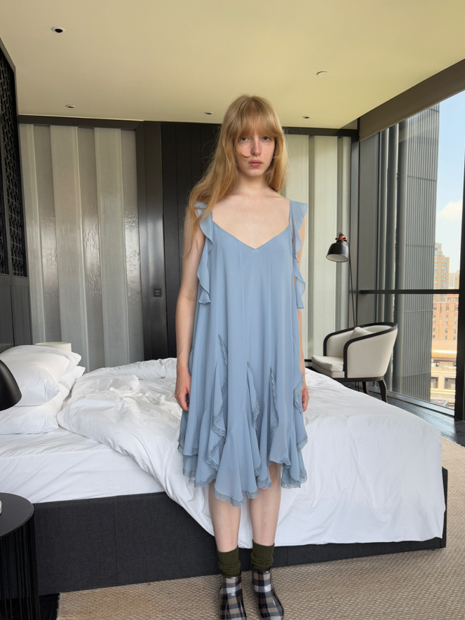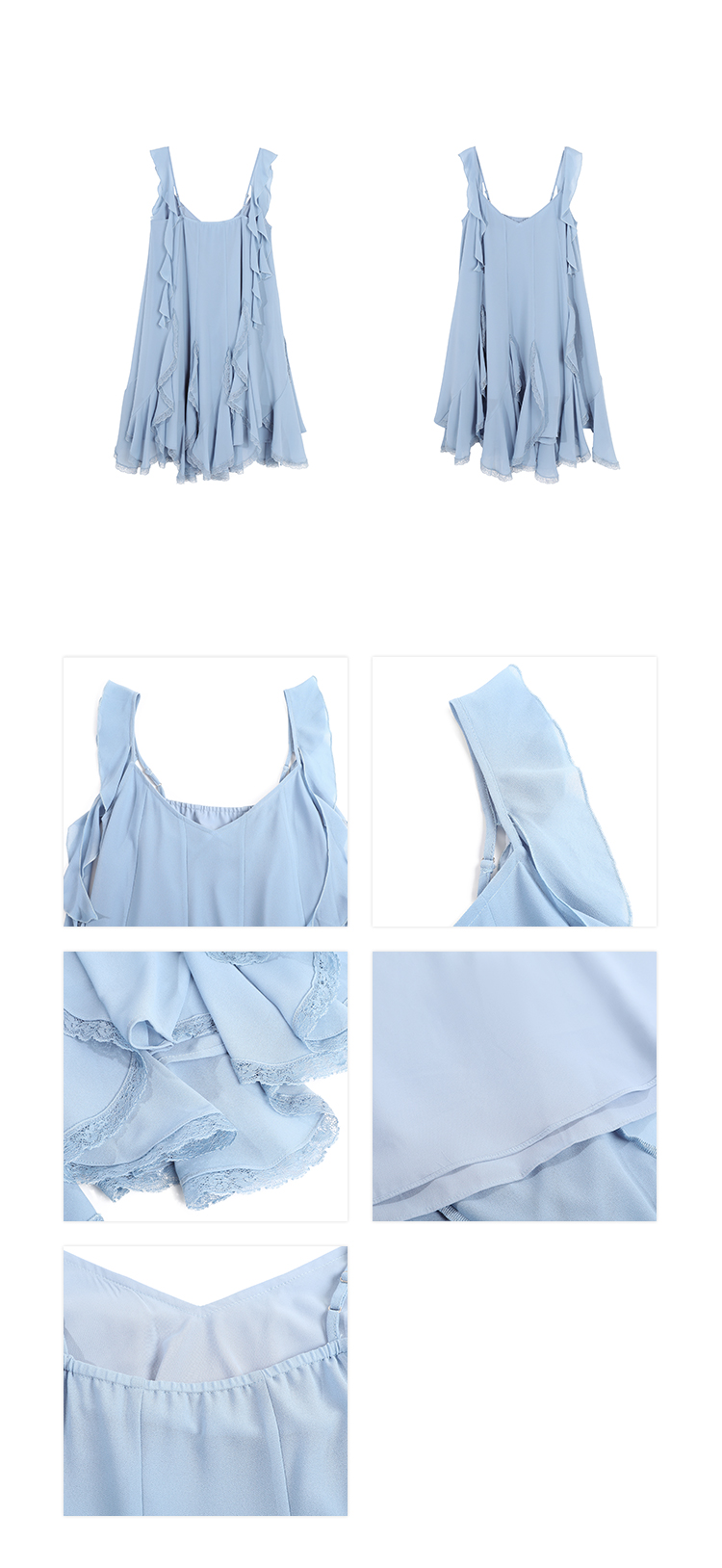 long skirt irregular layered splicing lace hem ruffled suspender dress