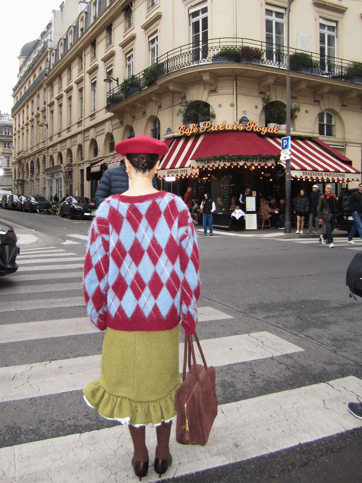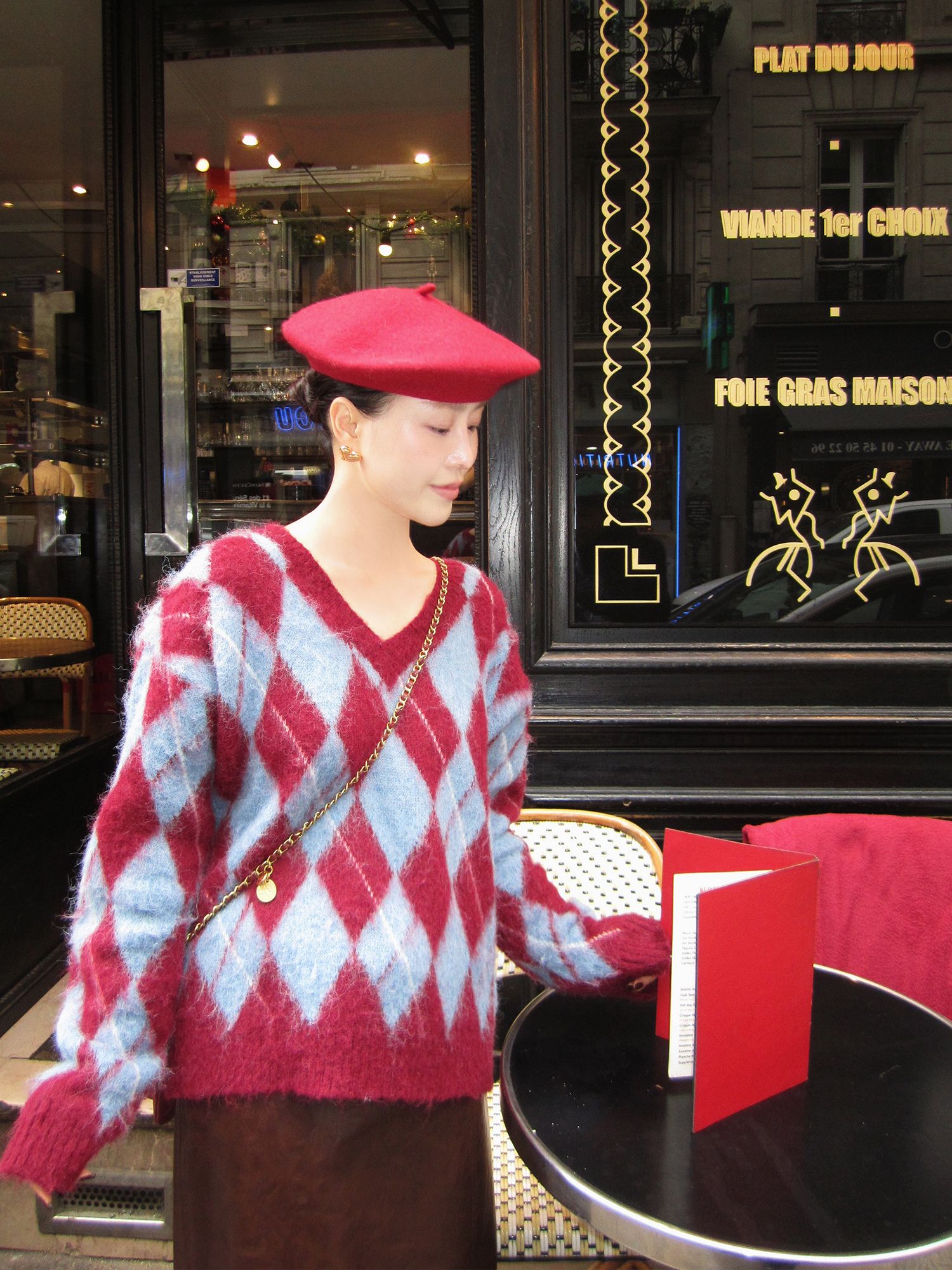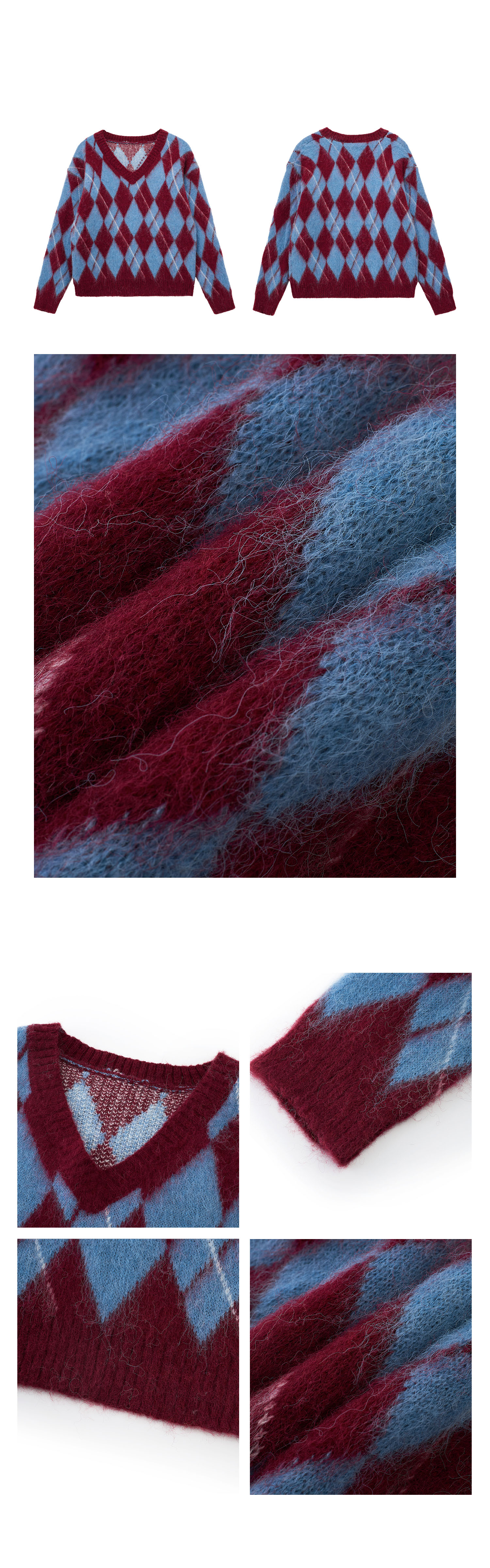 Vintage plaid deep V sweater knit top