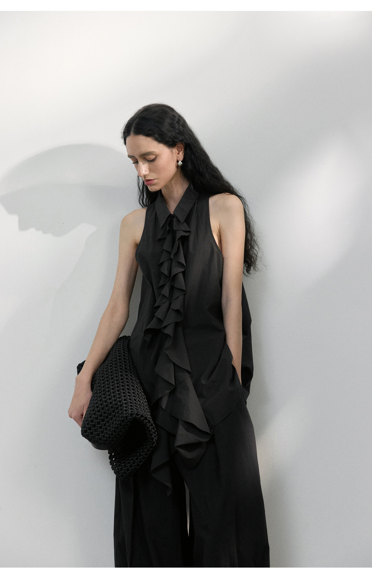 Long Fleece Cotton Three-Dimensional Lotus Leaf Edge Shirt