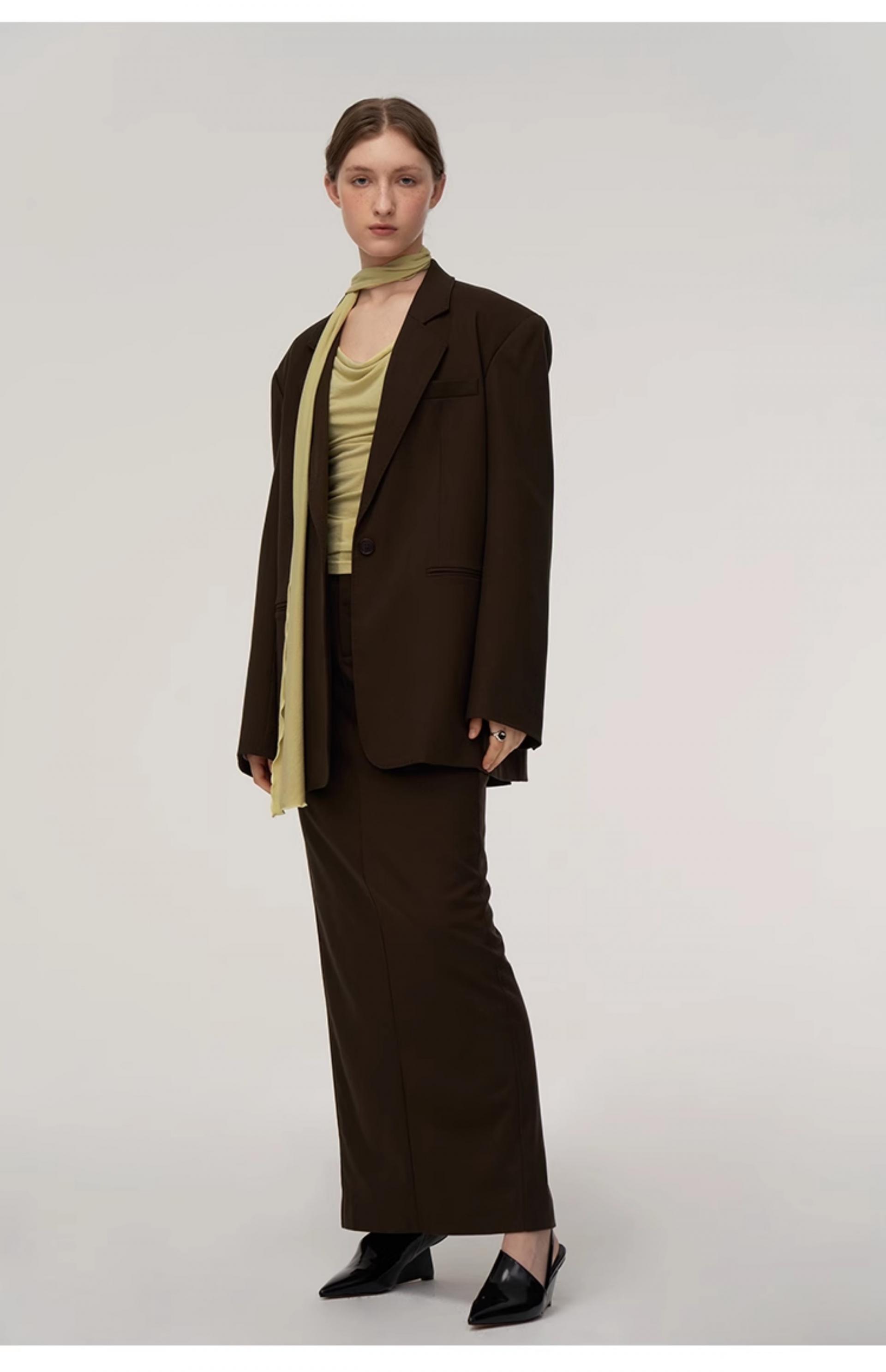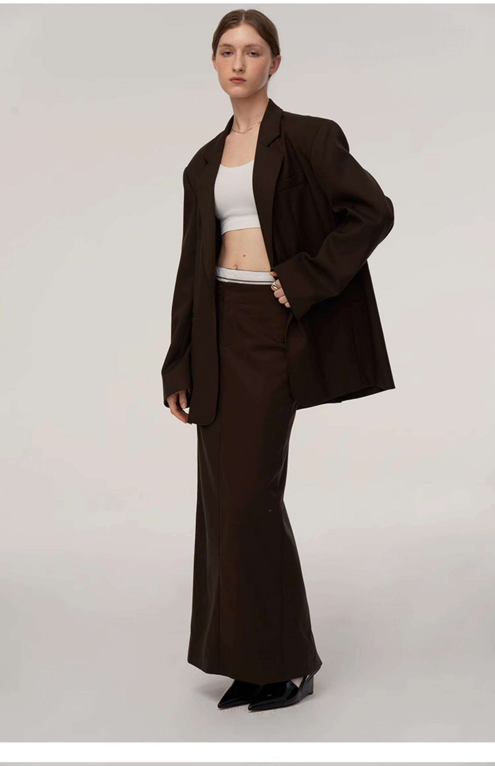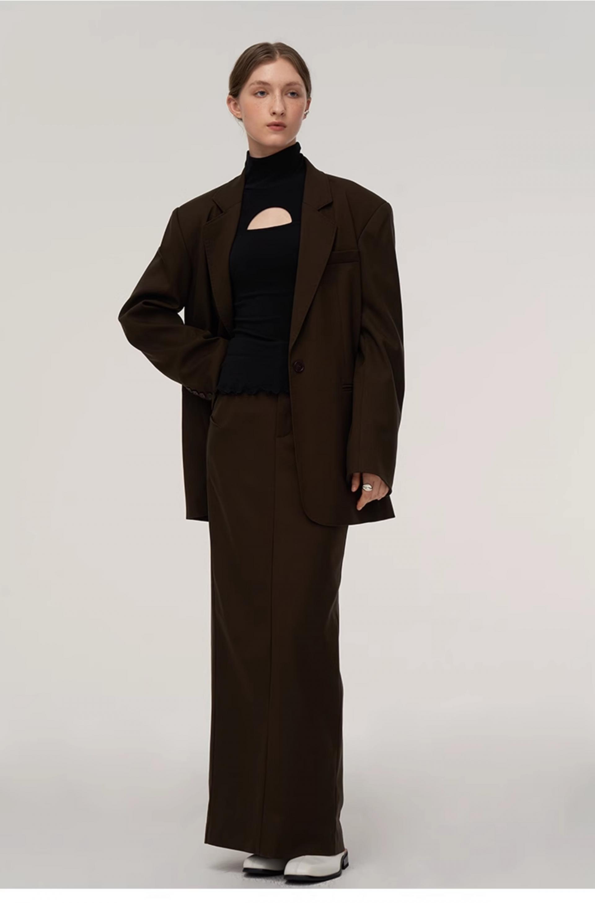 Wool blend double classic loose silhouette suit jacket skirt