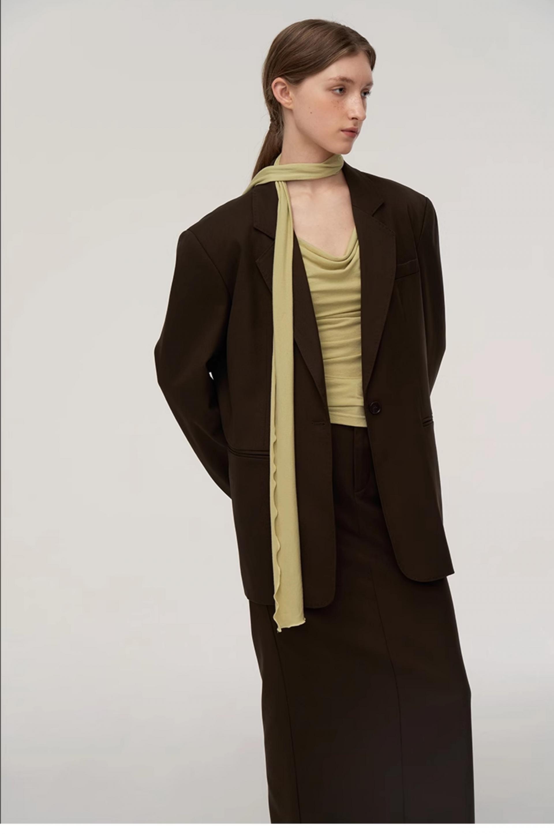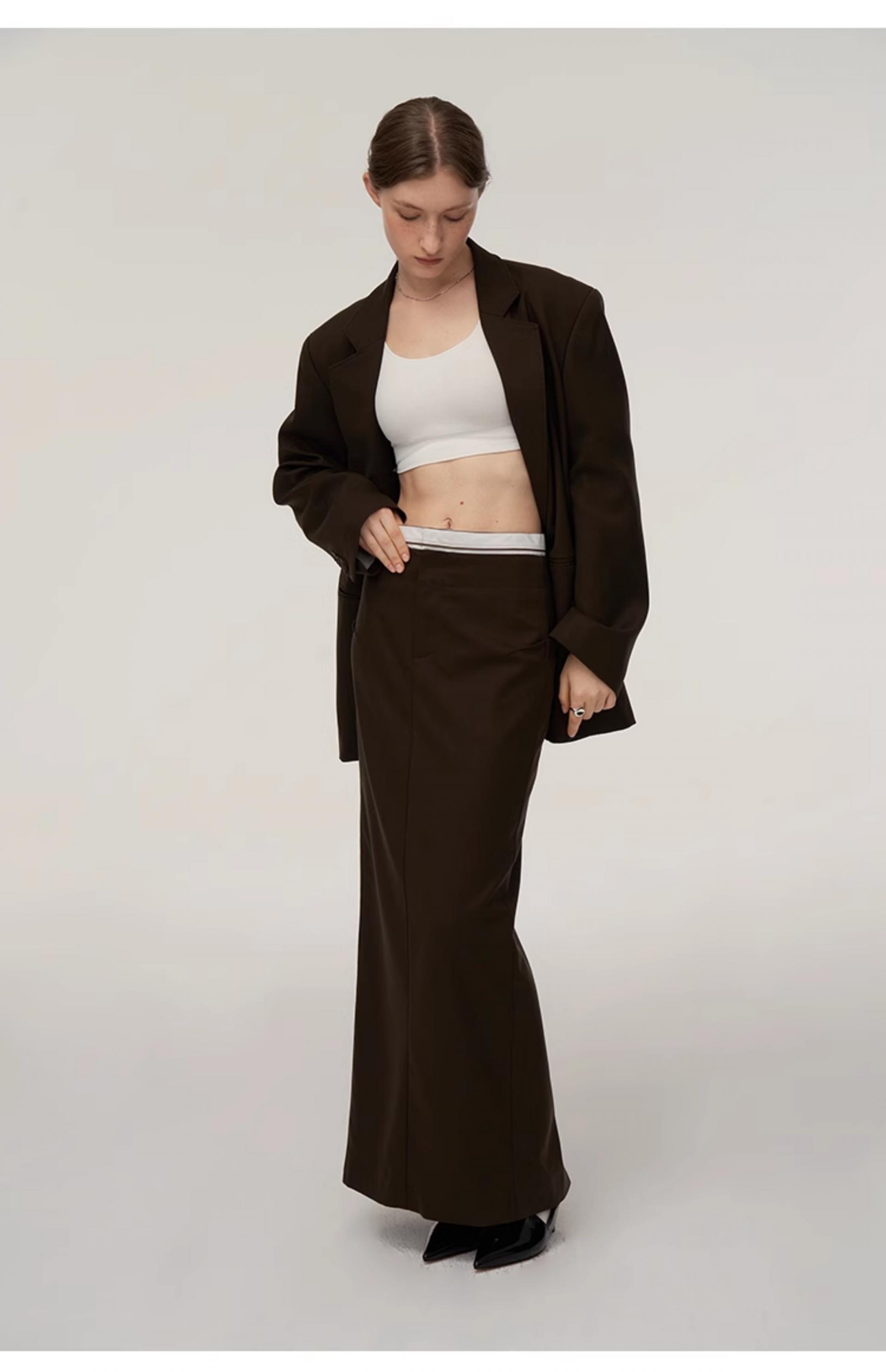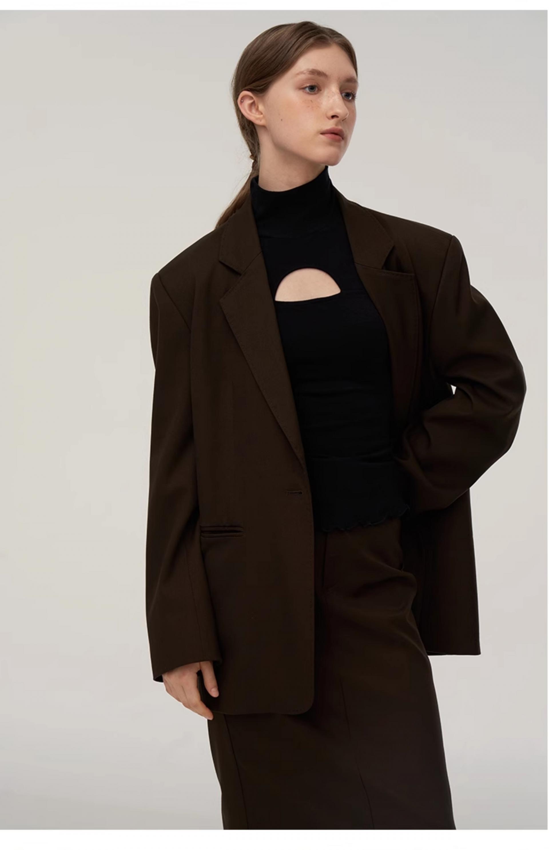 Wool blend double classic loose silhouette suit jacket skirt