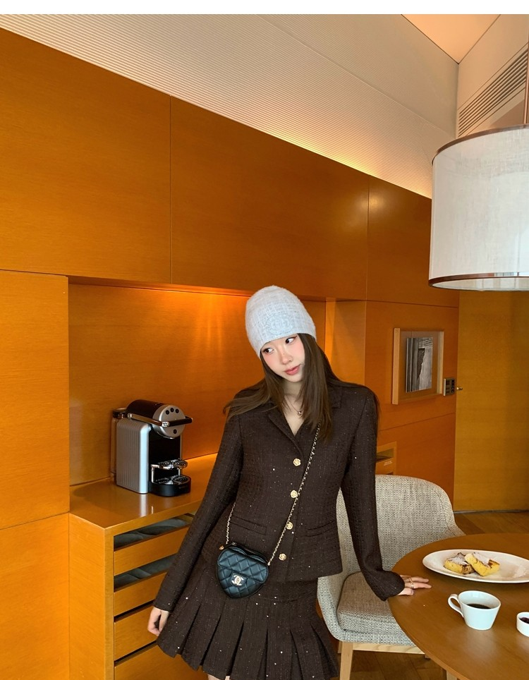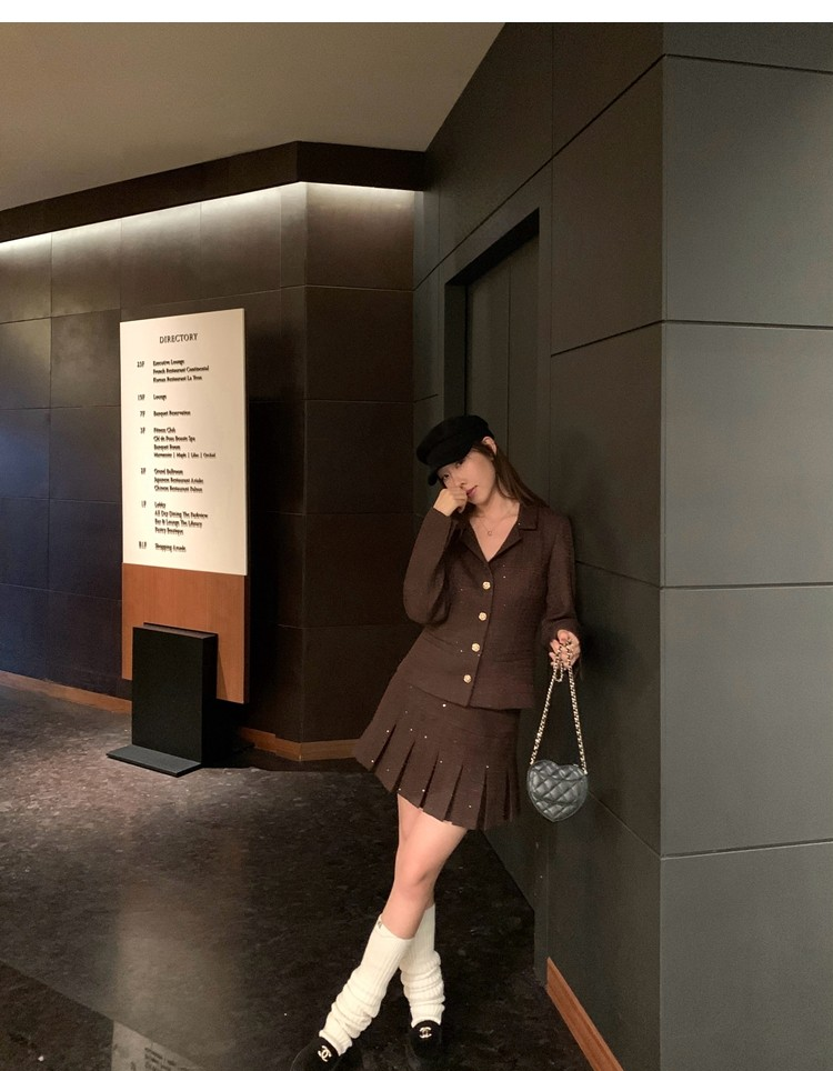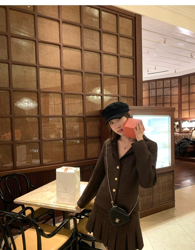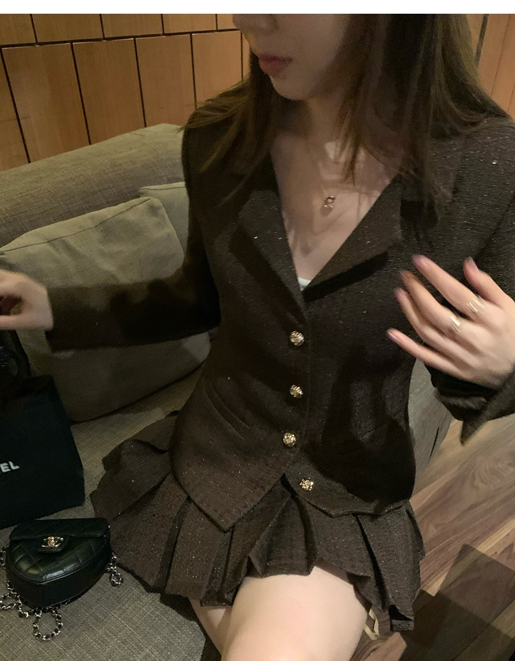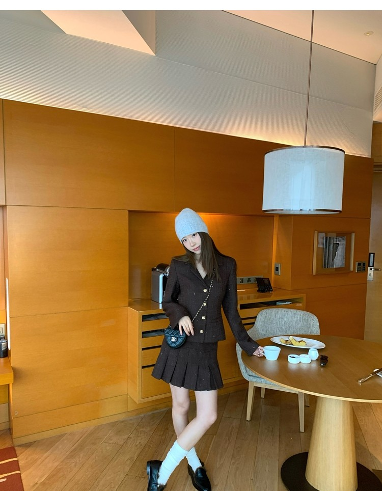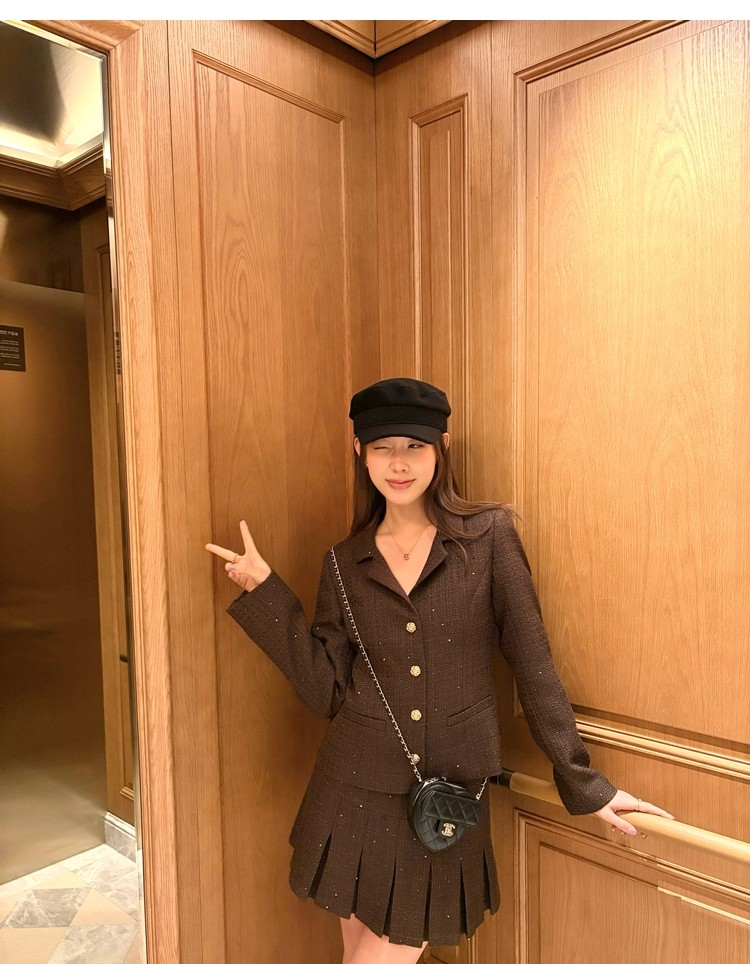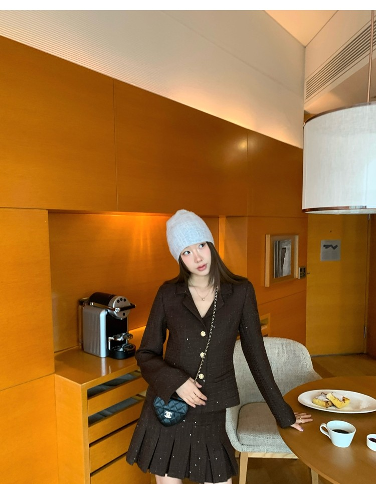 Fragrant Sparkling Tweed Suit Pleated Skirt Elegance Set
