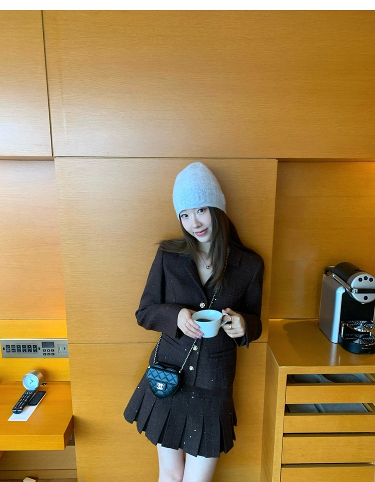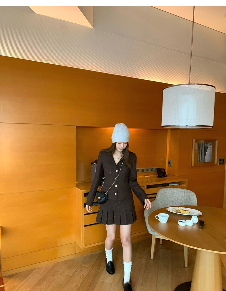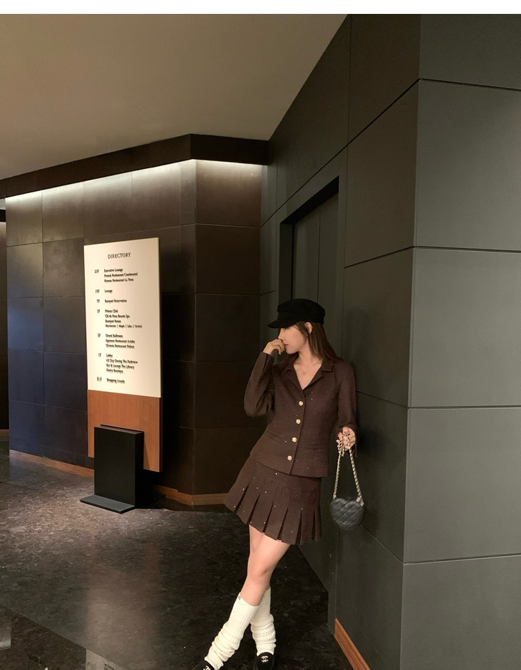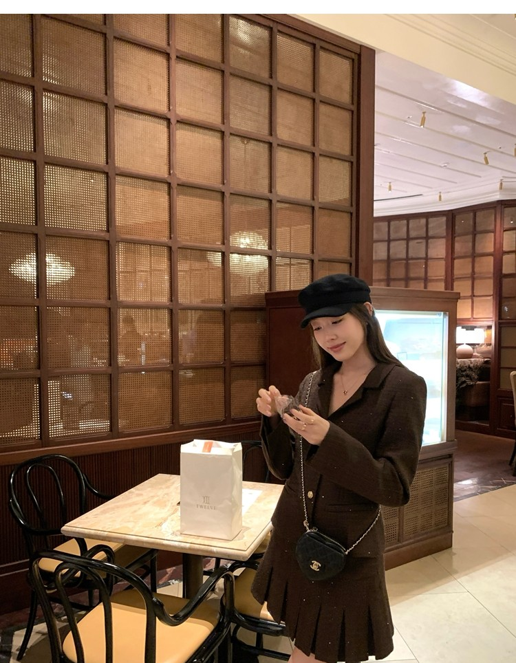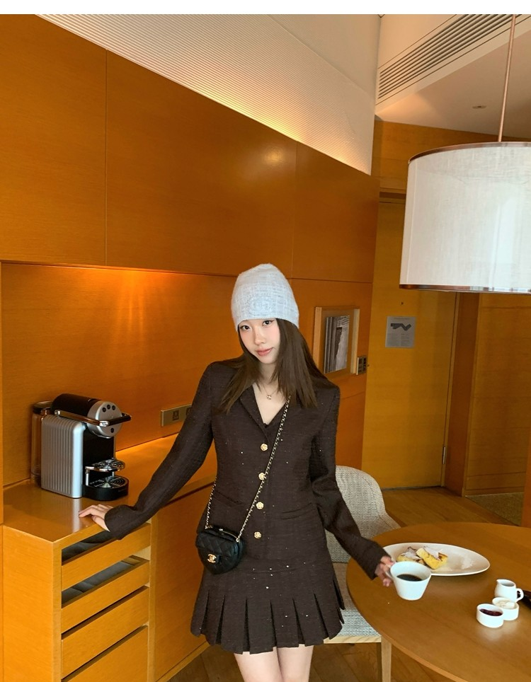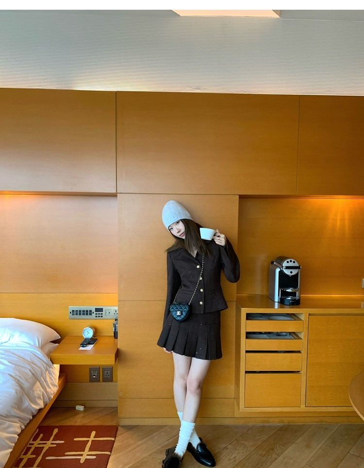 Fragrant Sparkling Tweed Suit Pleated Skirt Elegance Set