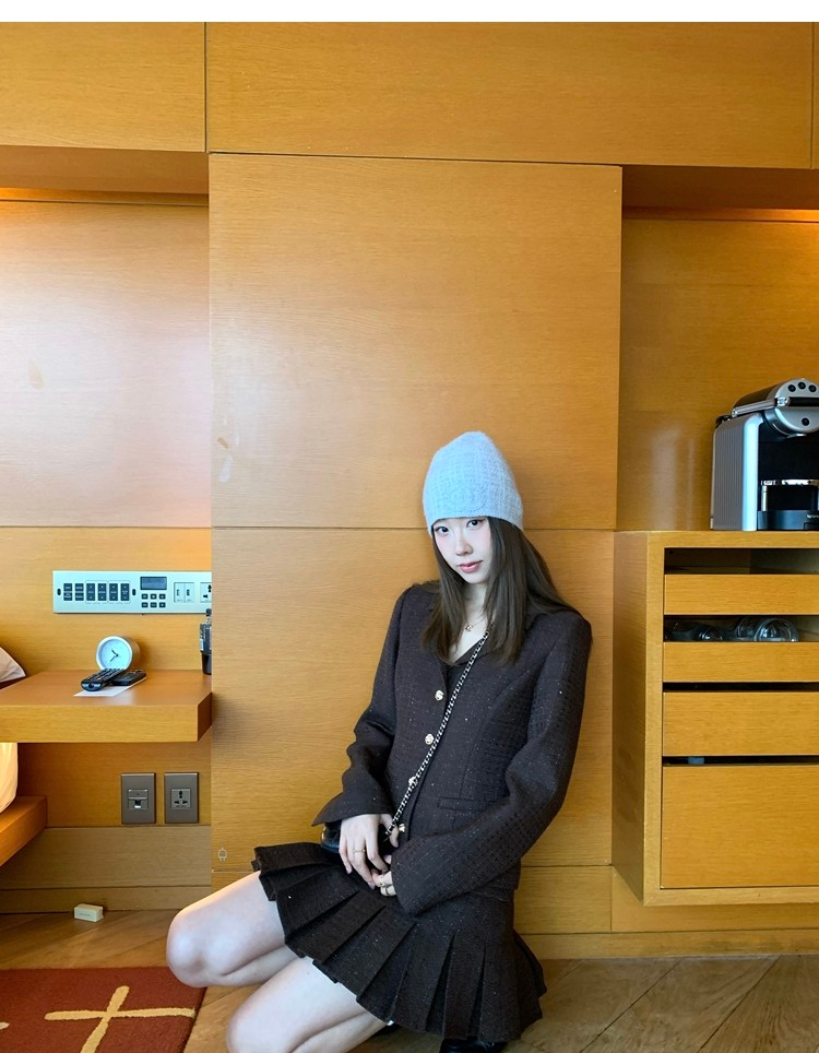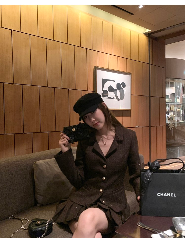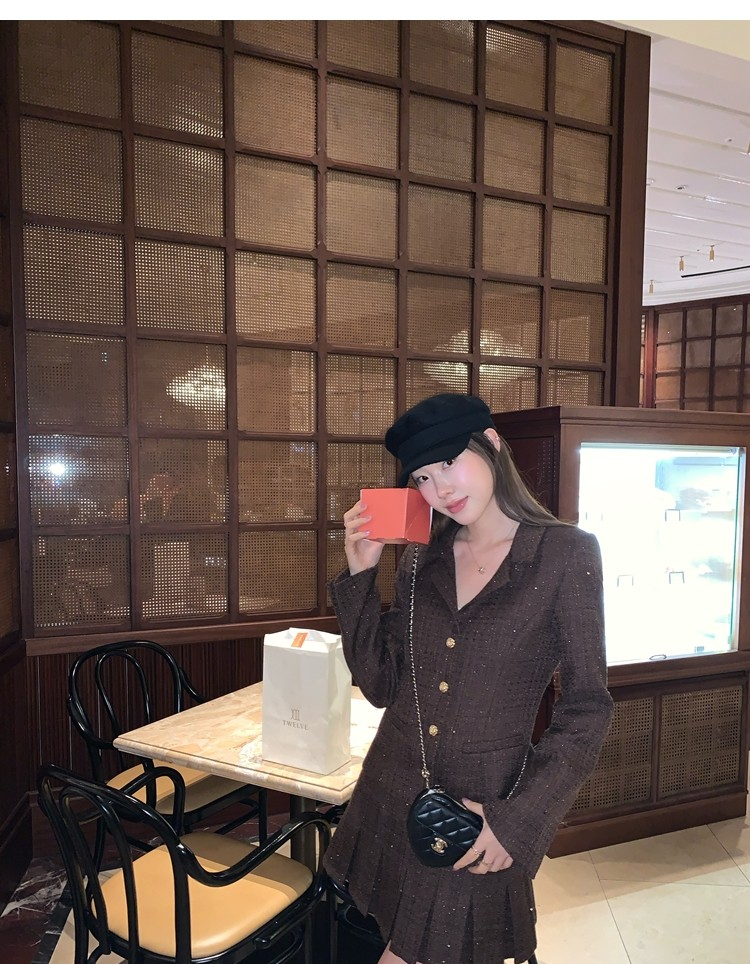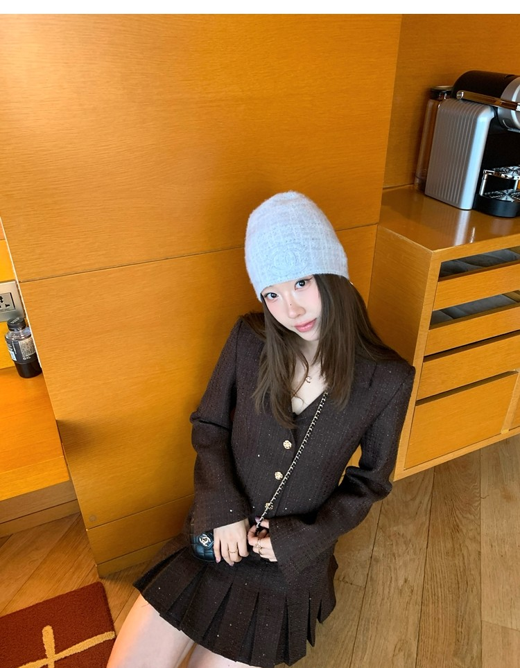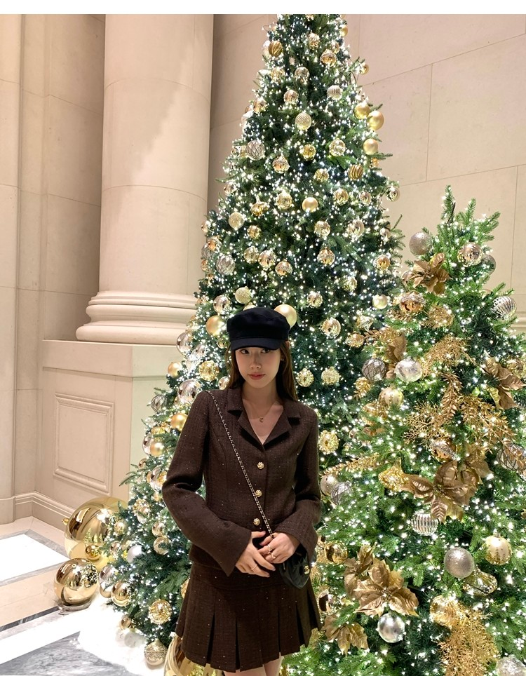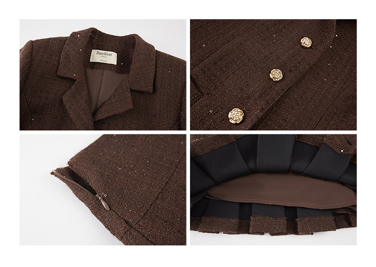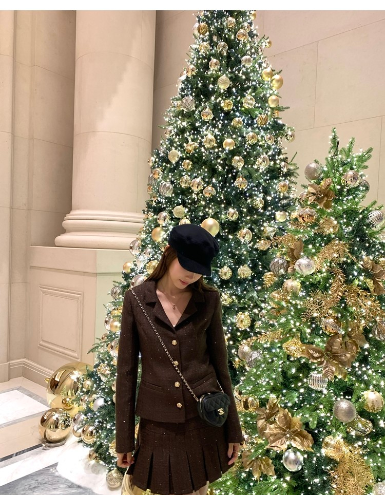 Fragrant Sparkling Tweed Suit Pleated Skirt Elegance Set