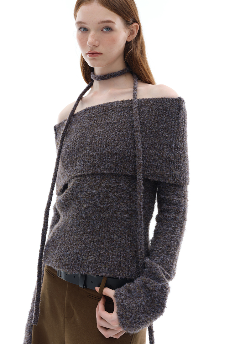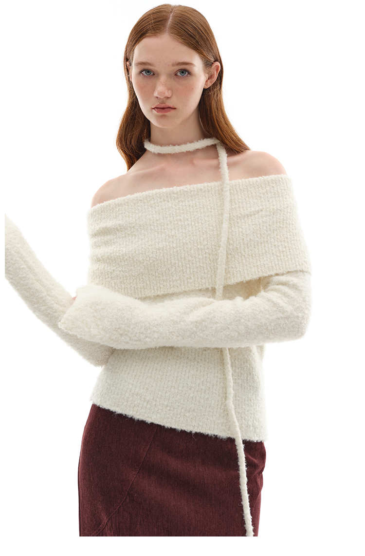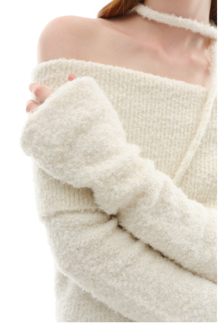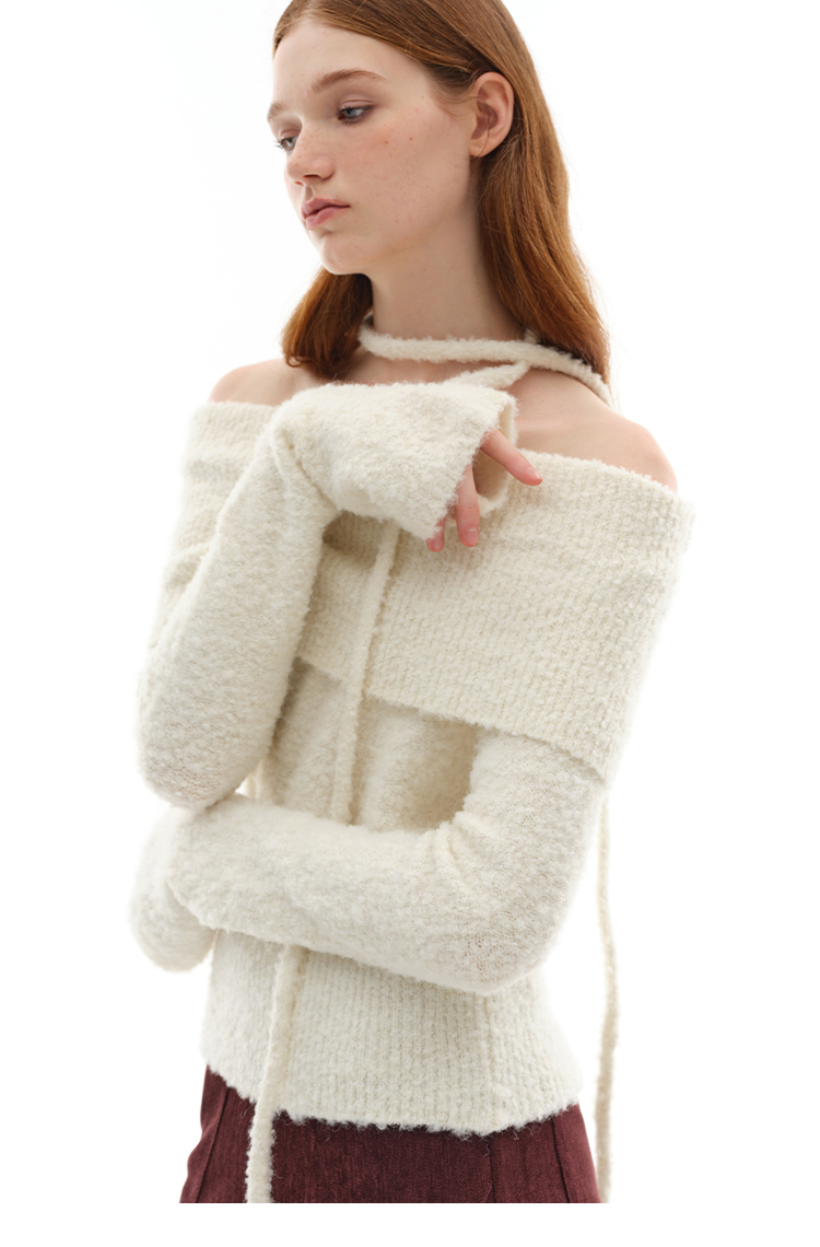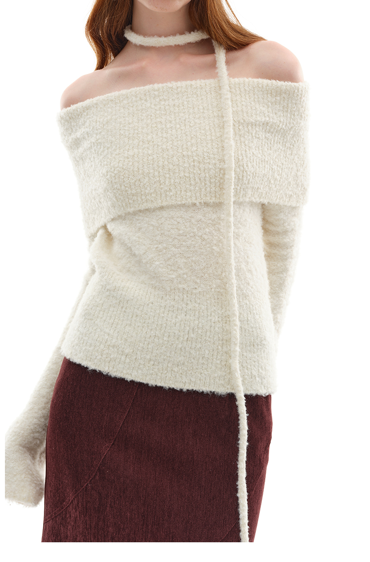 Woolen circle yarn cloud one-character shoulder two-piece sweater