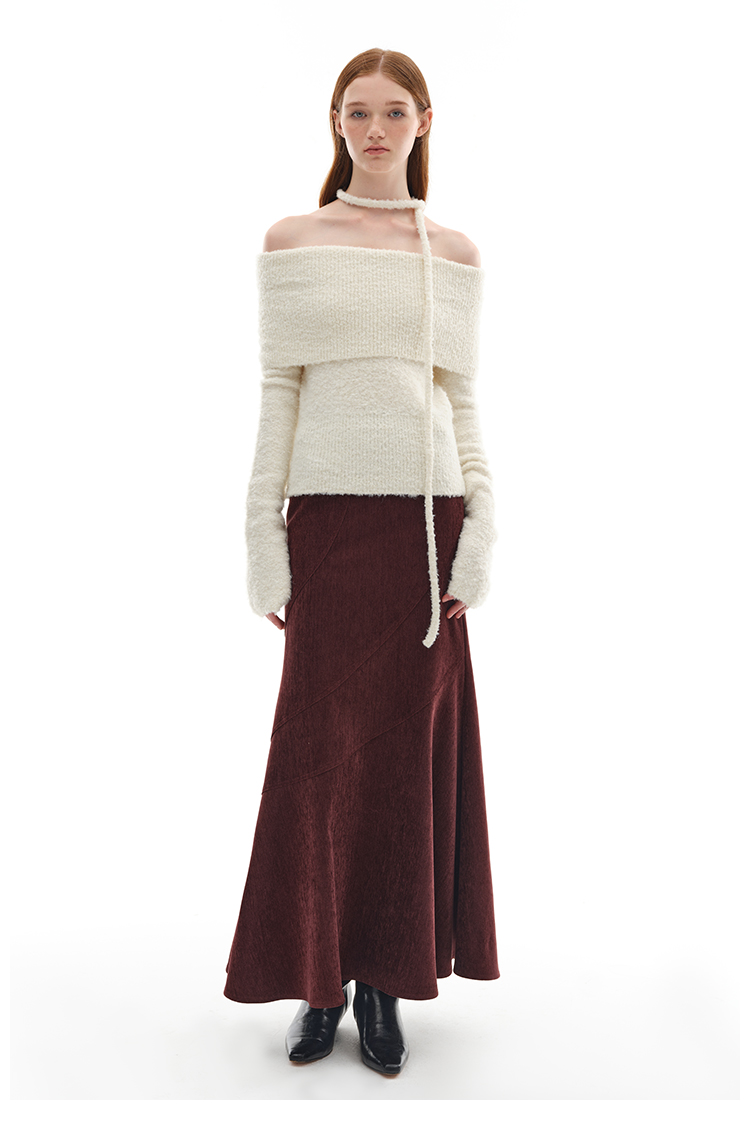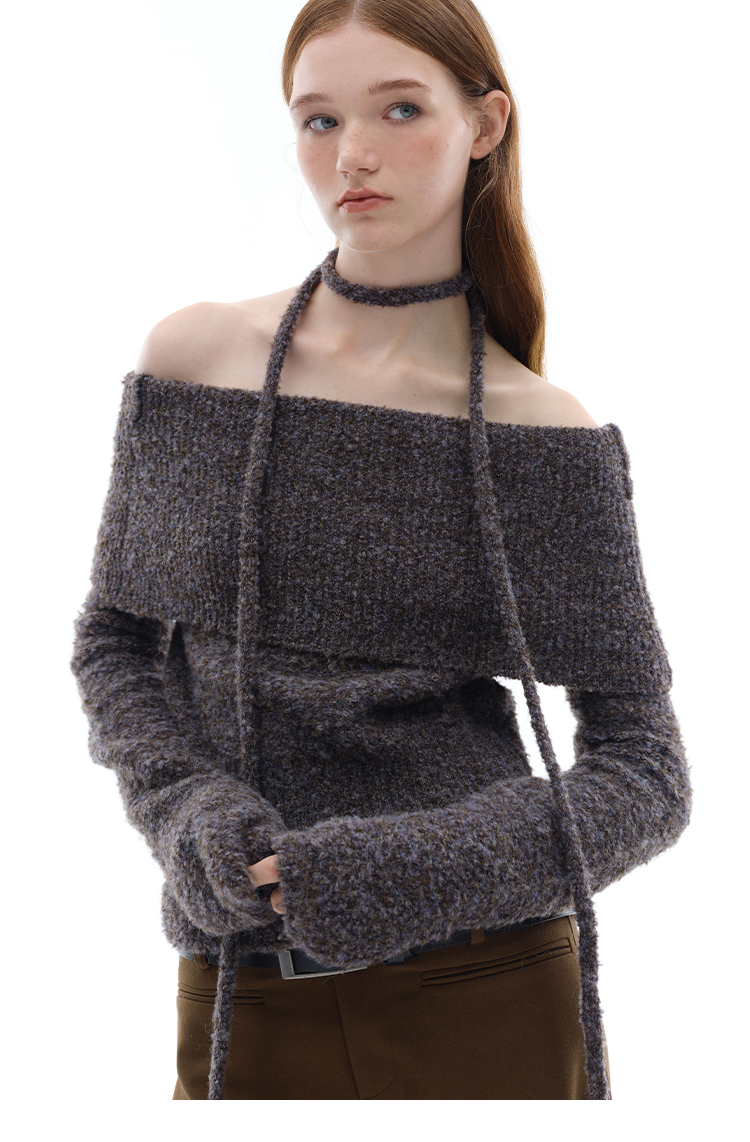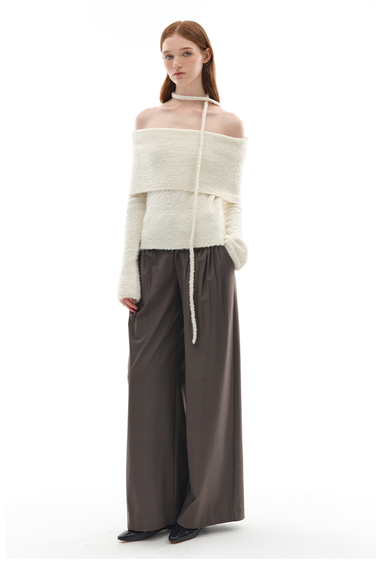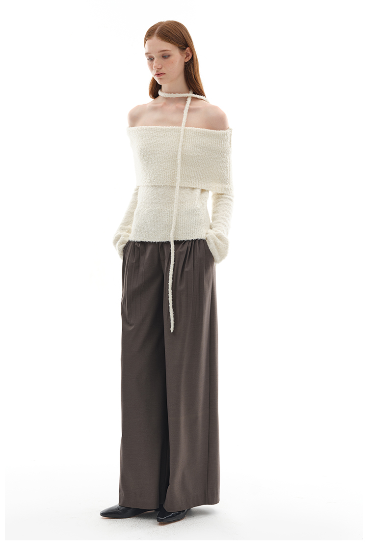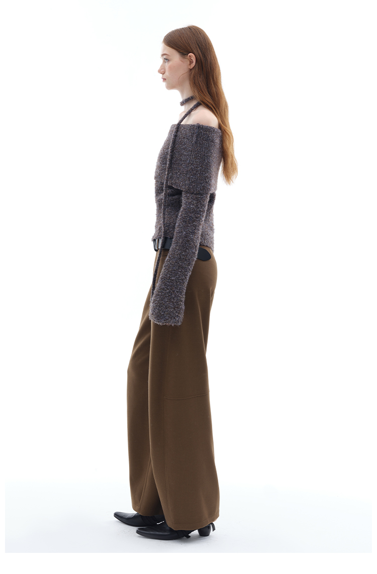 Woolen circle yarn cloud one-character shoulder two-piece sweater
