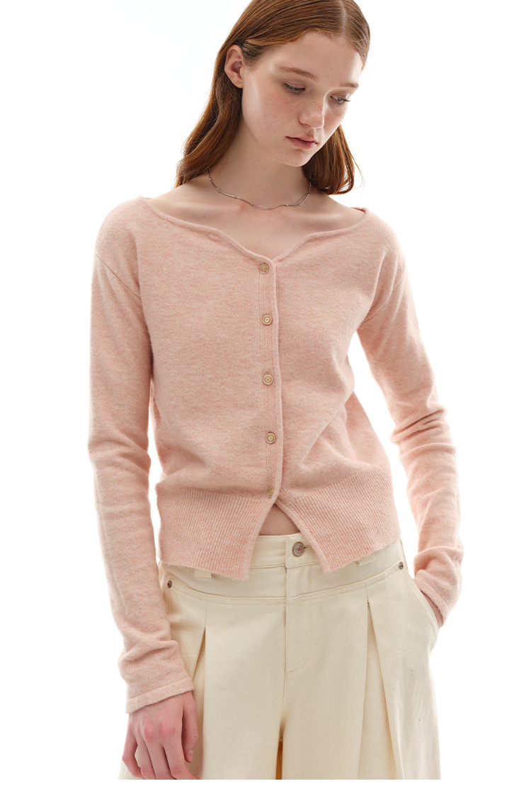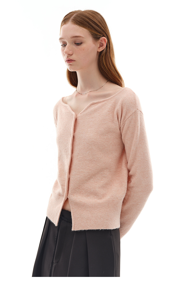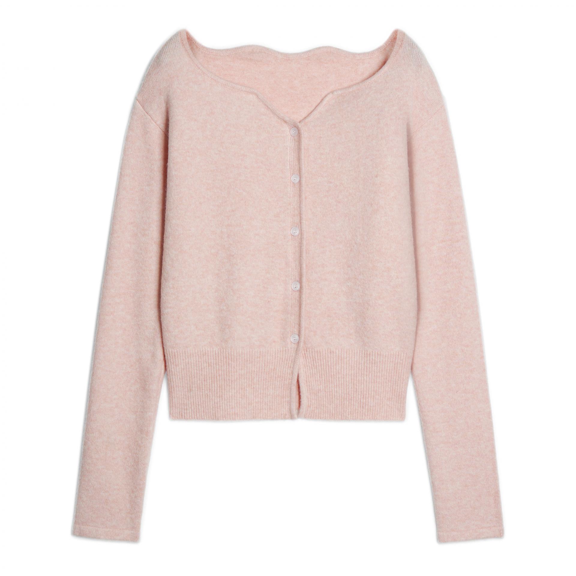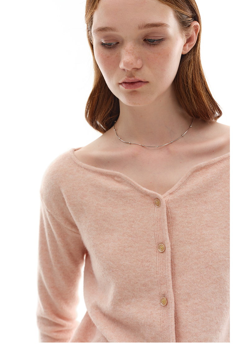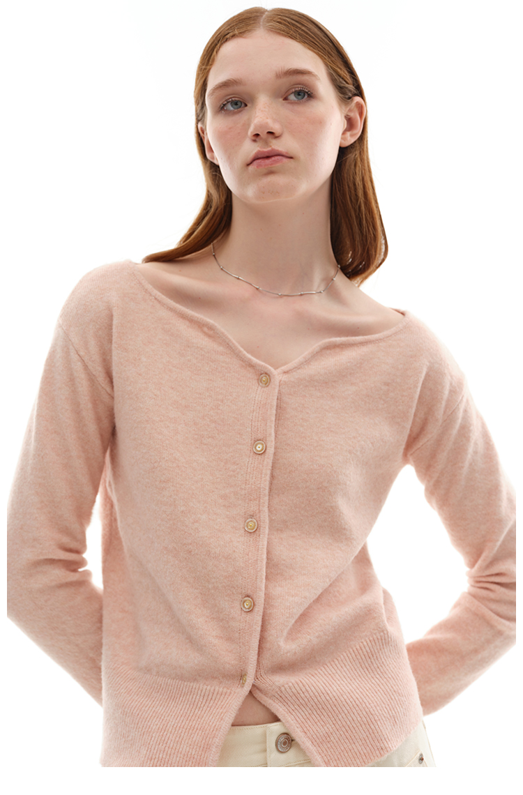 Wool blend wave V-neck lightweight peach pink knitted cardigan