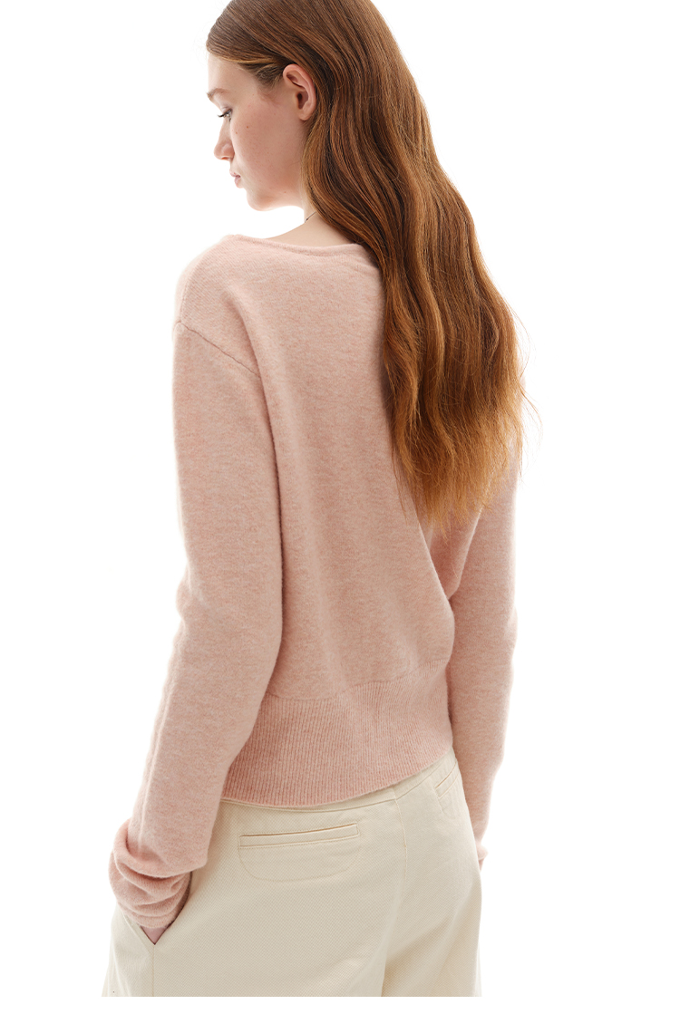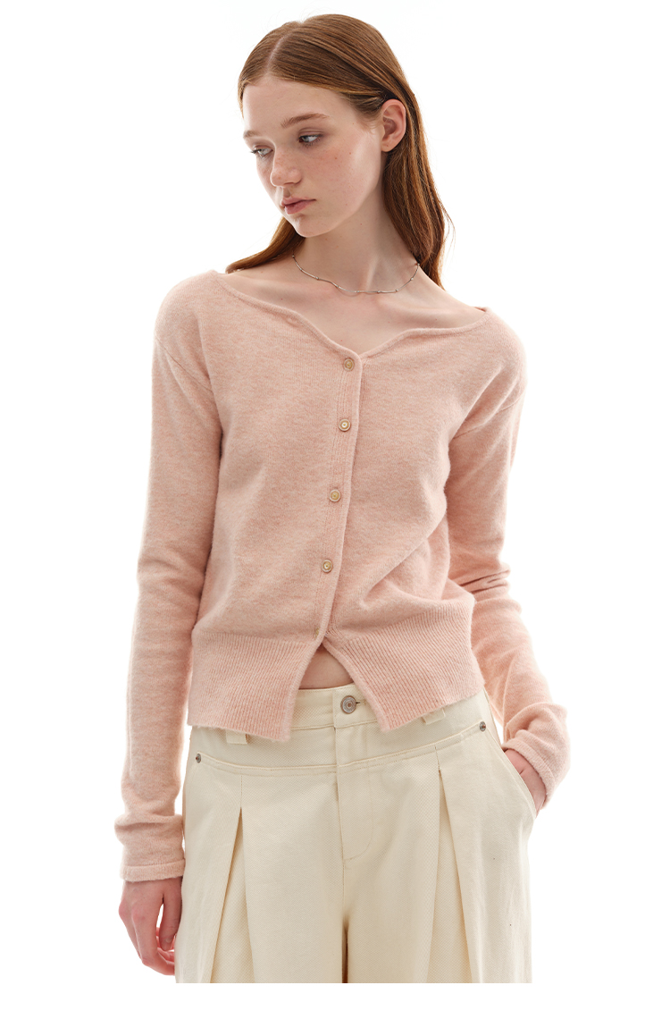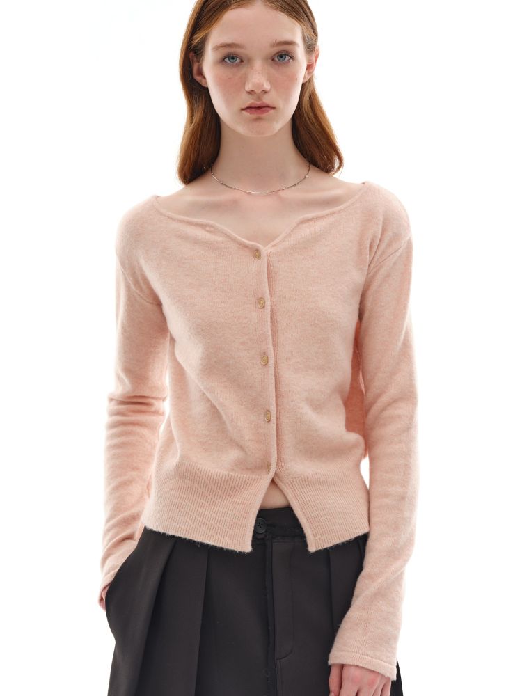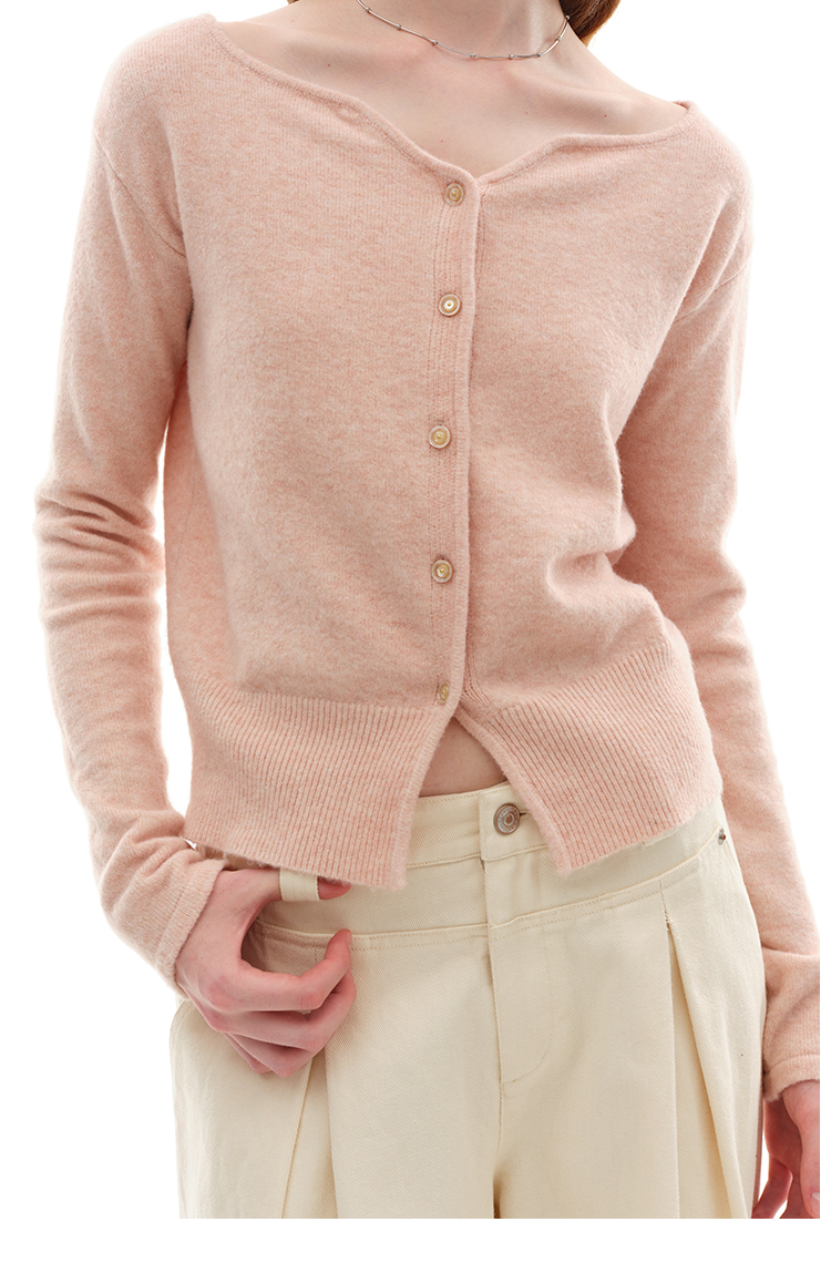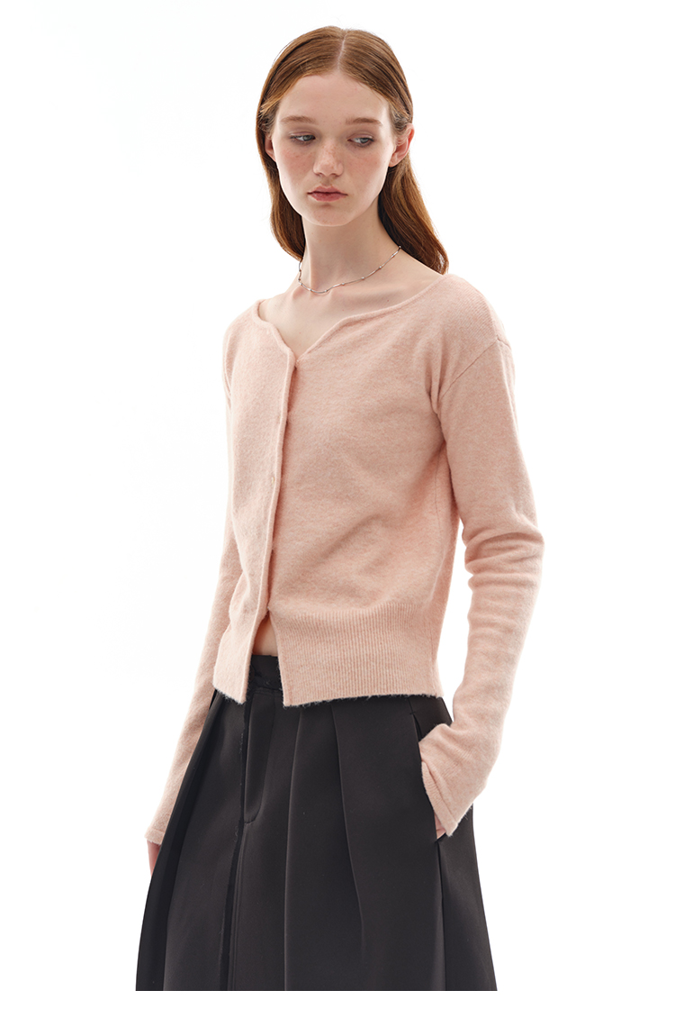 Wool blend wave V-neck lightweight peach pink knitted cardigan