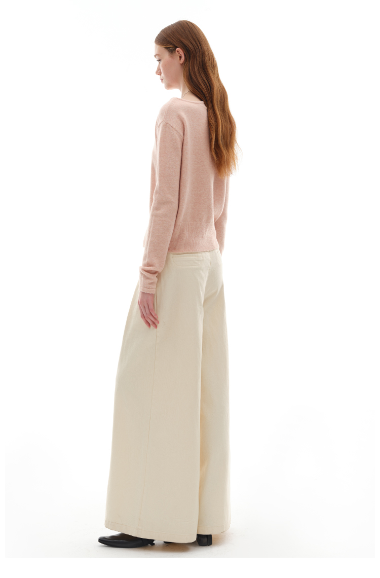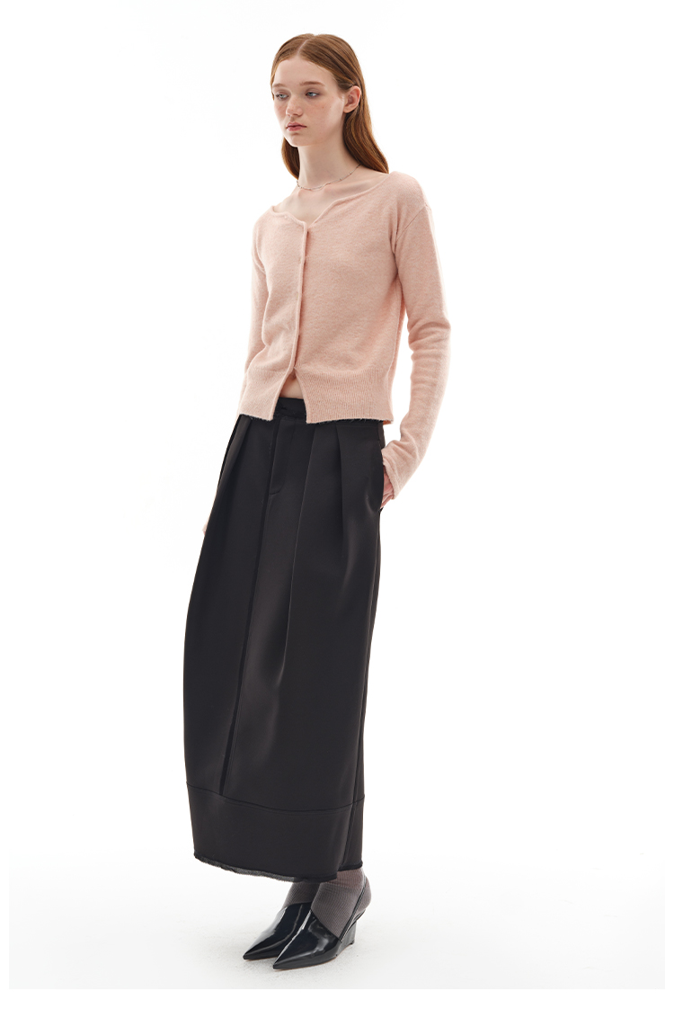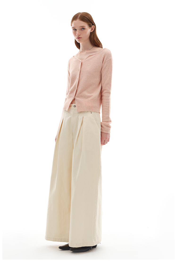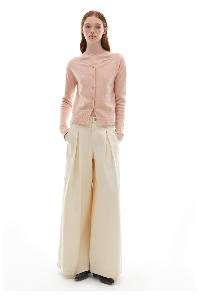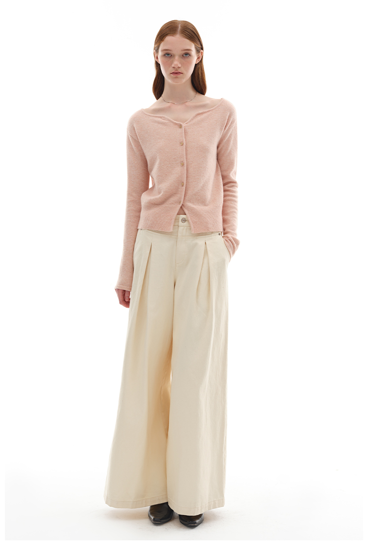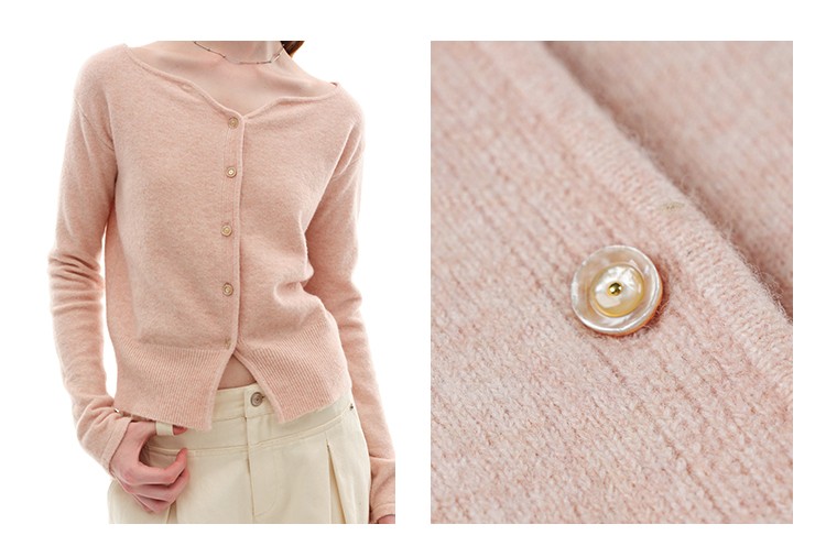 Wool blend wave V-neck lightweight peach pink knitted cardigan