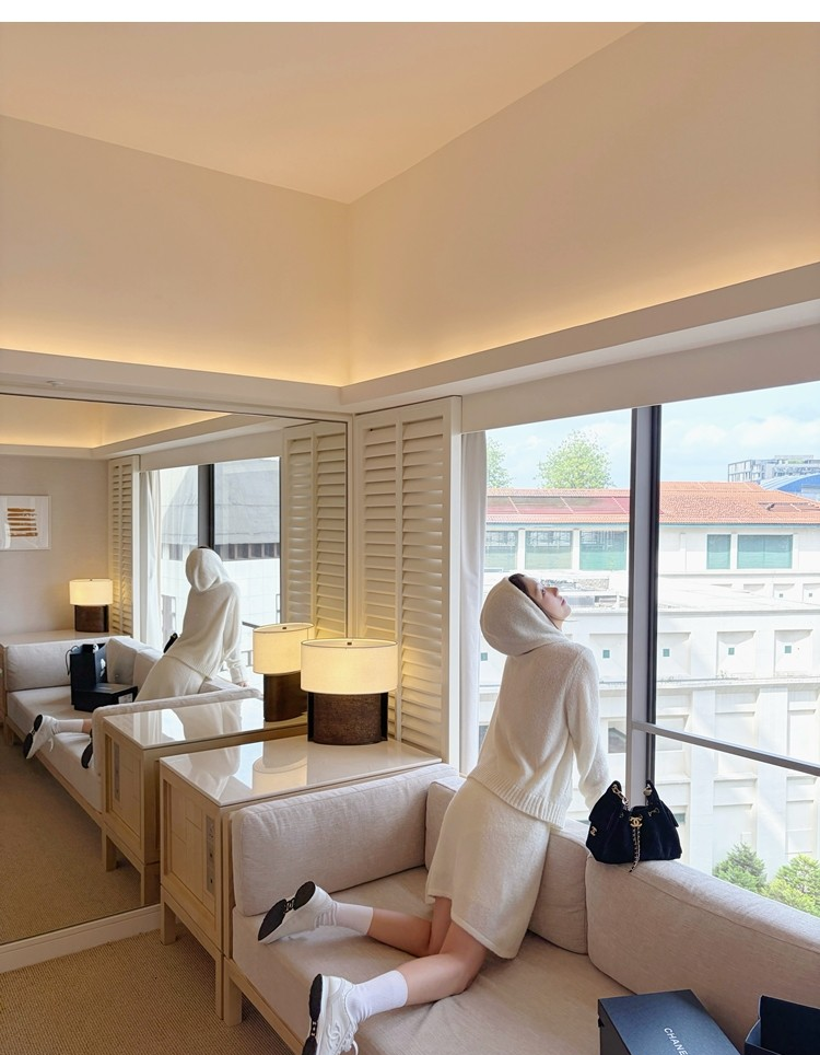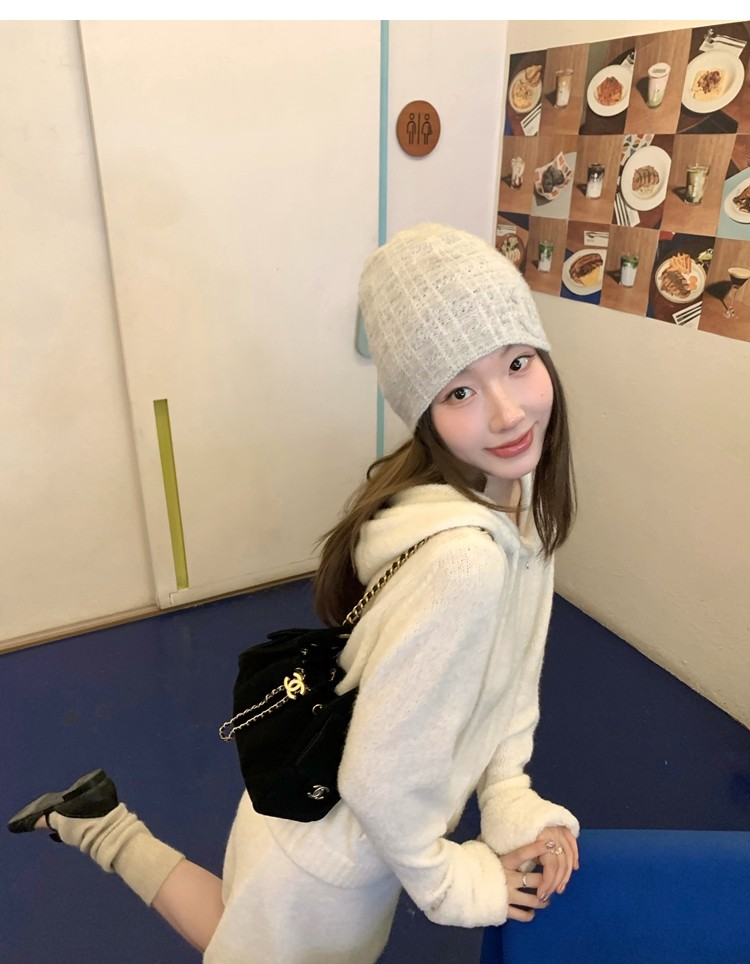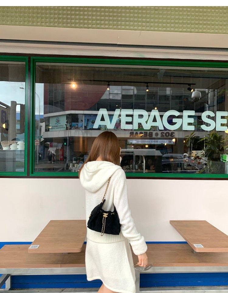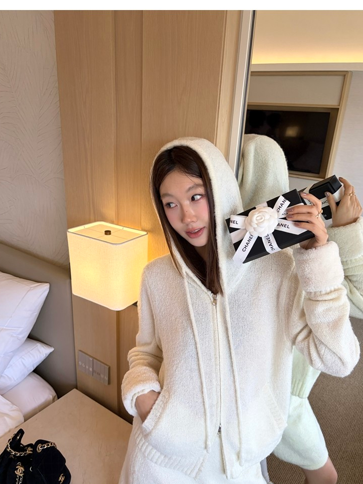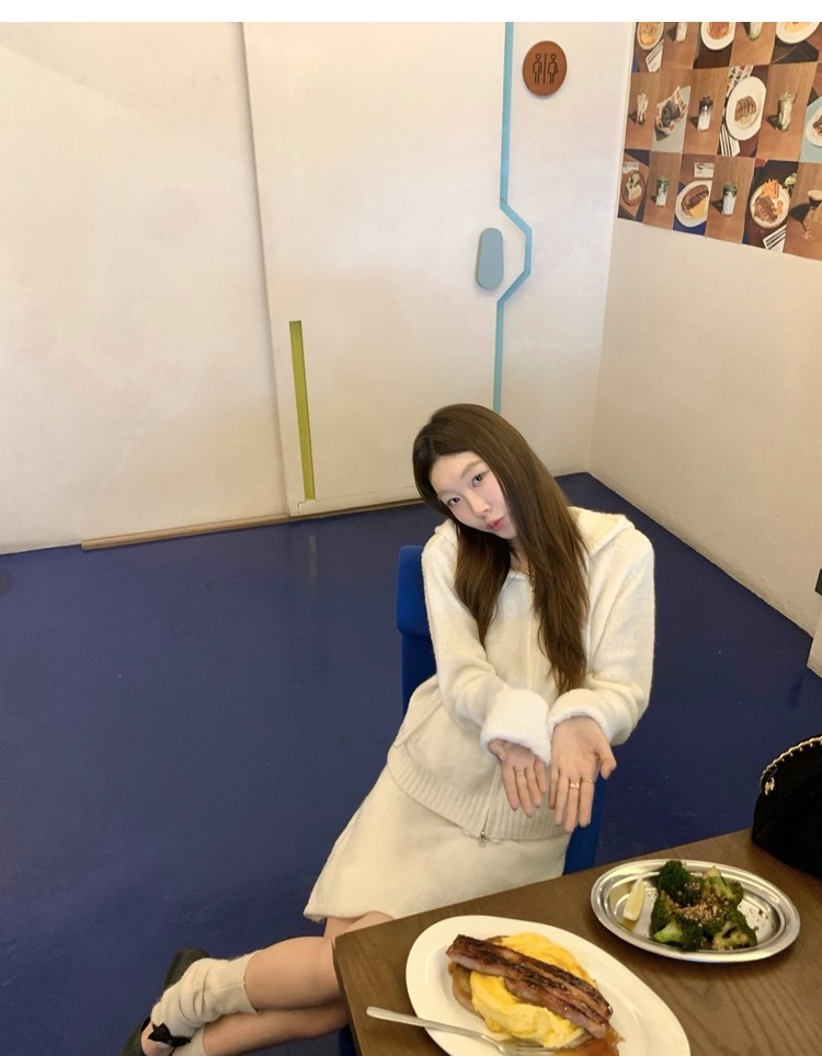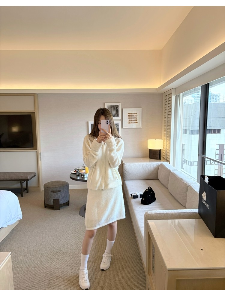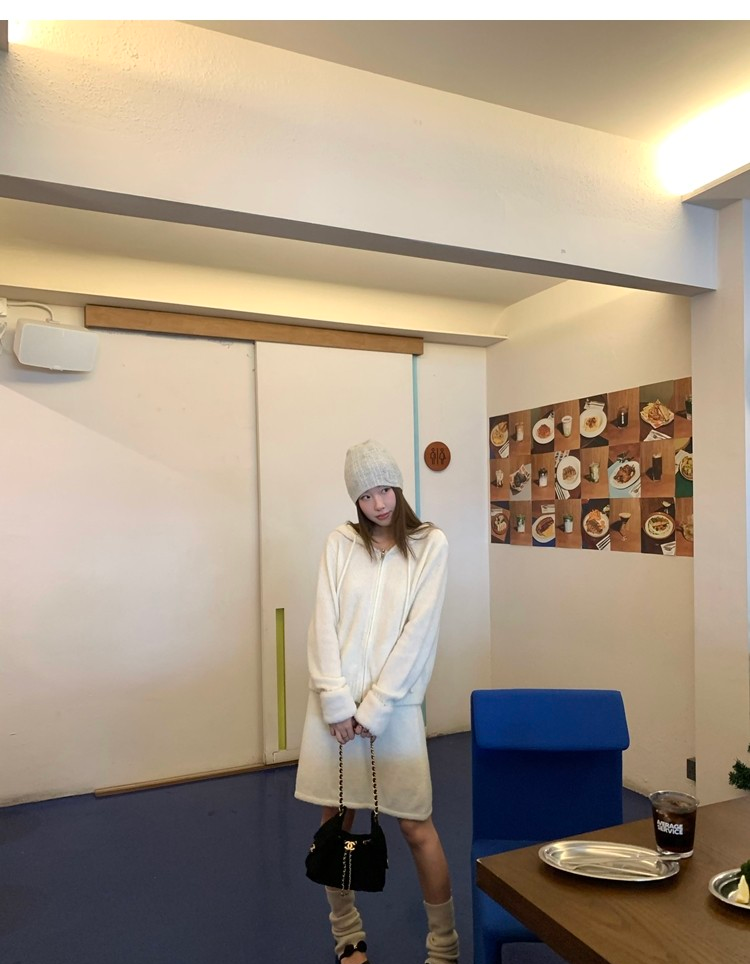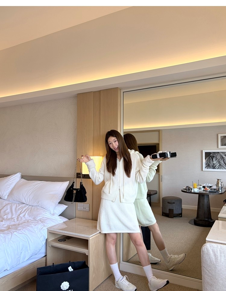 Sweet Texture Wool Hooded Removable Loop Sleeve Cardigan A-Shaped Skirt Set