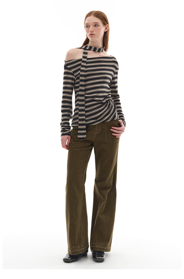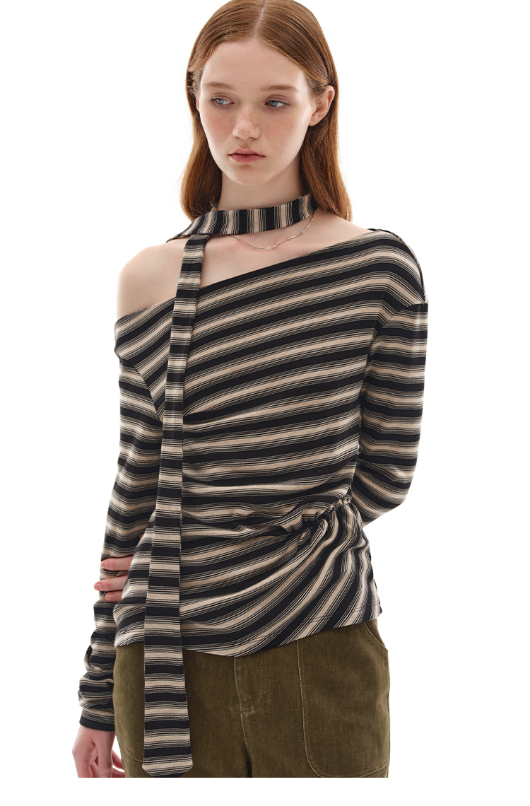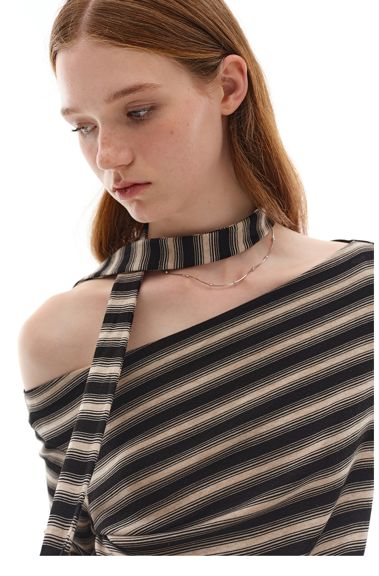 Vintage Tencel wool ribbons stripes knitted T-shirt