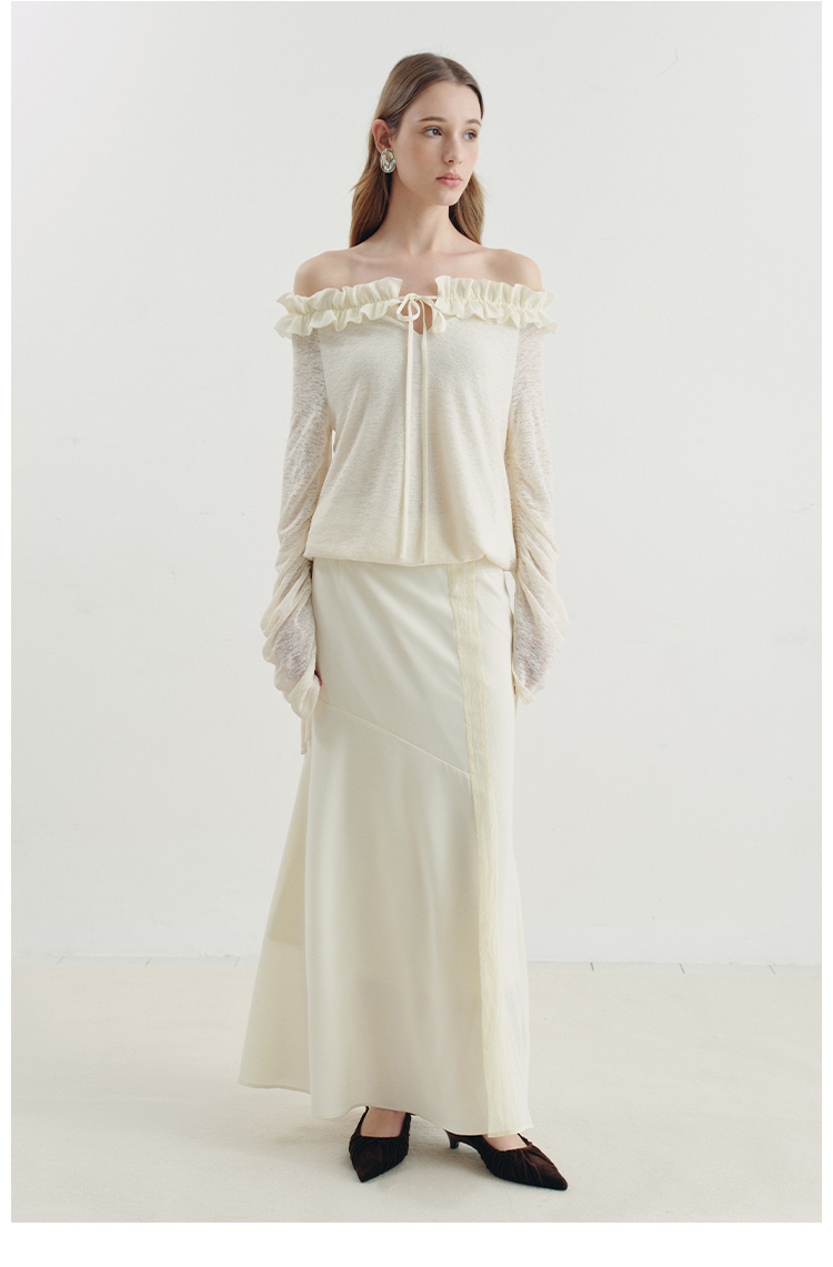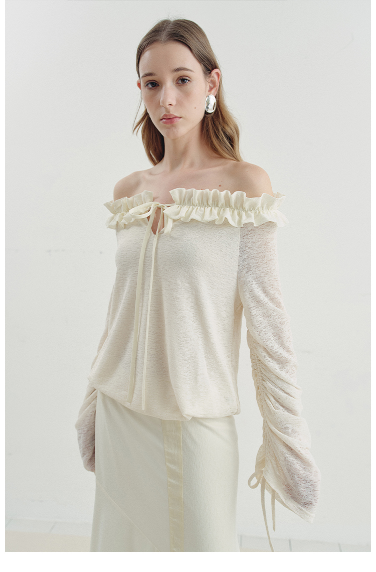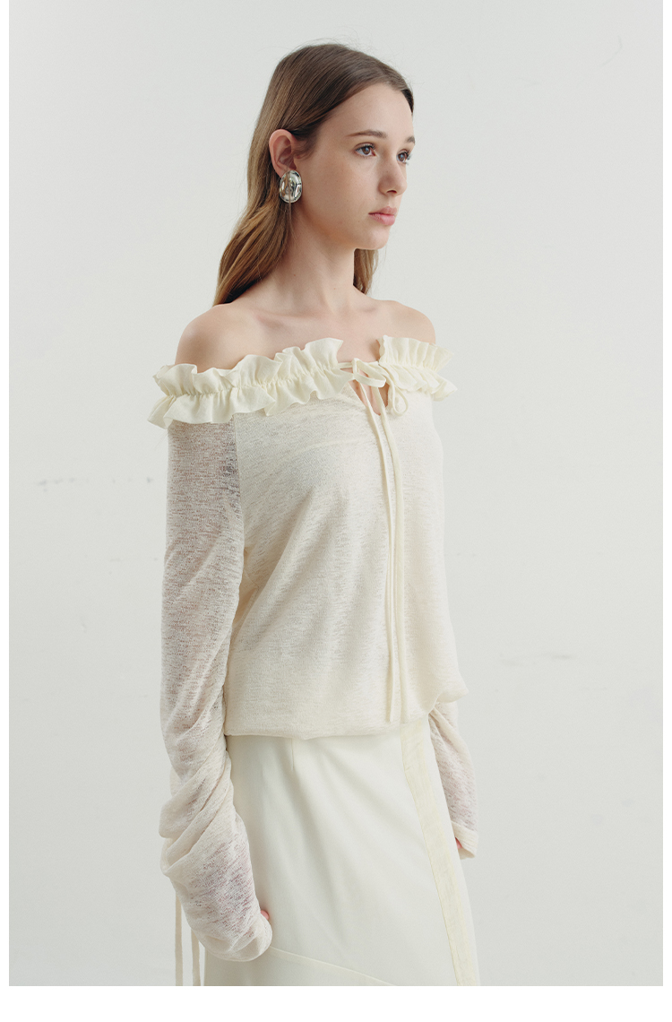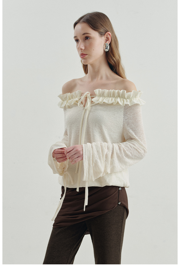 One-character shoulder-toothed lace top