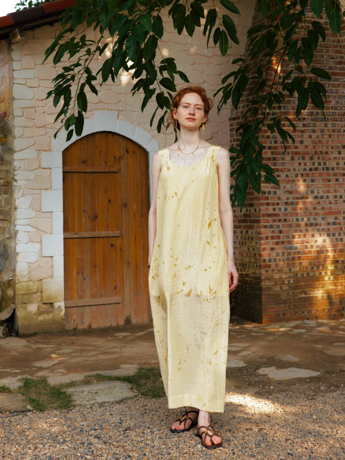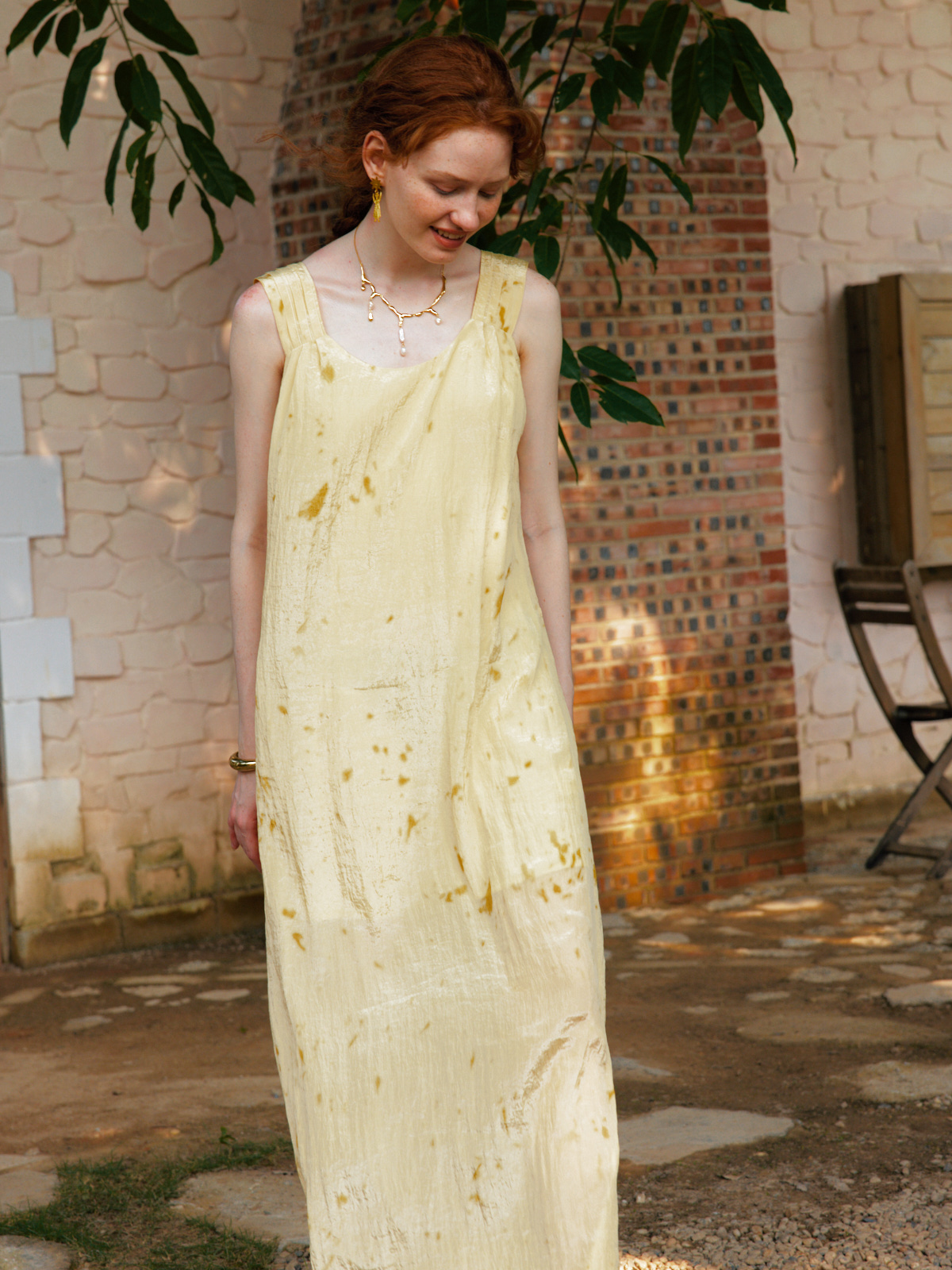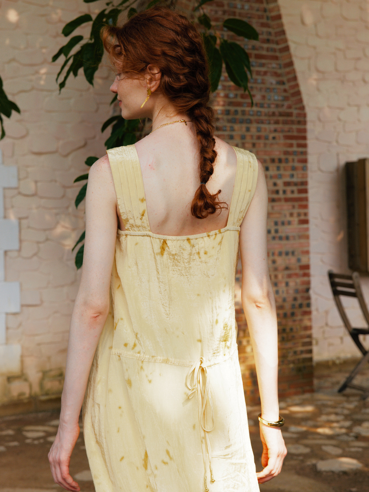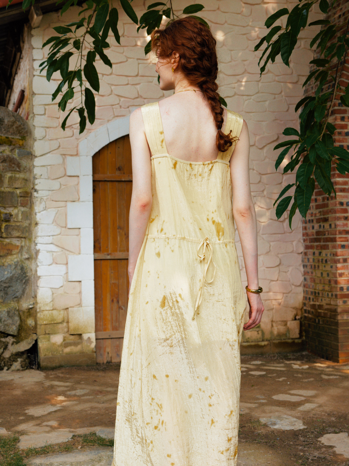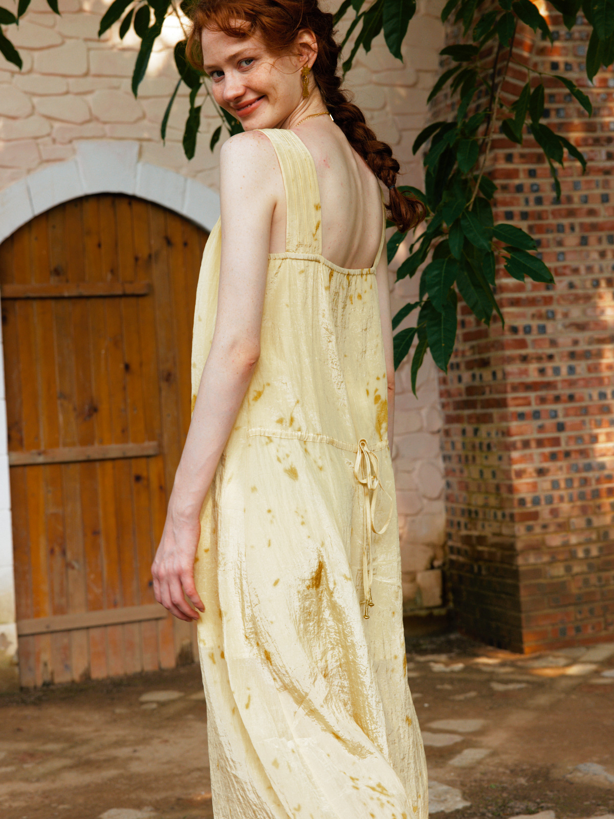 Wrinkled Moon Ink Splash Print Drawstring Vest Dress