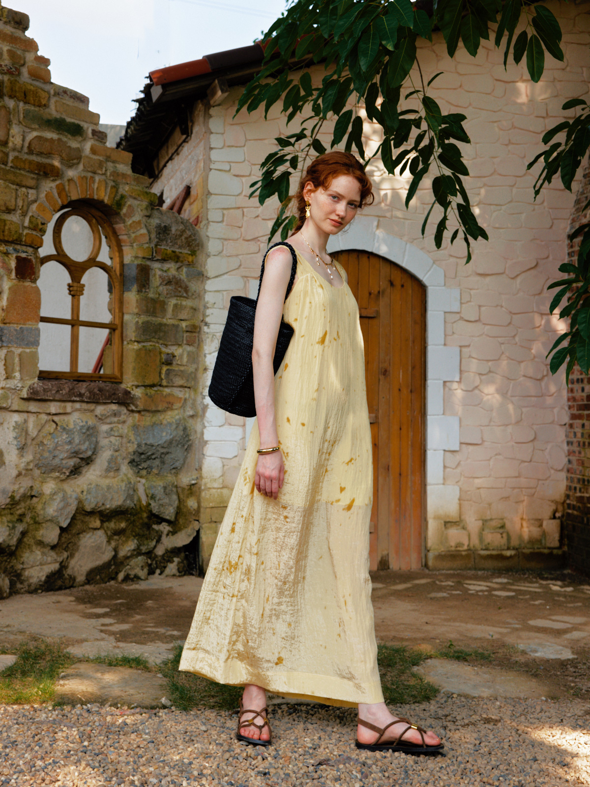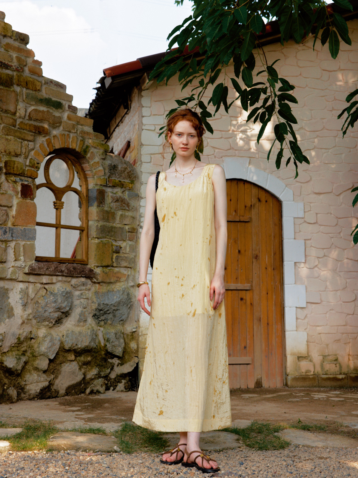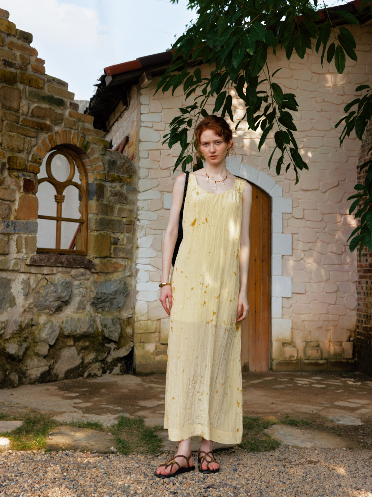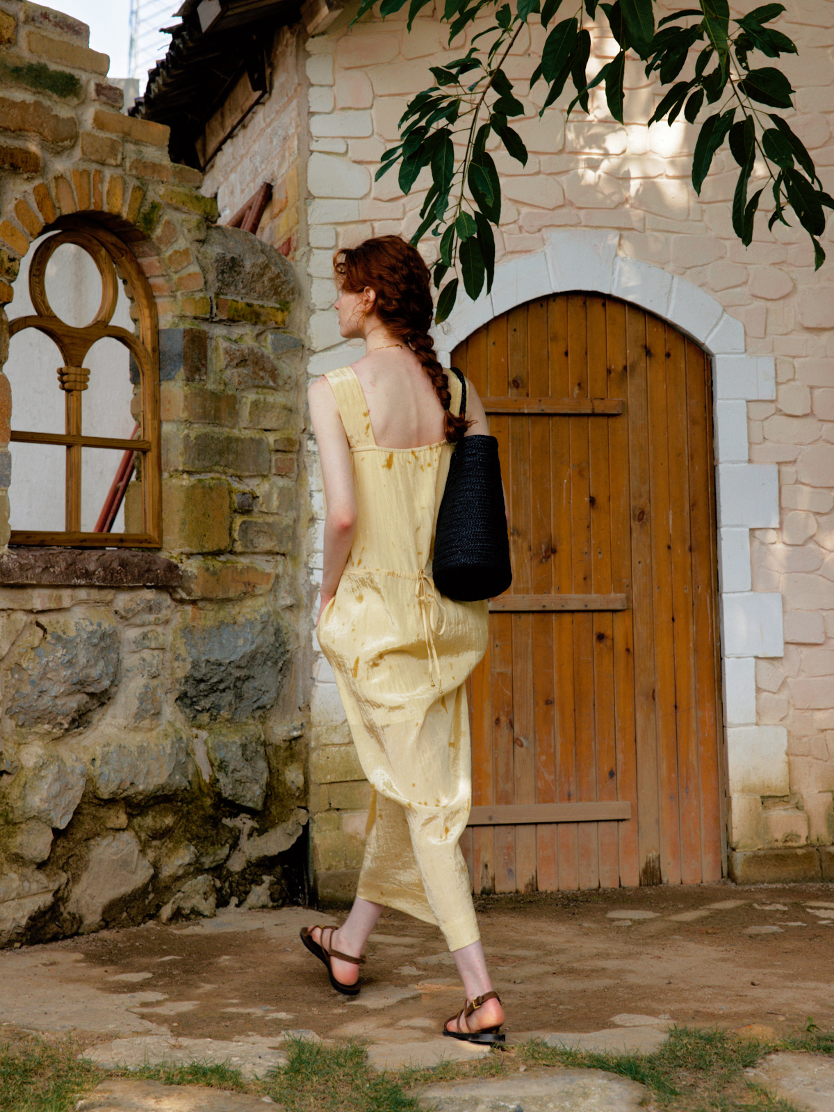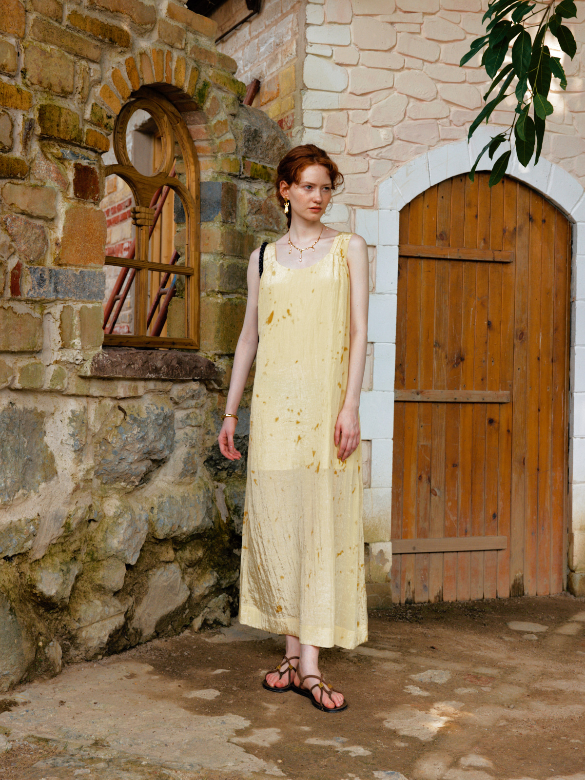 Wrinkled Moon Ink Splash Print Drawstring Vest Dress