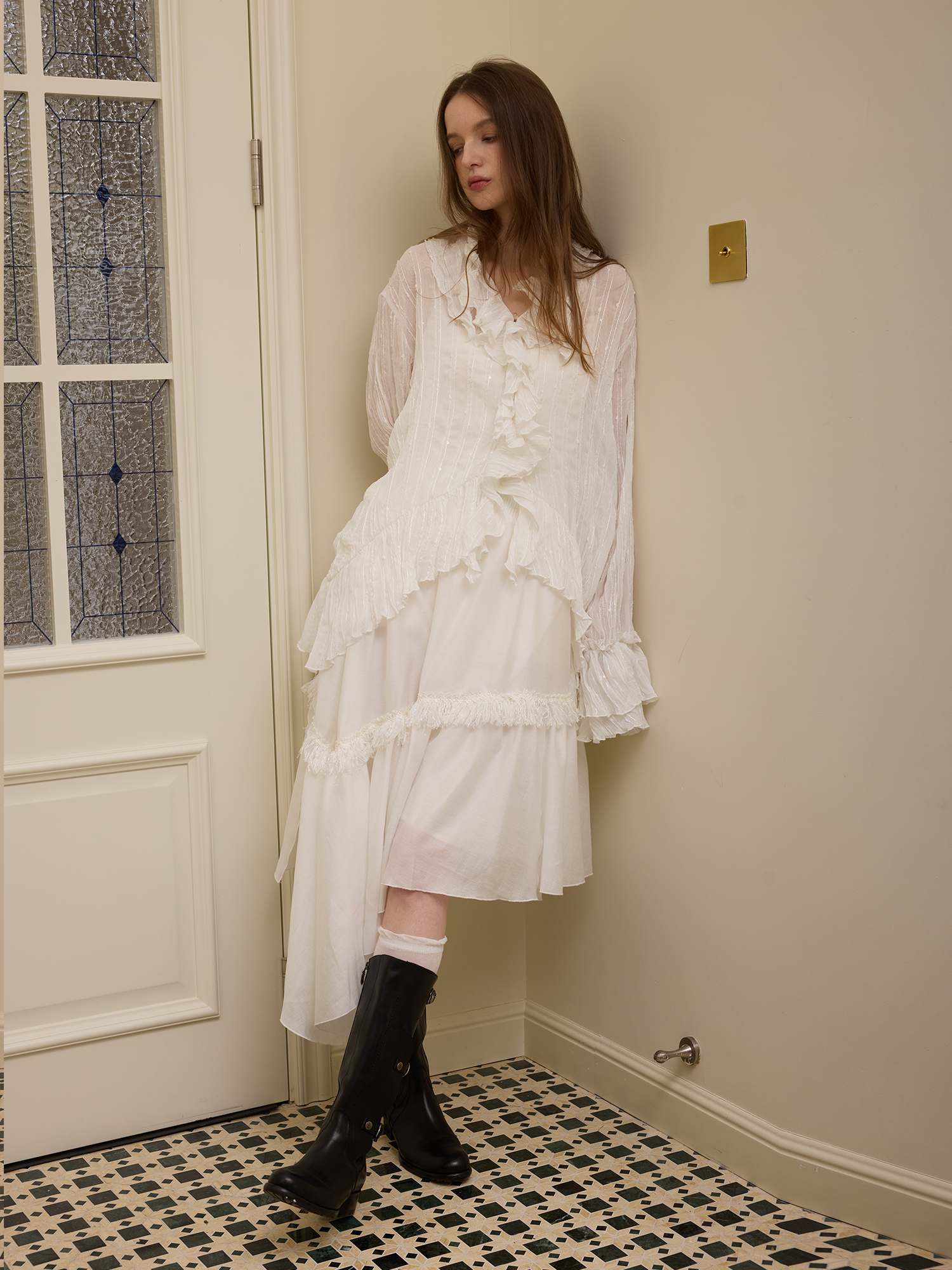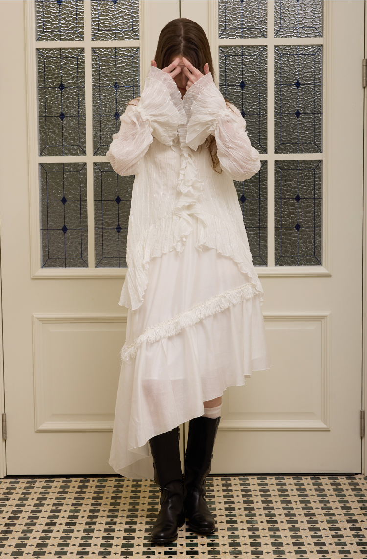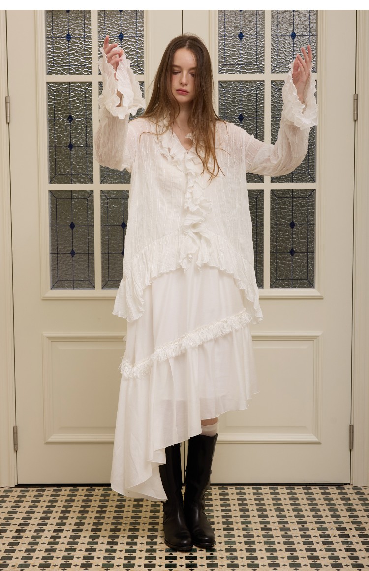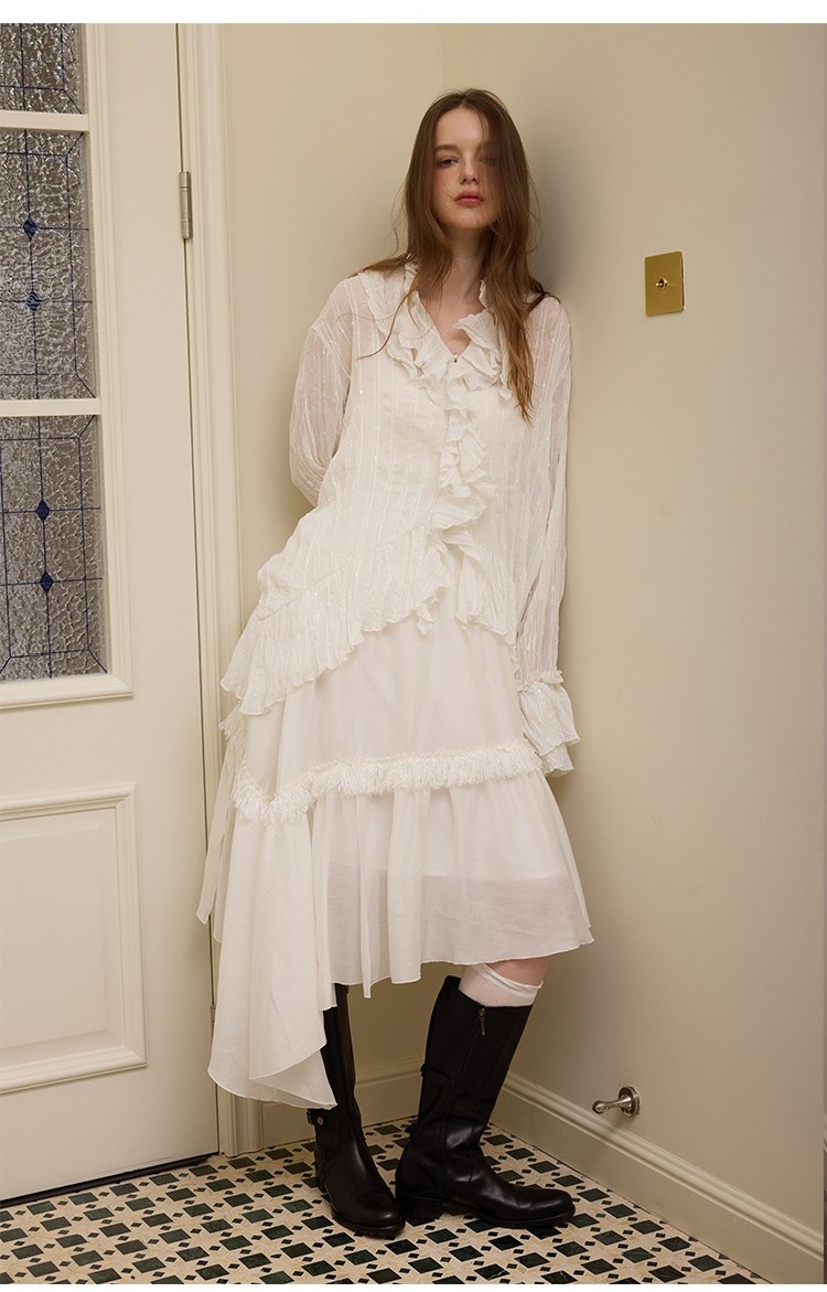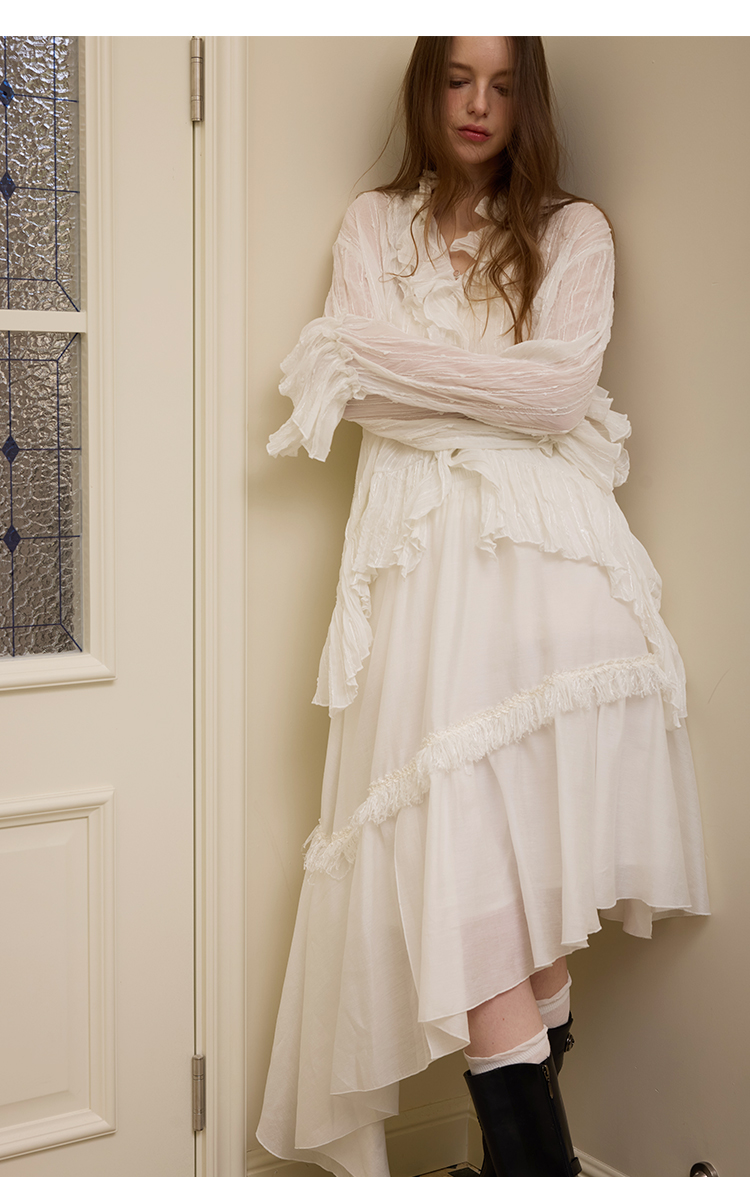 Lotus leaf collar stacked texture multi-layered long-sleeved shirt