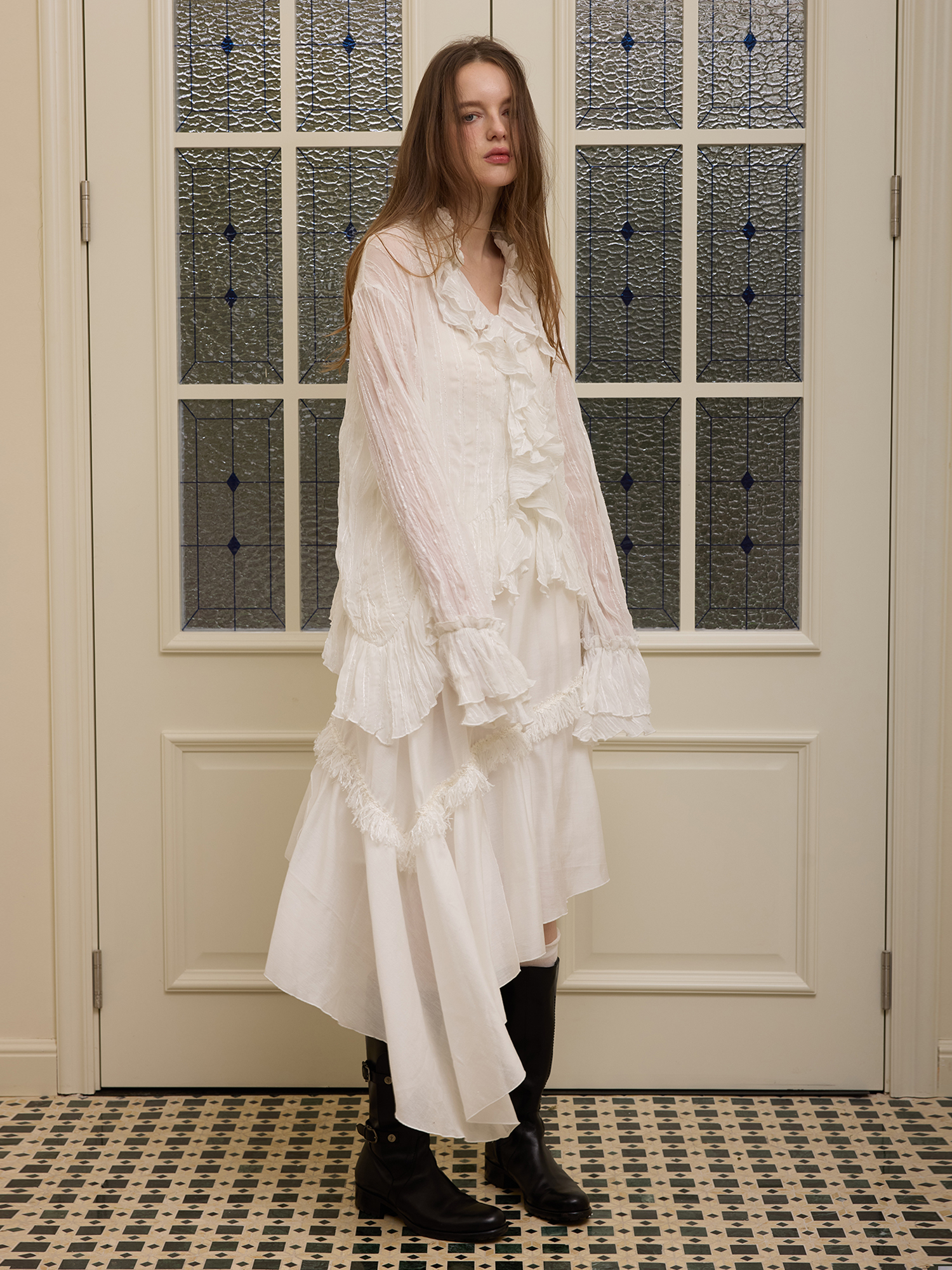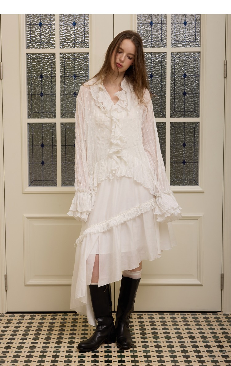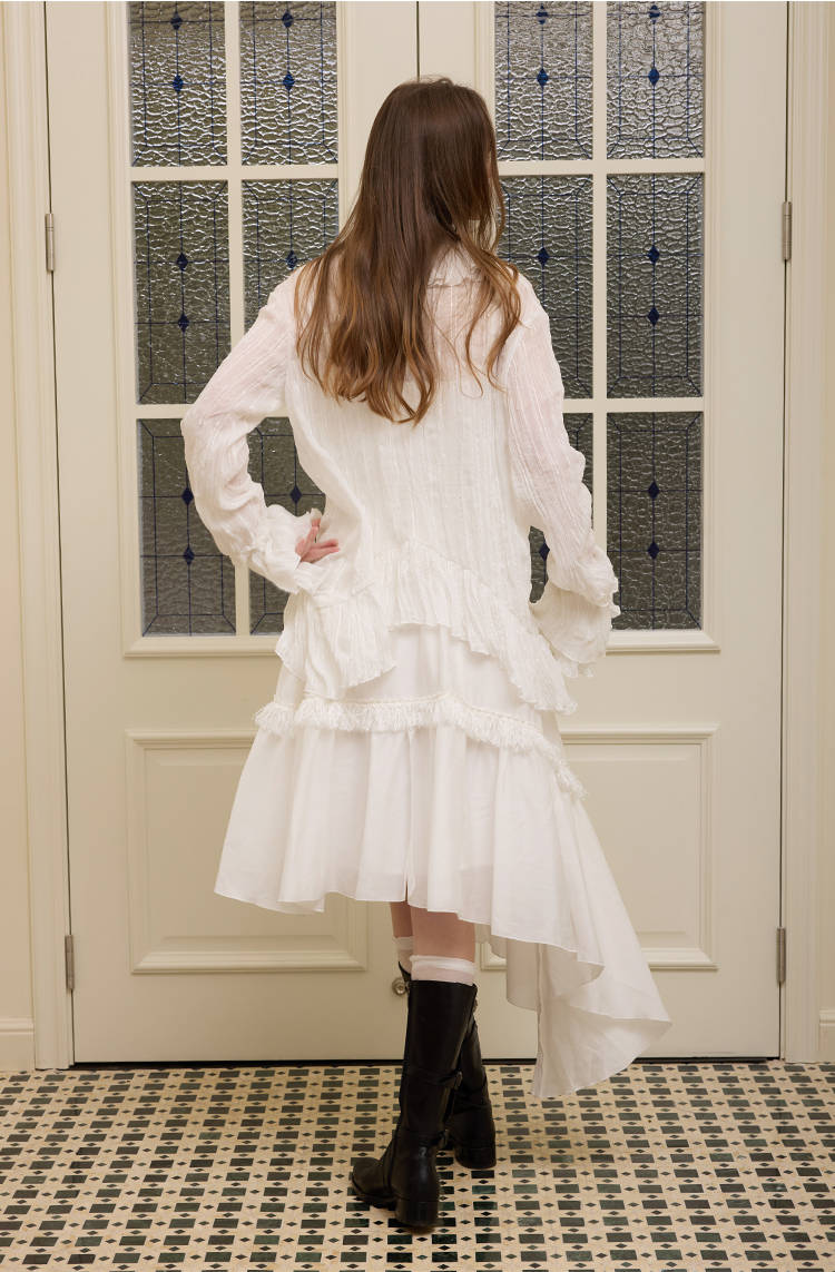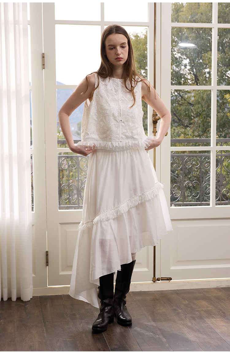 Tencel Linen Irregular Multi-layered Floating White Skirt