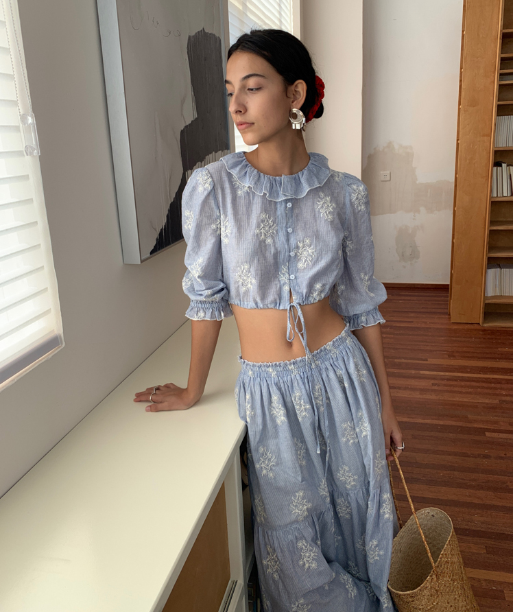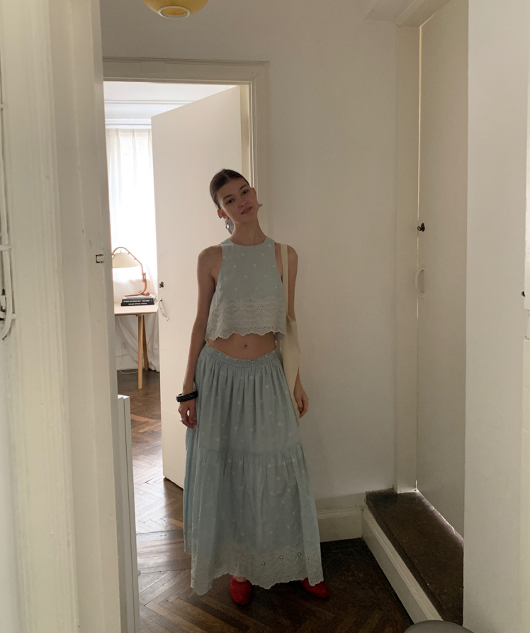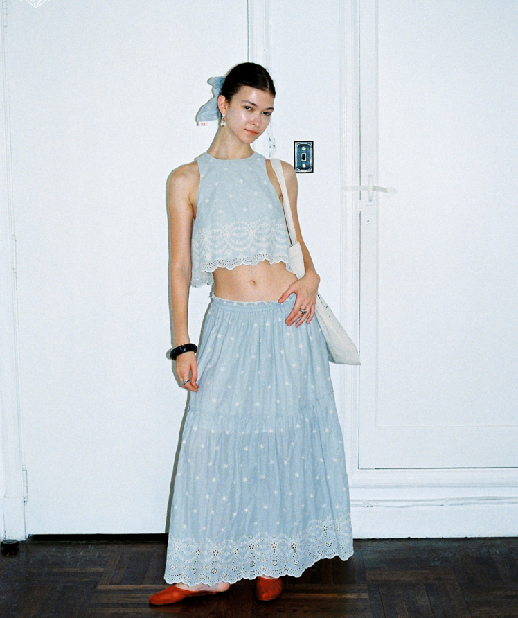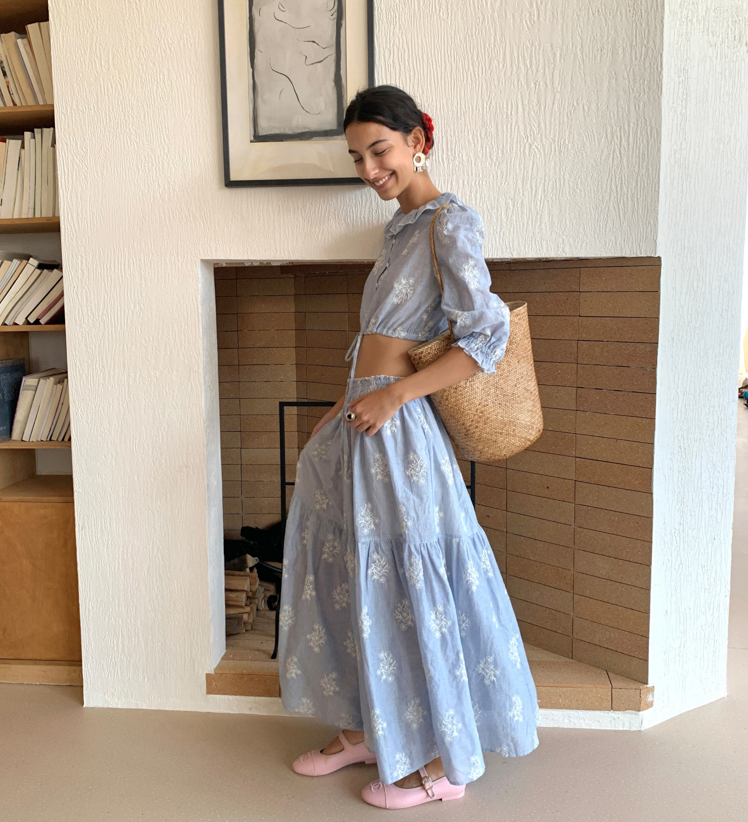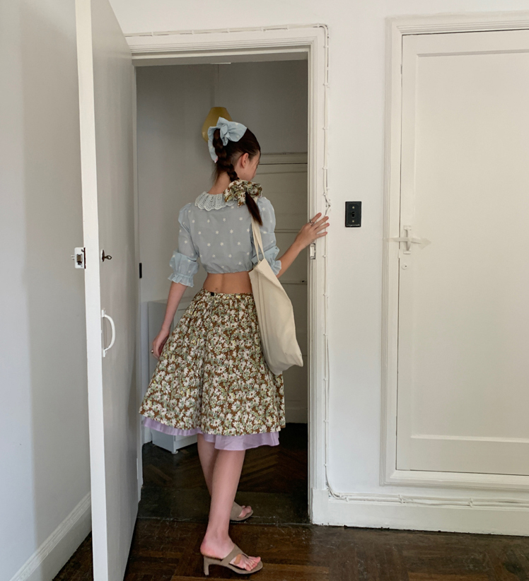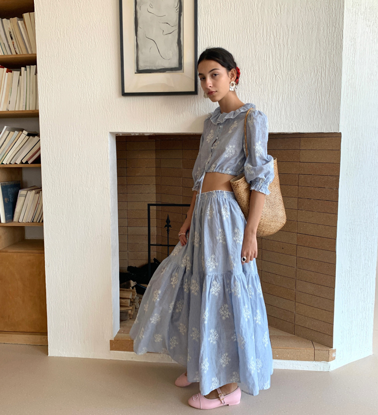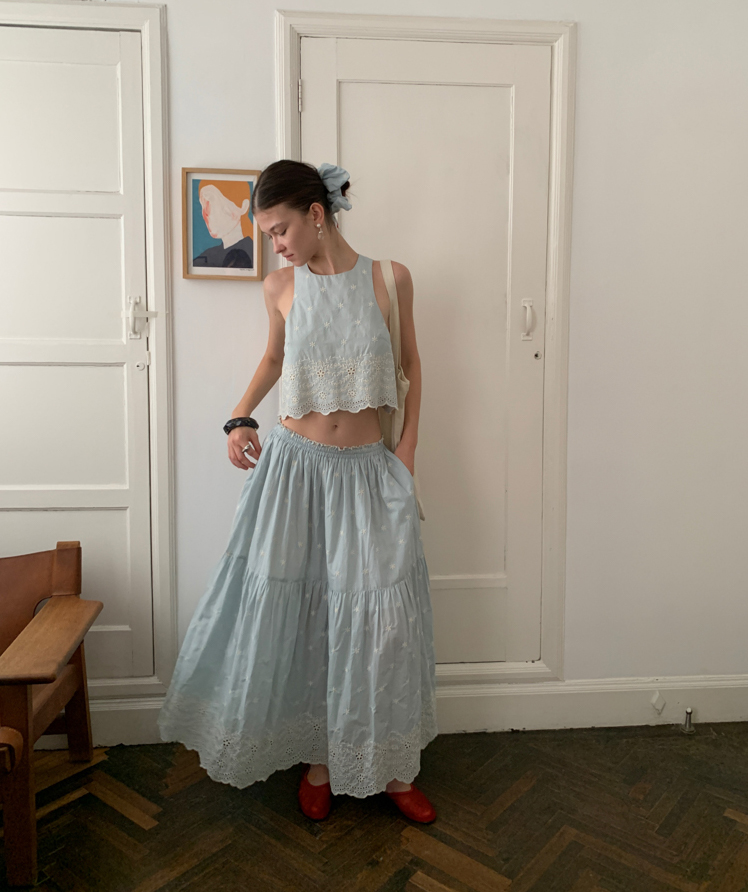 Embroidered French Shirt Tank Top Half Skirt Set