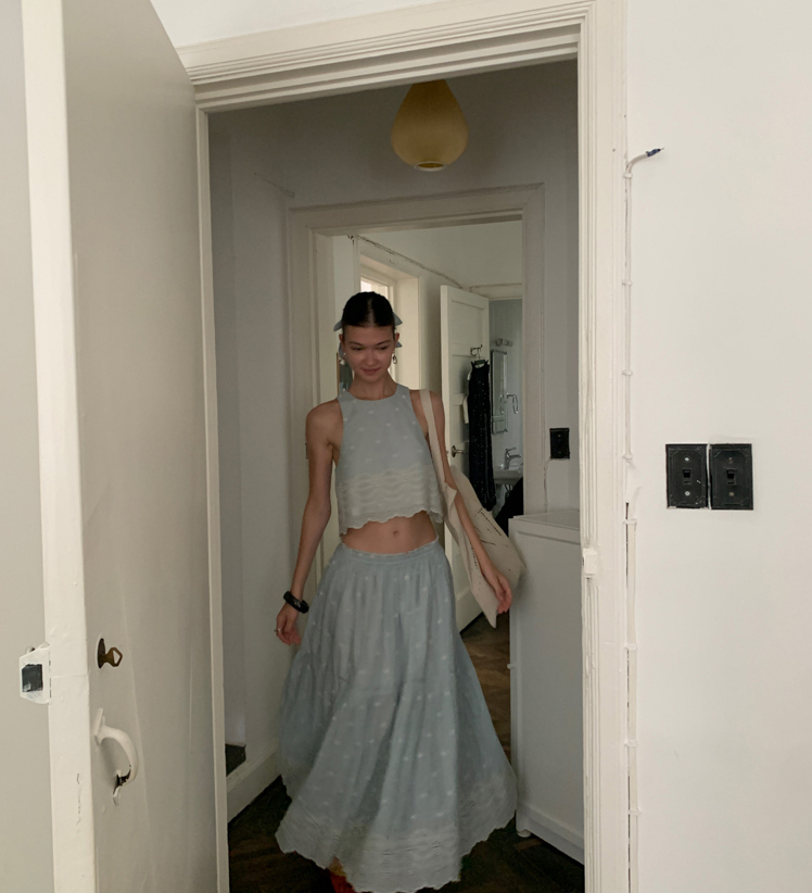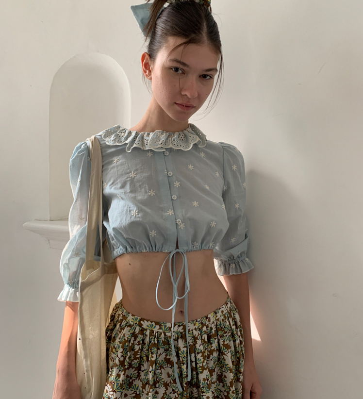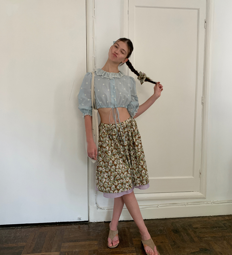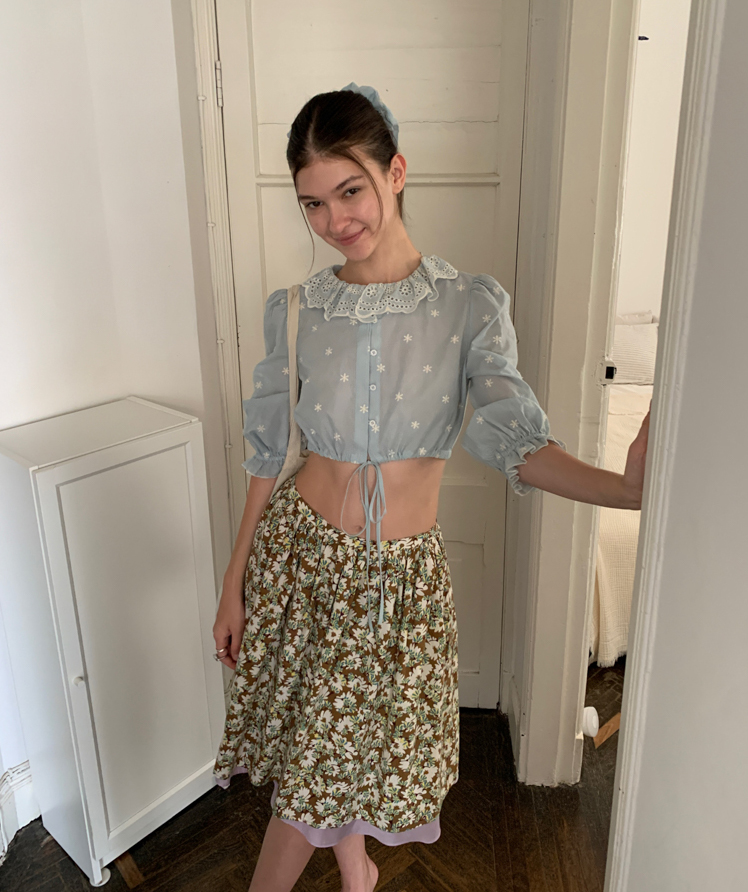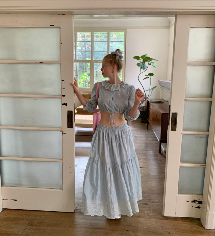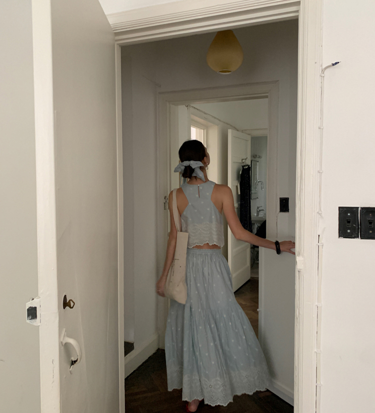 Embroidered French Shirt Tank Top Half Skirt Set