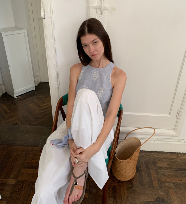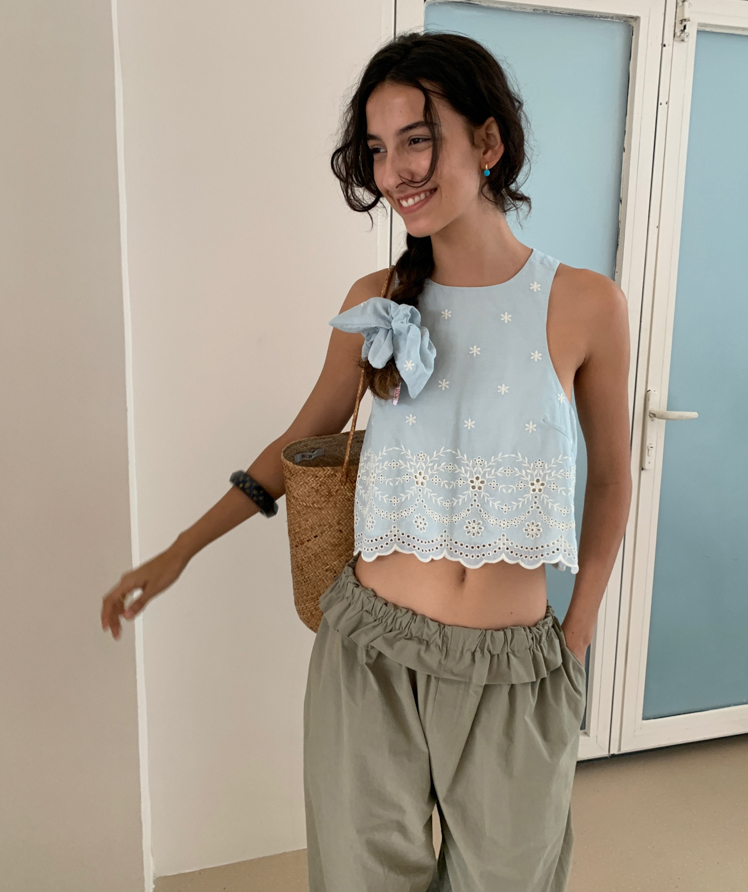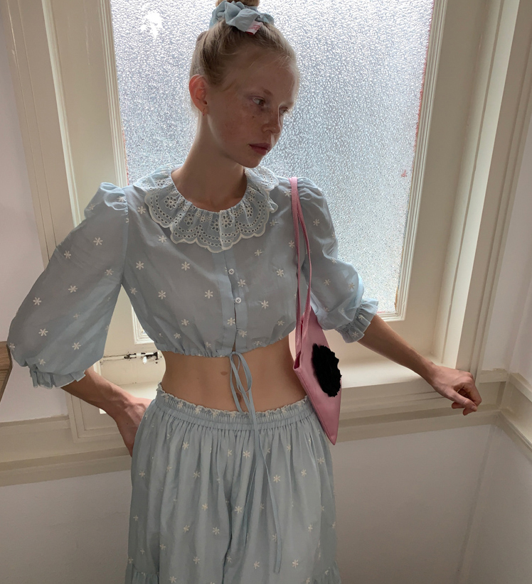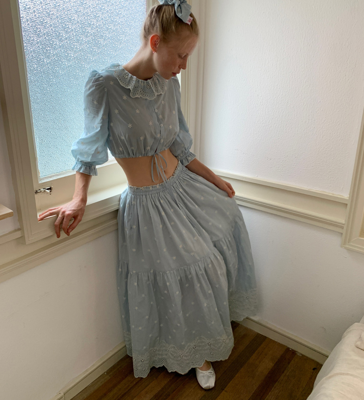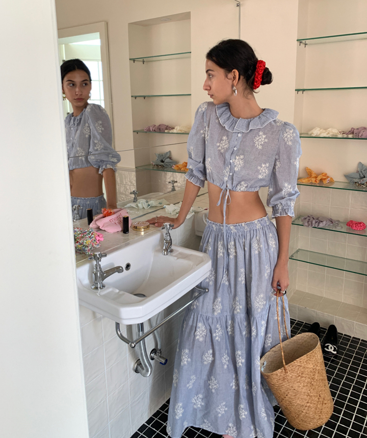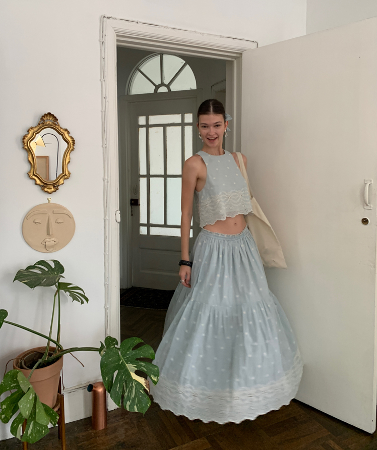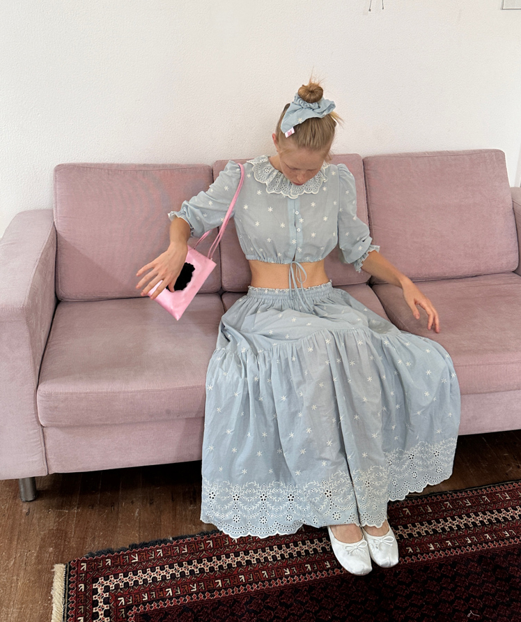 Embroidered French Shirt Tank Top Half Skirt Set