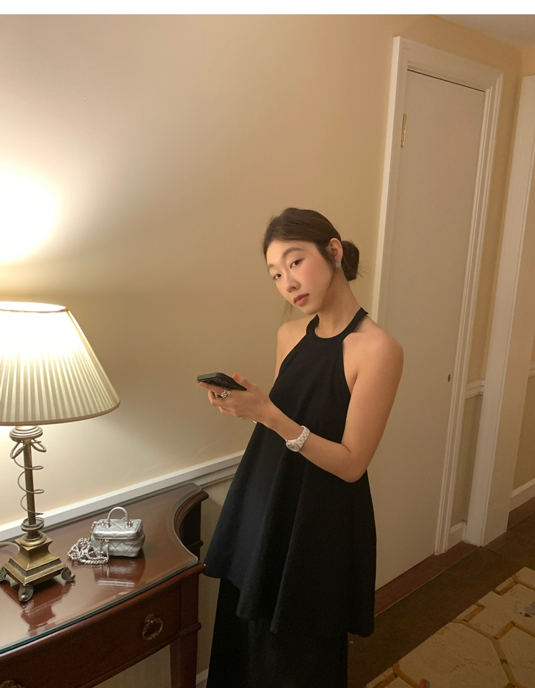 Versatile Neck Tank Top Elegant Midi Skirt Set
