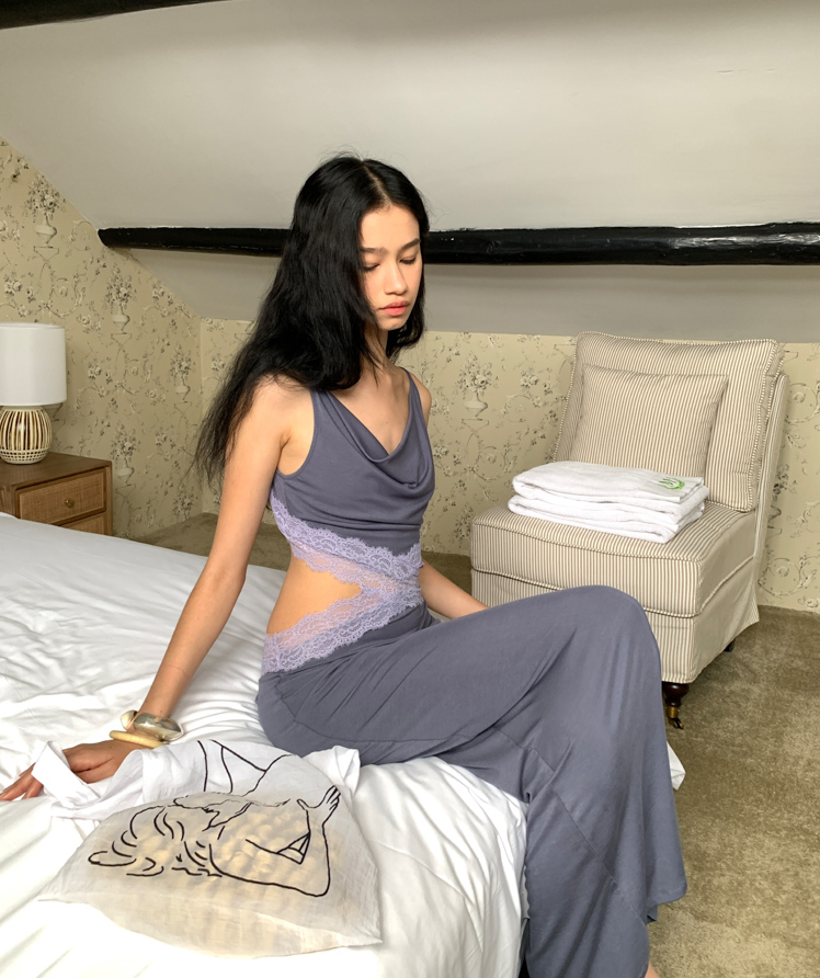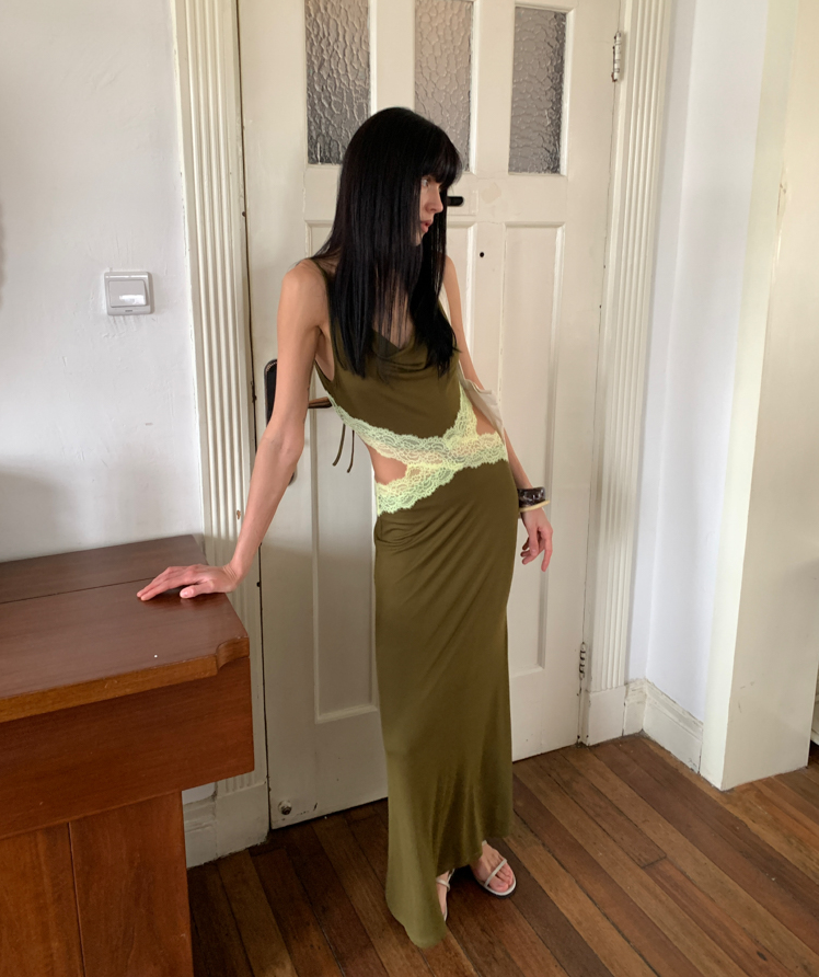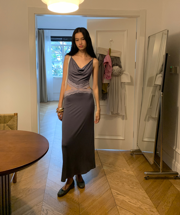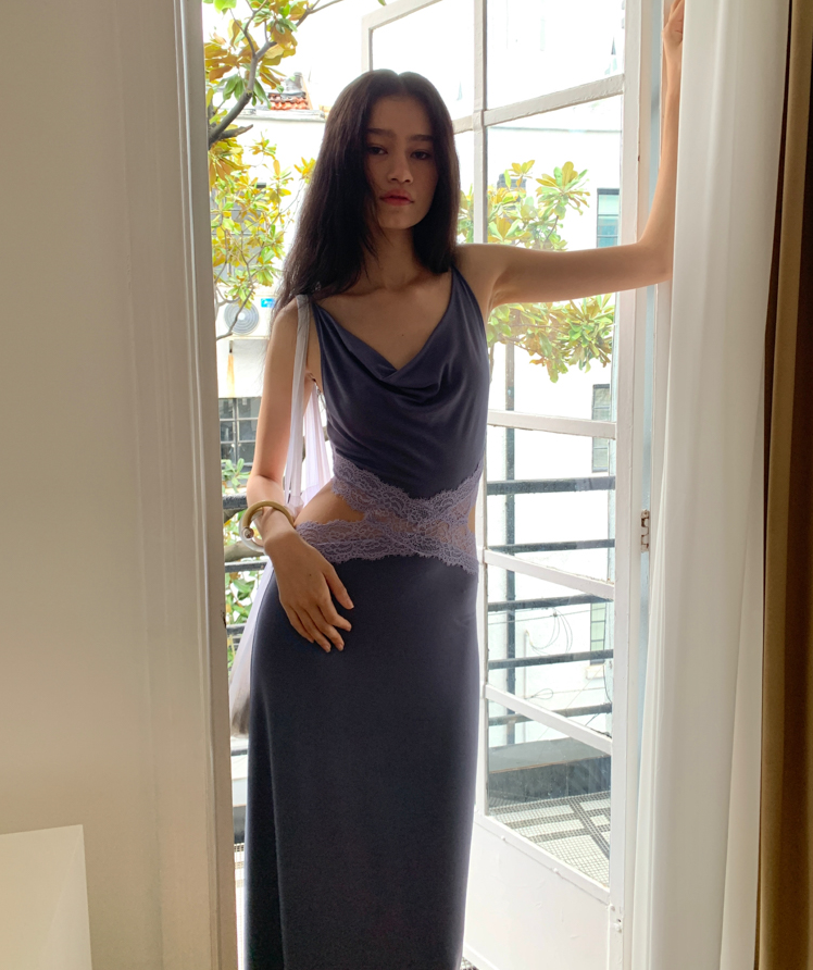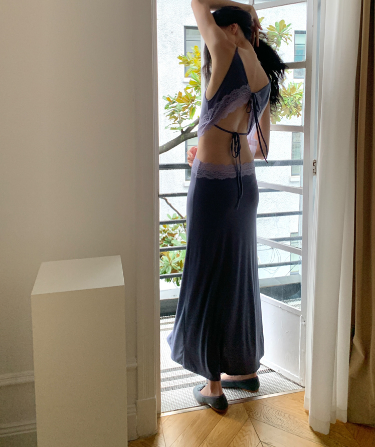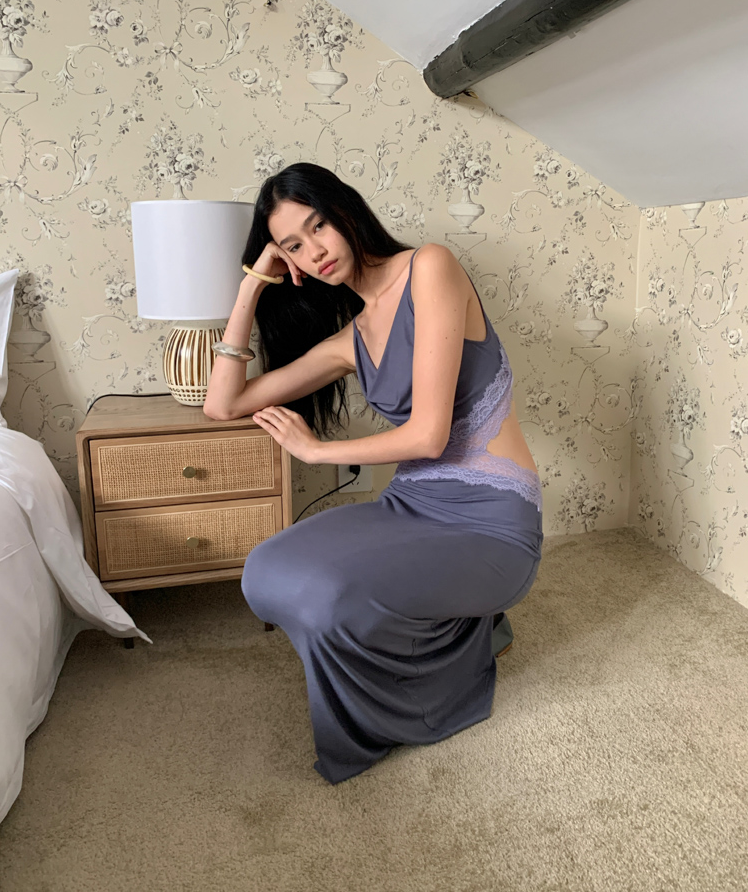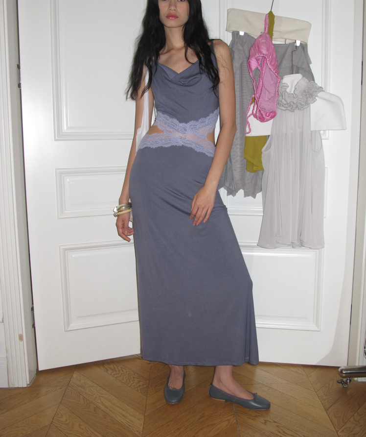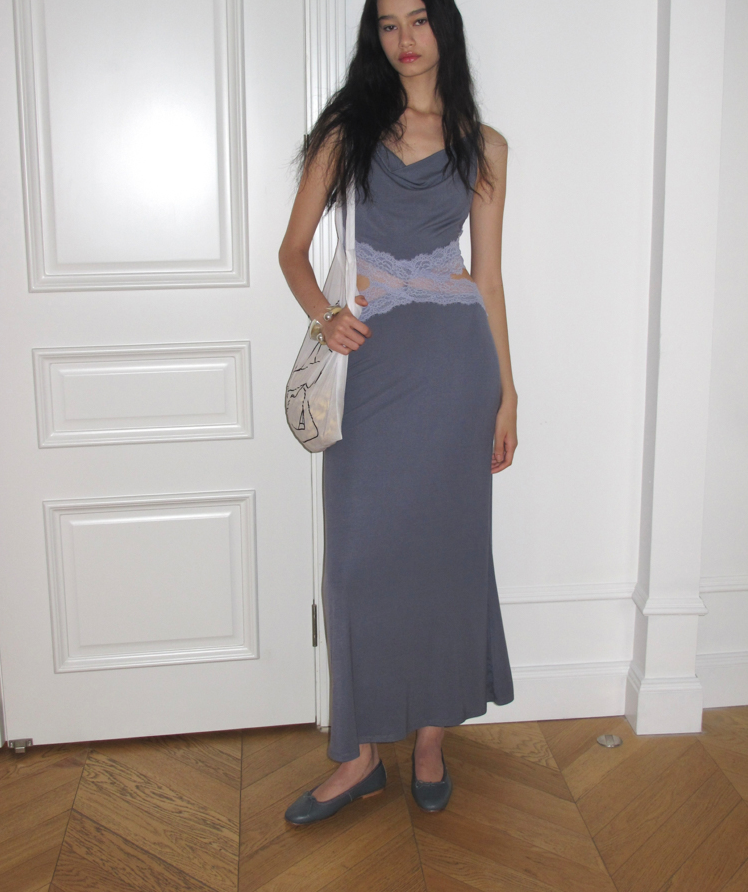 Waist hollow stitching lace French backless dress