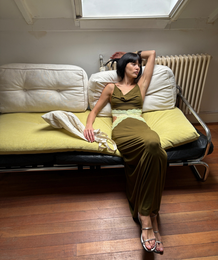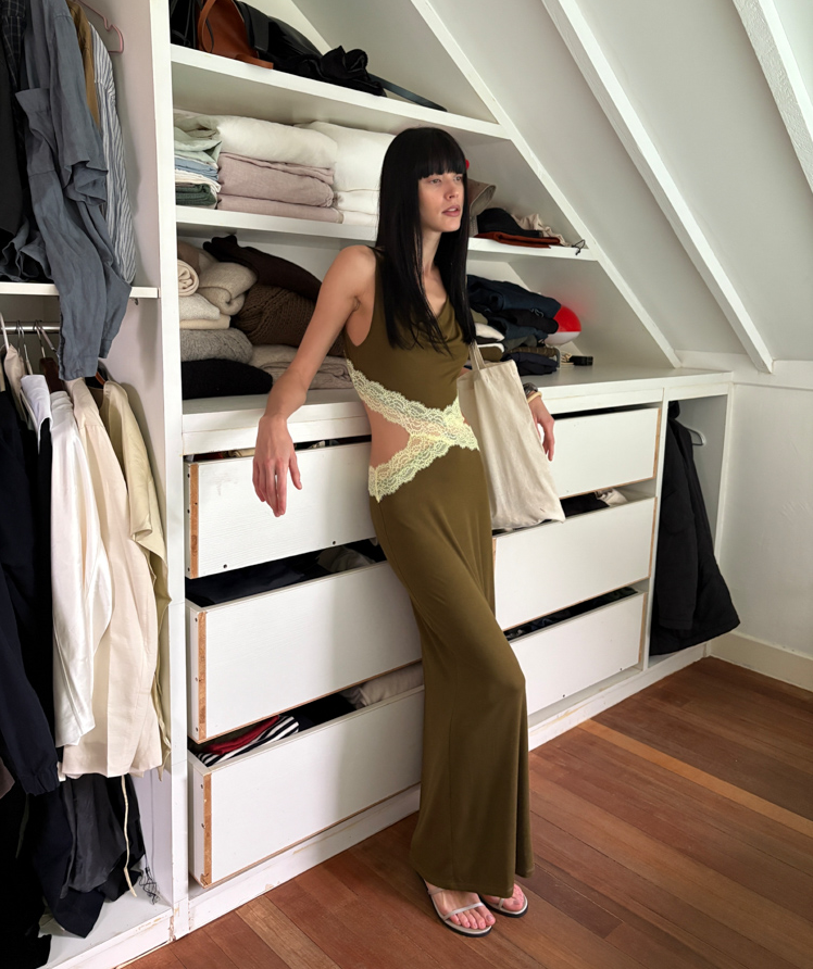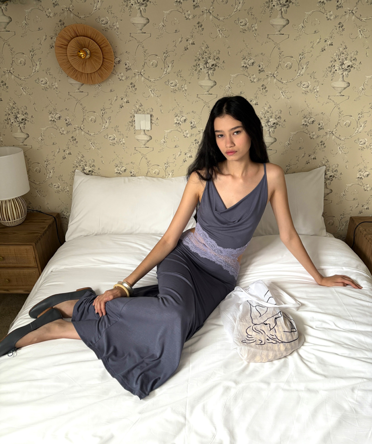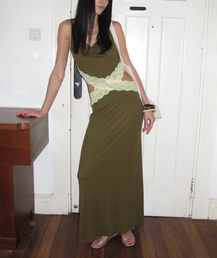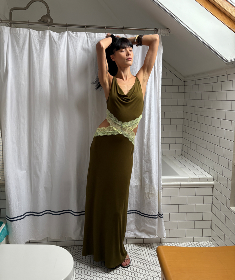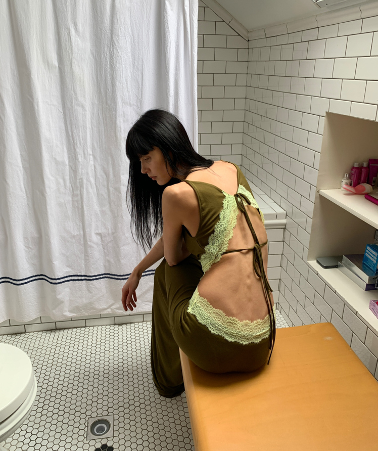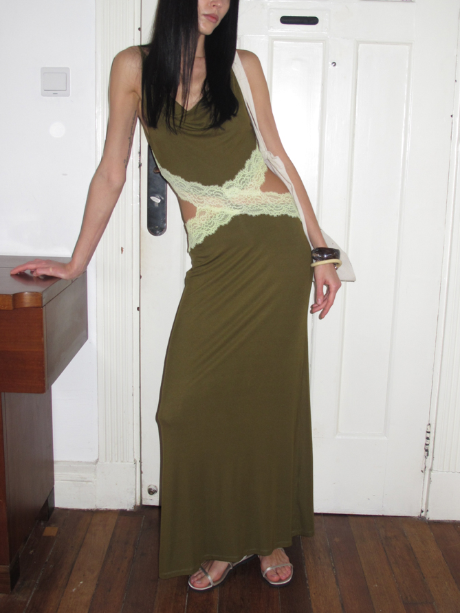 Waist hollow stitching lace French backless dress