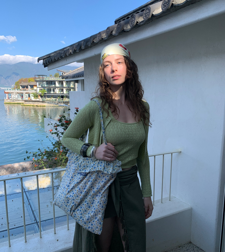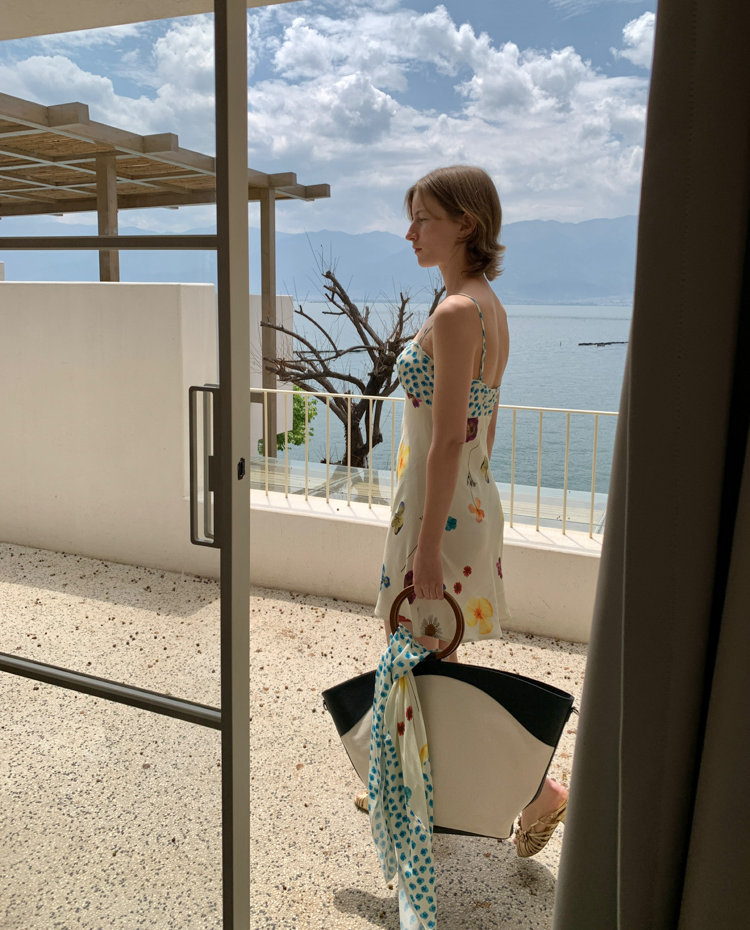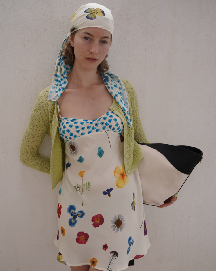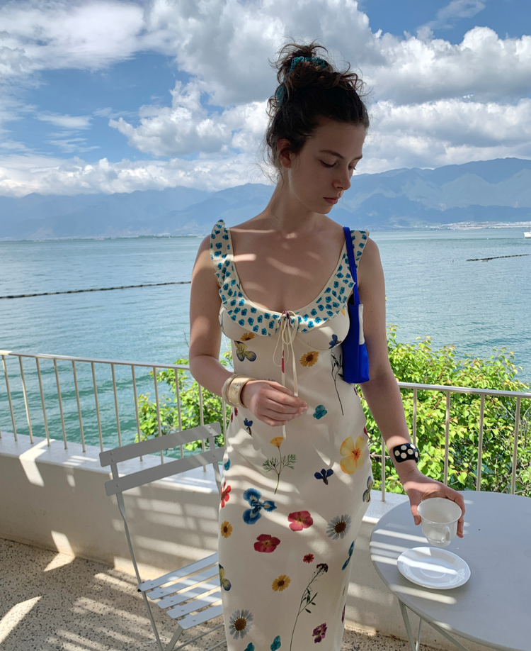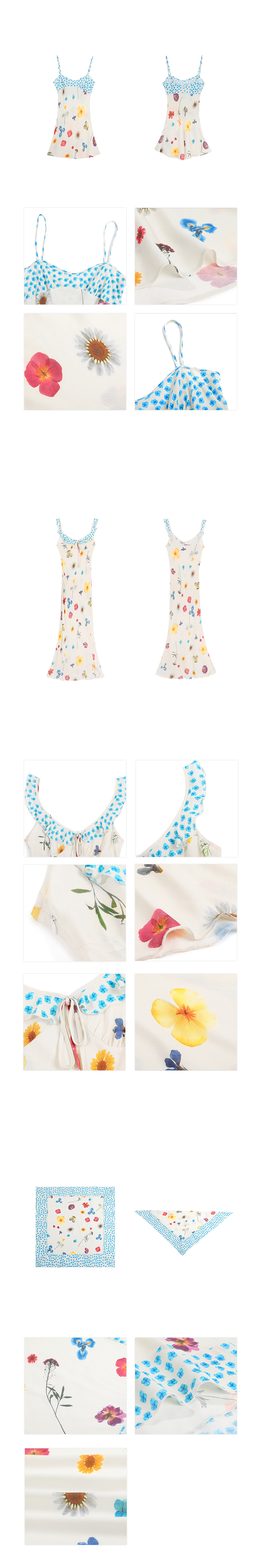 Blue Ribbon Broken Flowers Twisted Long / Short Dress & Scarf