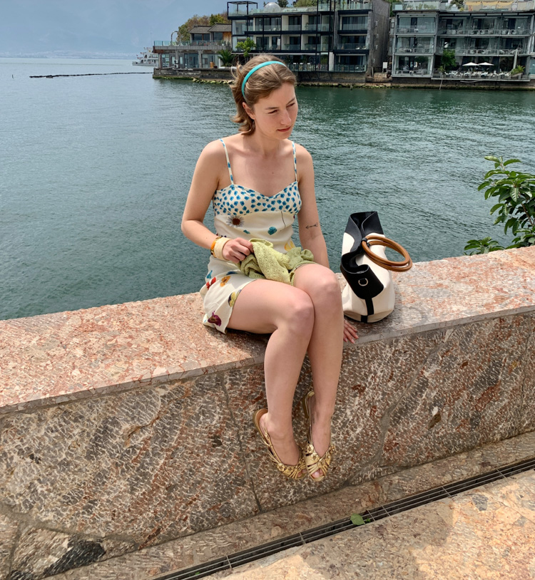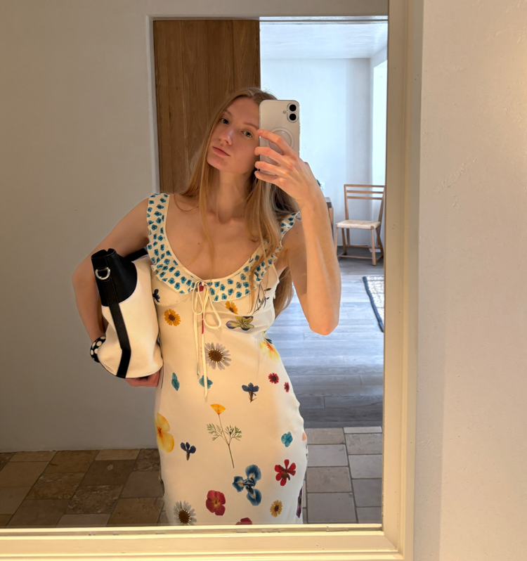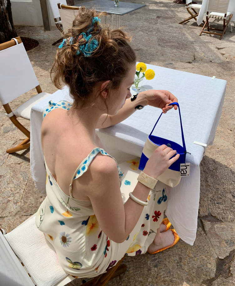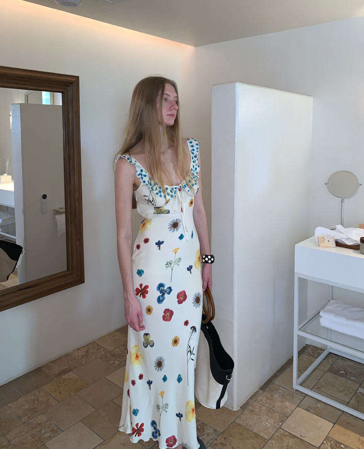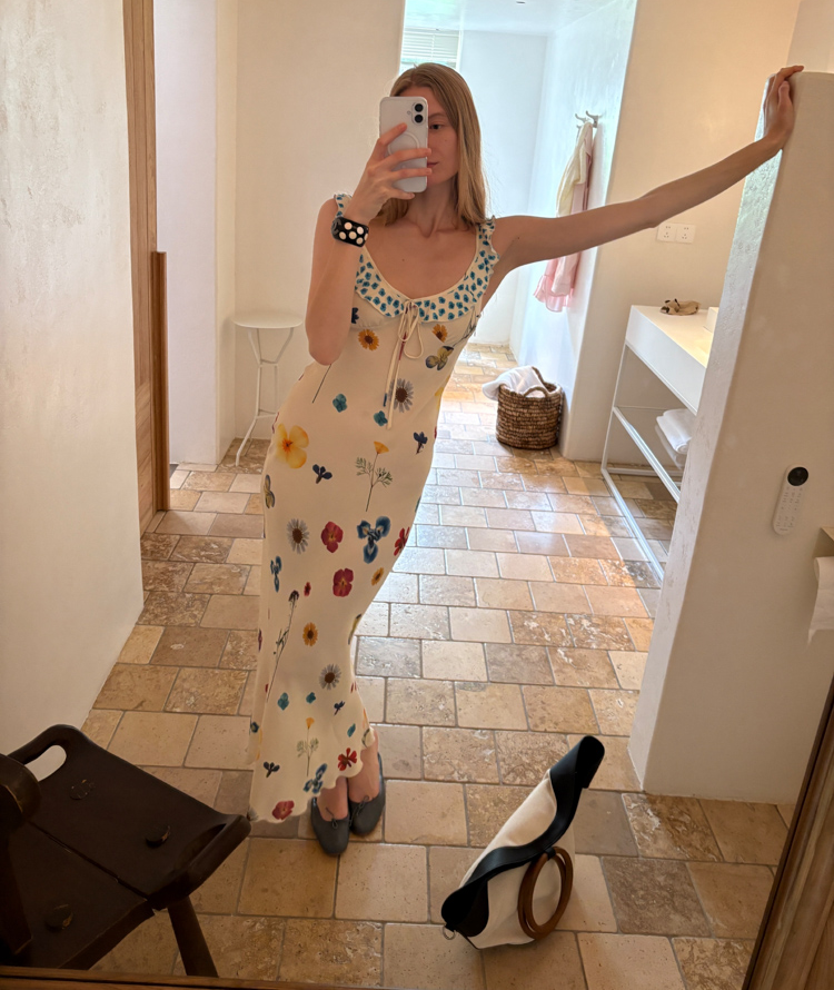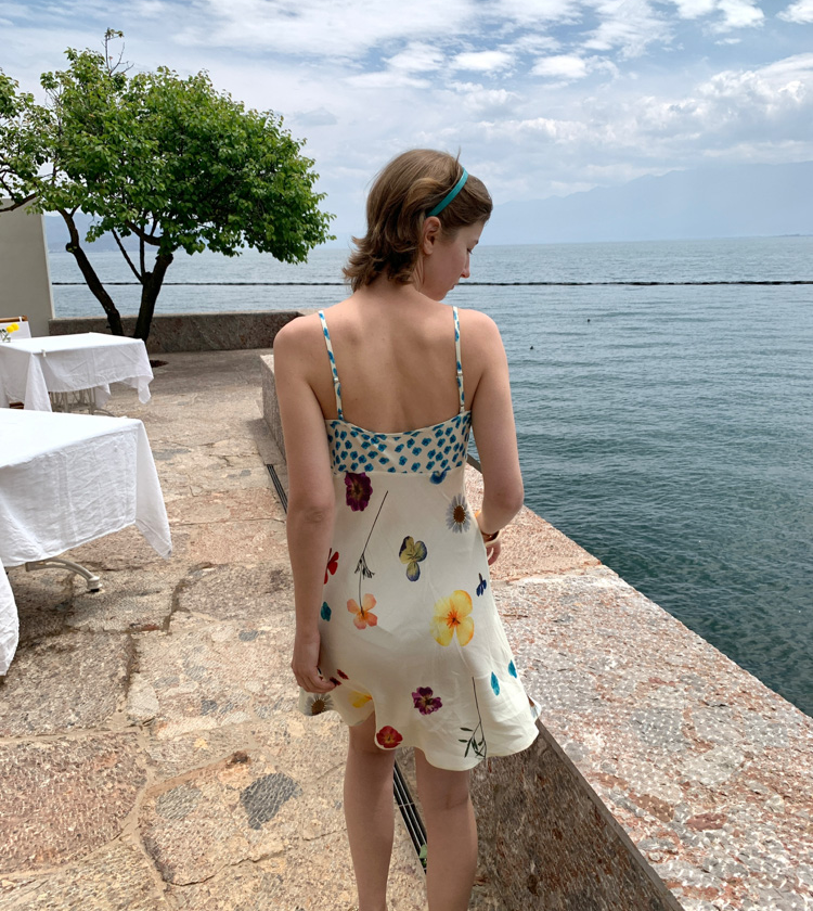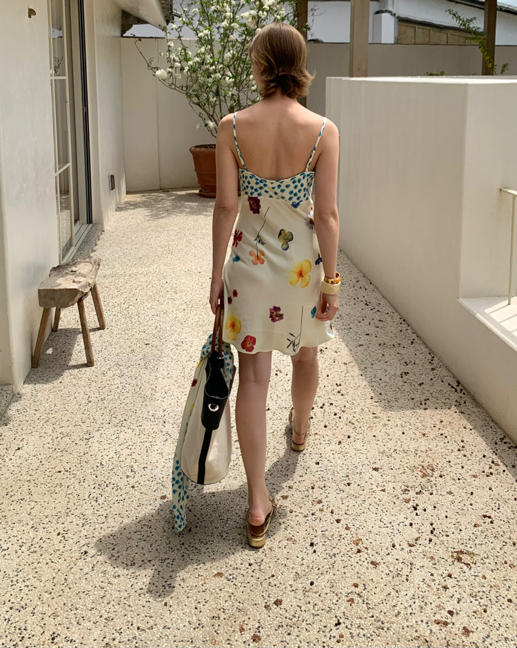 Blue Ribbon Broken Flowers Twisted Long / Short Dress & Scarf