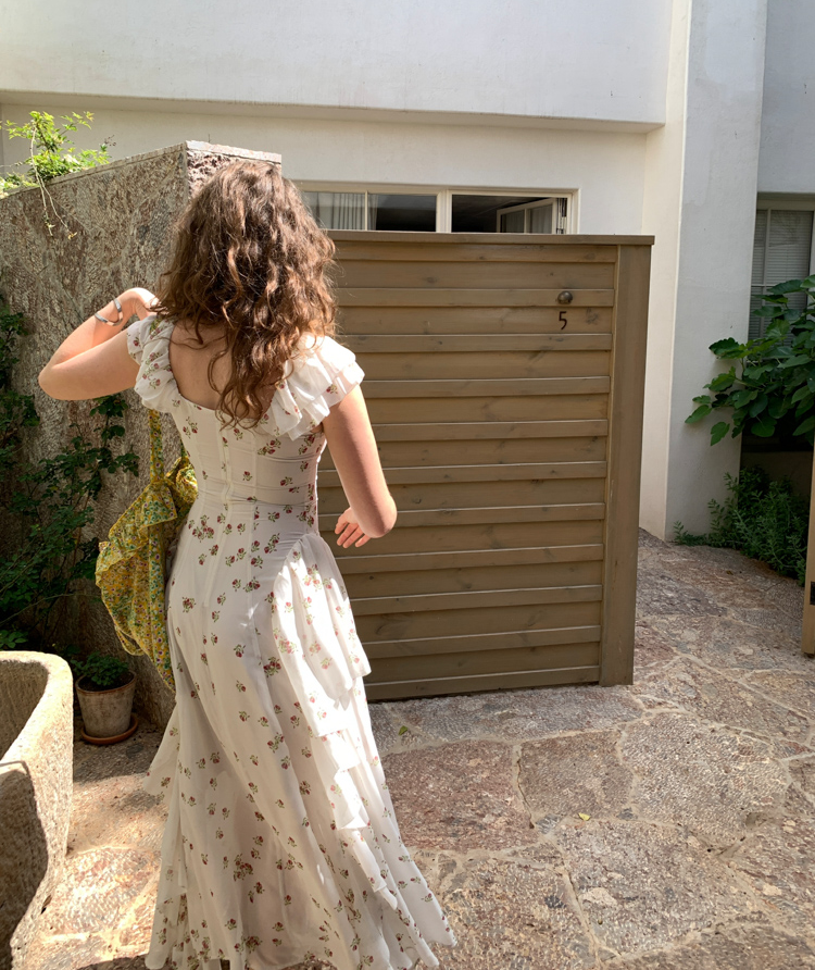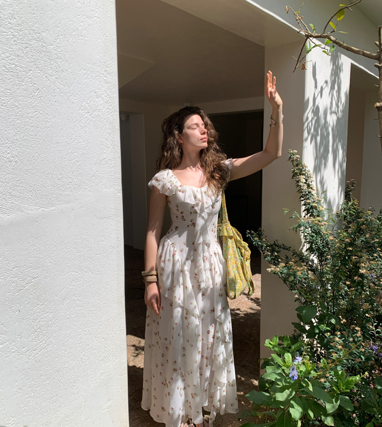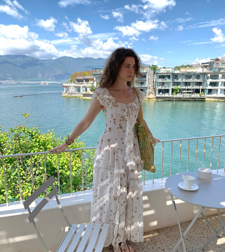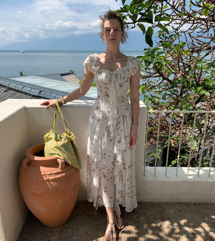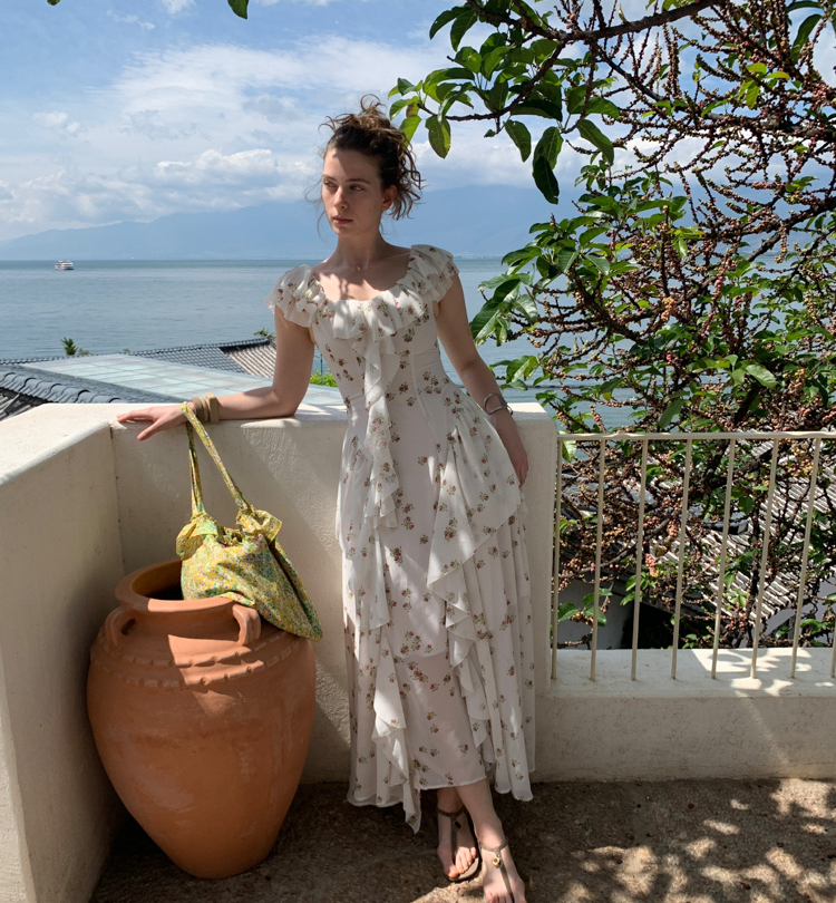 Summer Heavy Industry Fly-Sleeve Lotus Leaf Edge Floral Dress