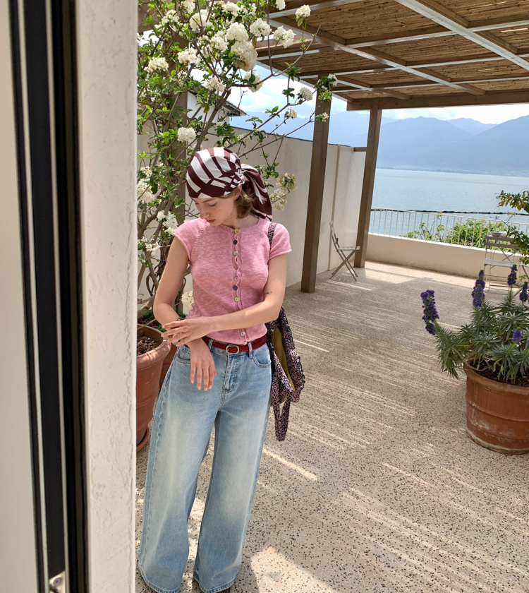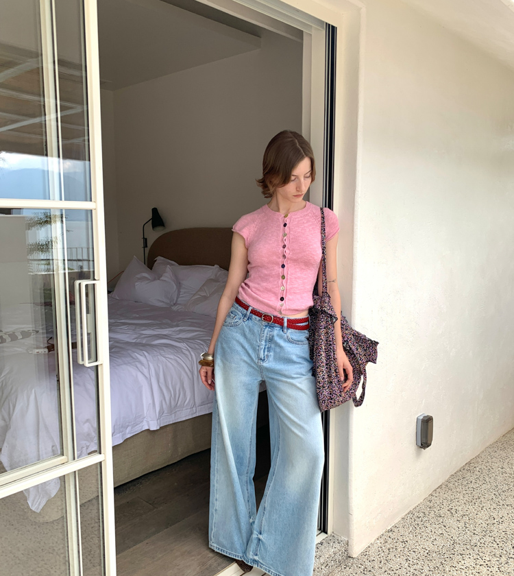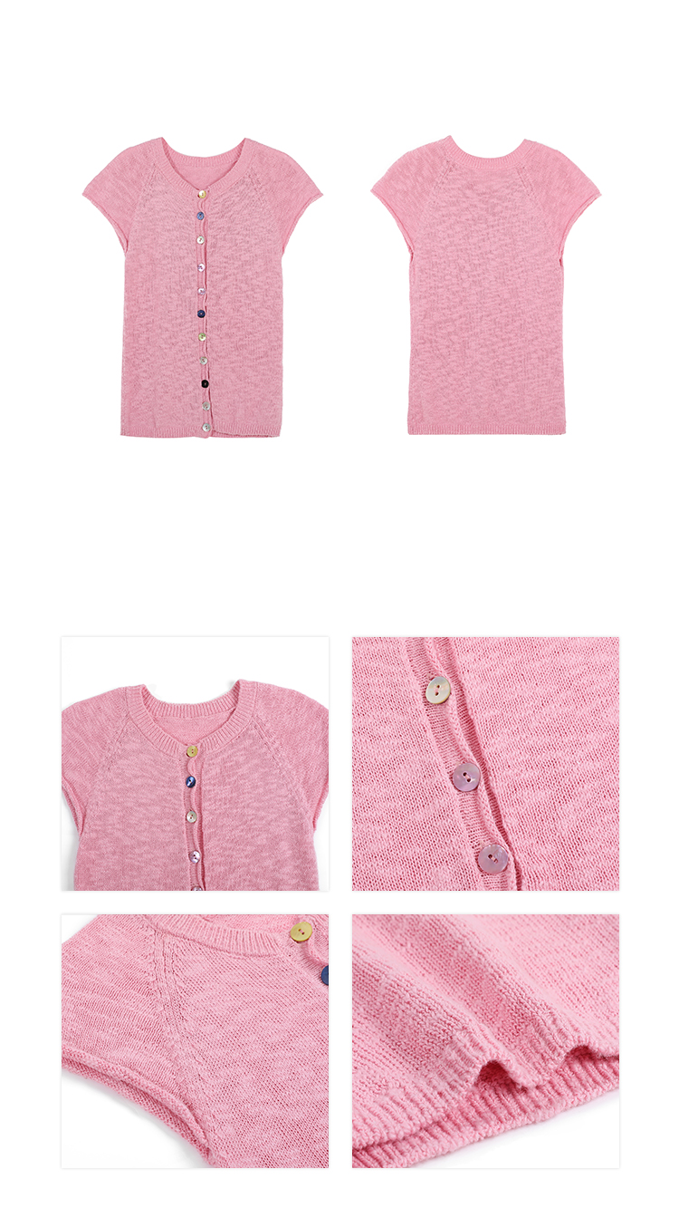 Colored Button-Up Shoulder-Sleeve Knit Top