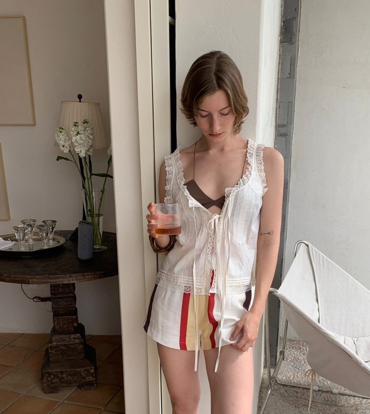 Custom French Retro Lace Floral Tank Top / Shorts / Cardigan Set