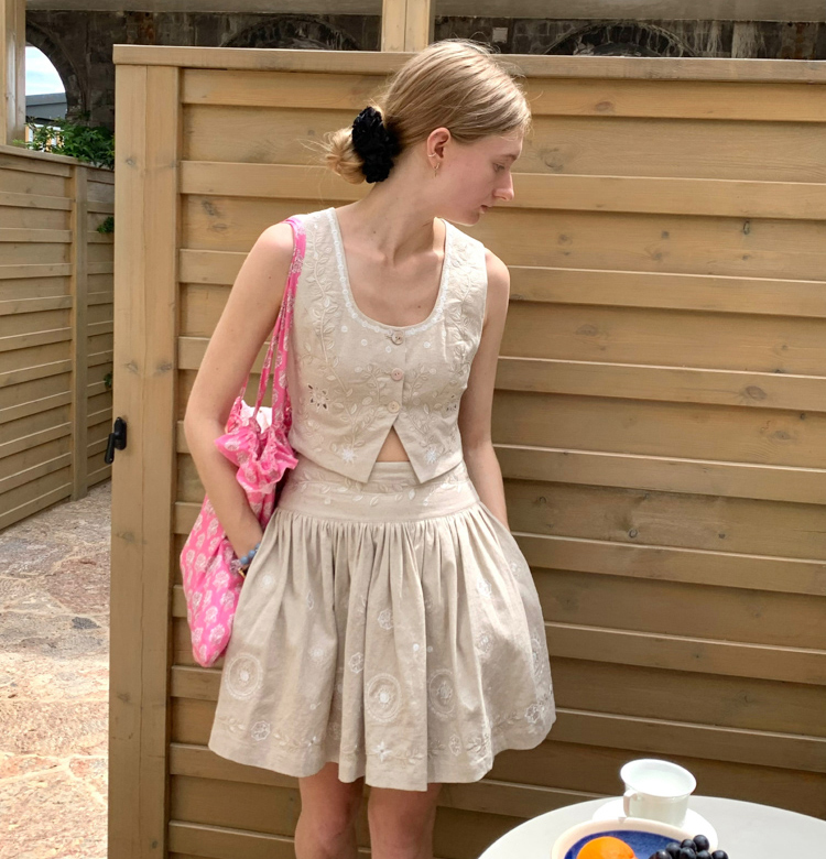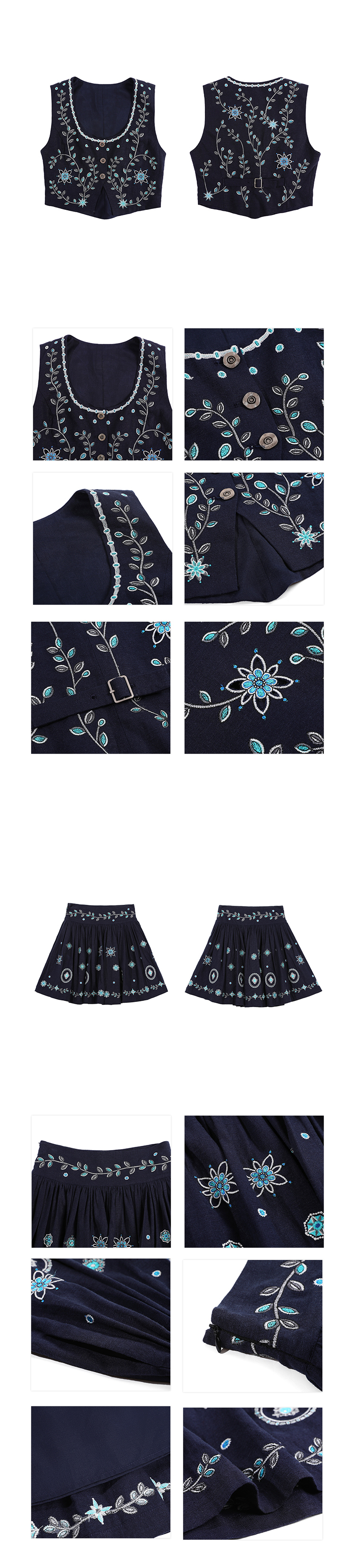 French Embroidered Flower Jacket High-Waisted Half Skirt Set