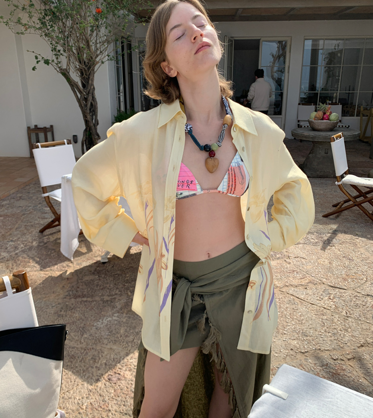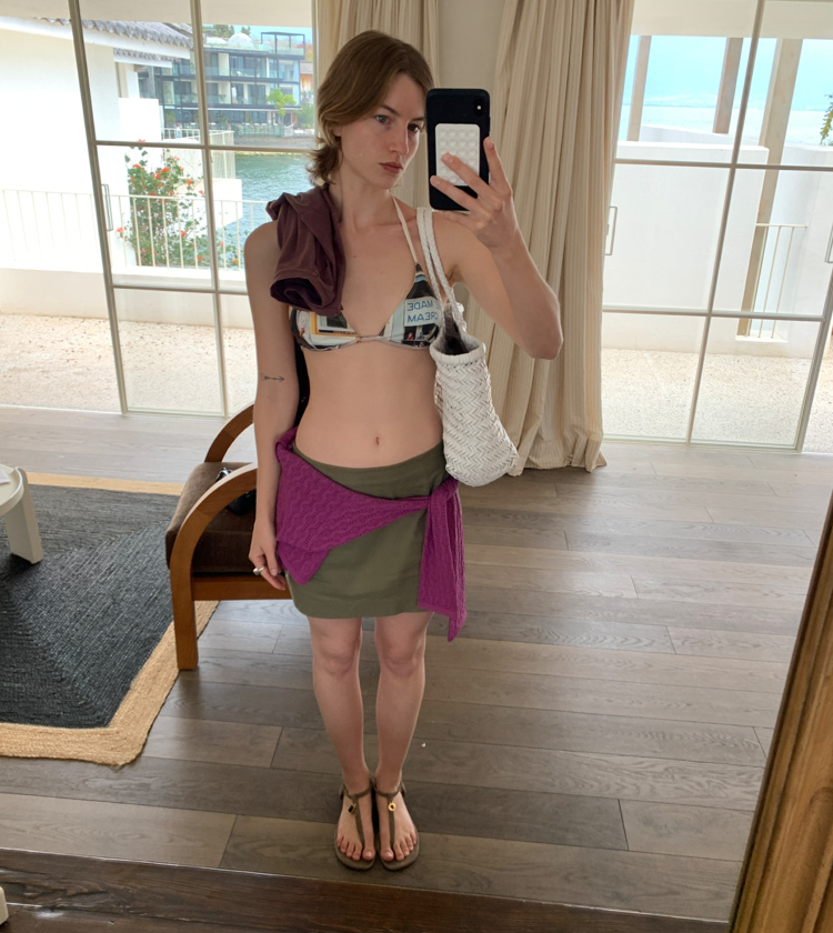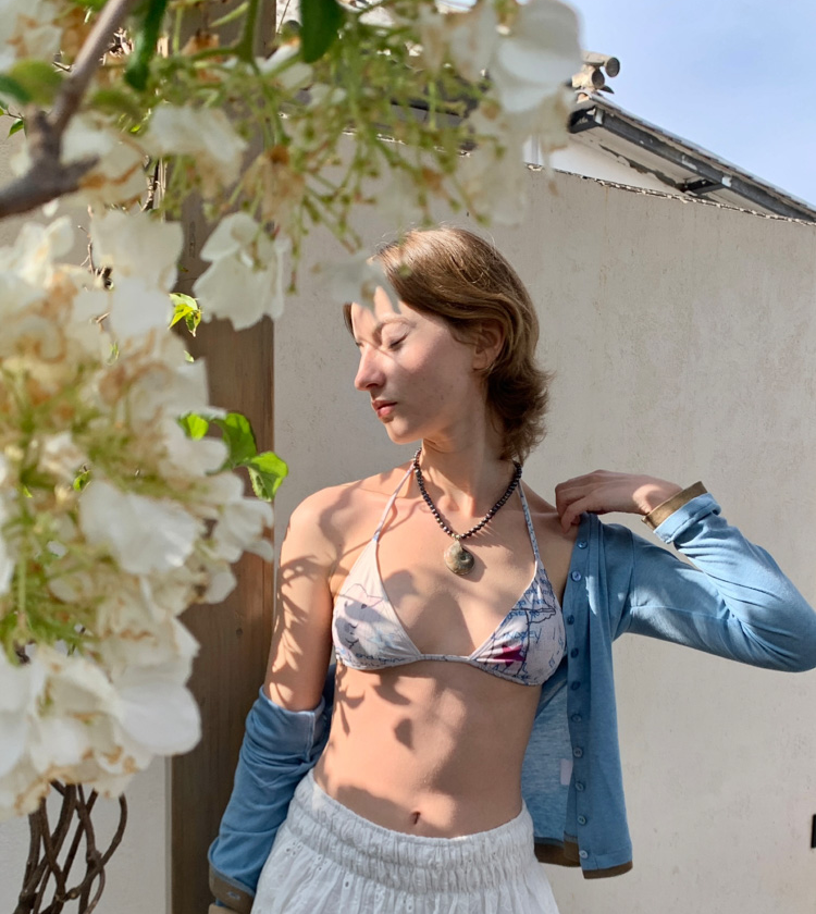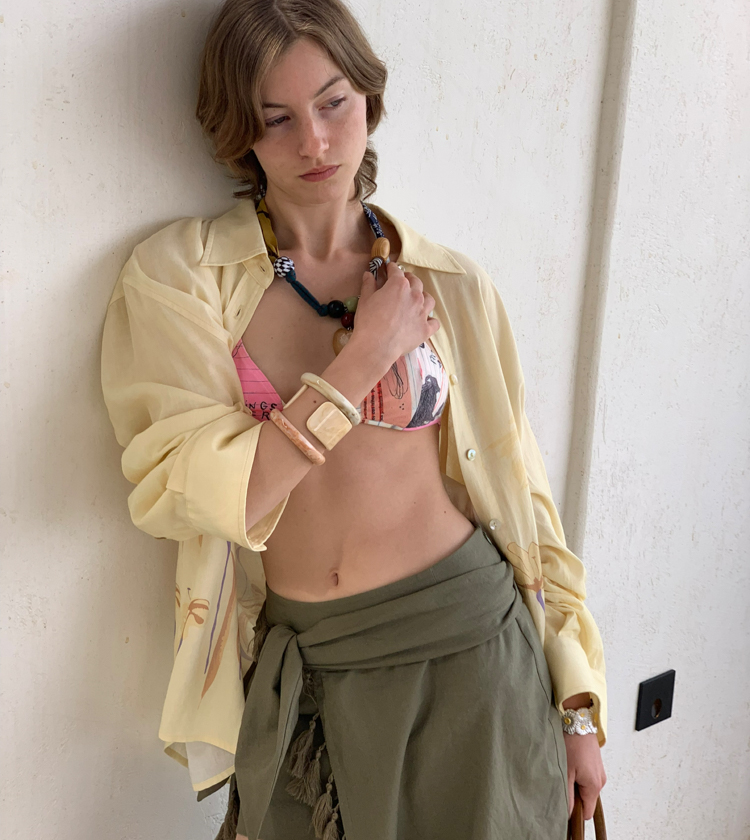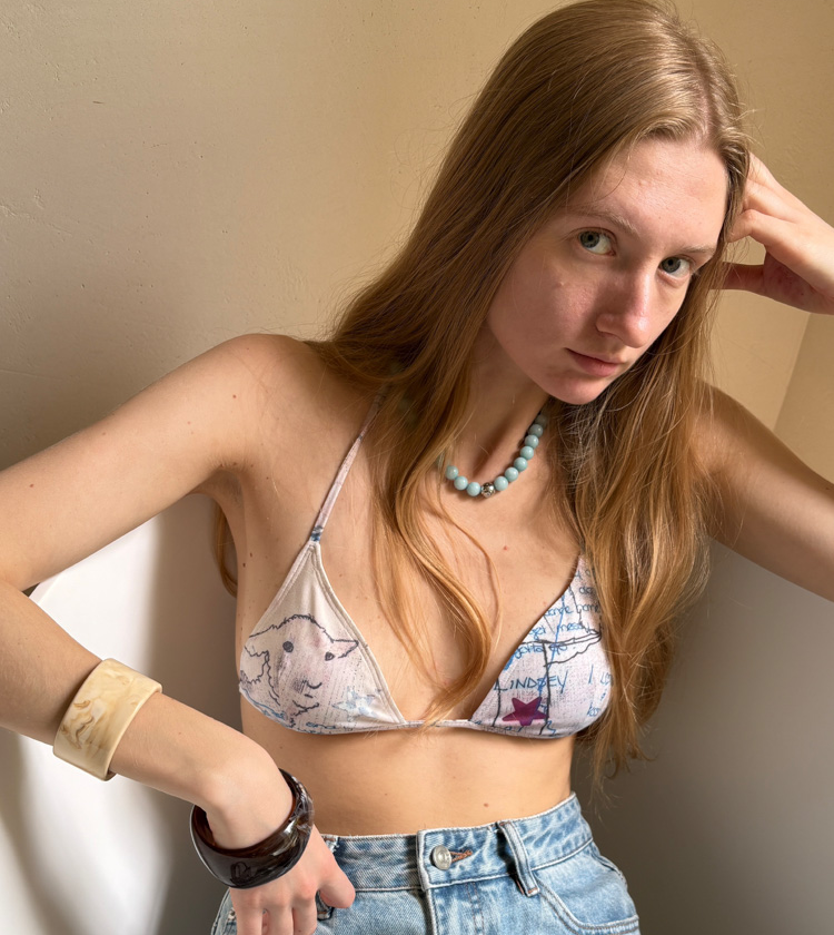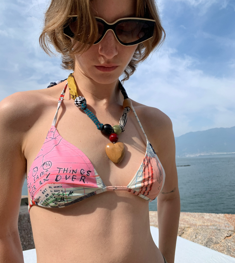 Vacation Swimwear Sketch Print Wrapping Bikini Top