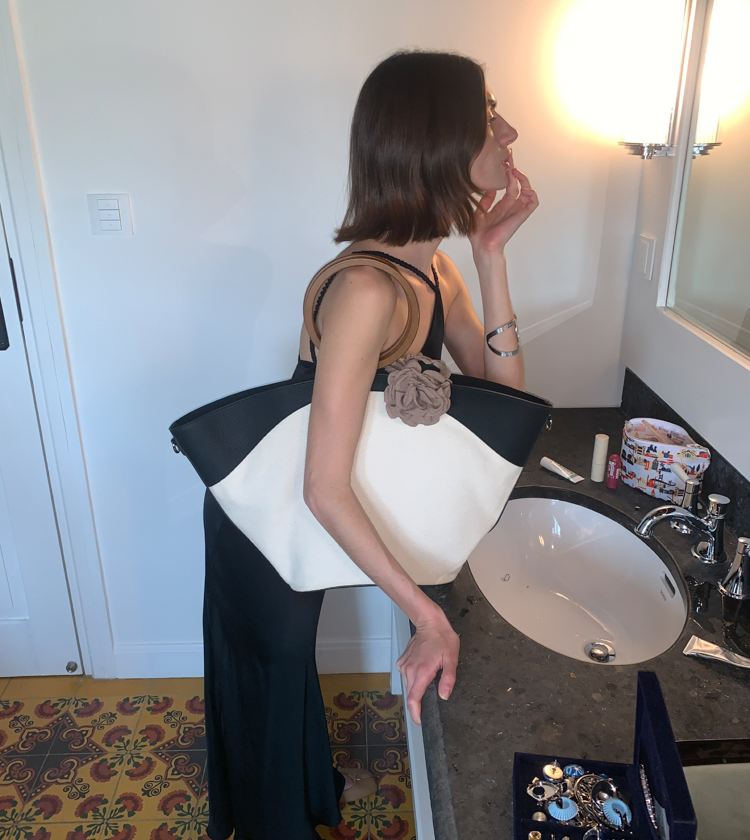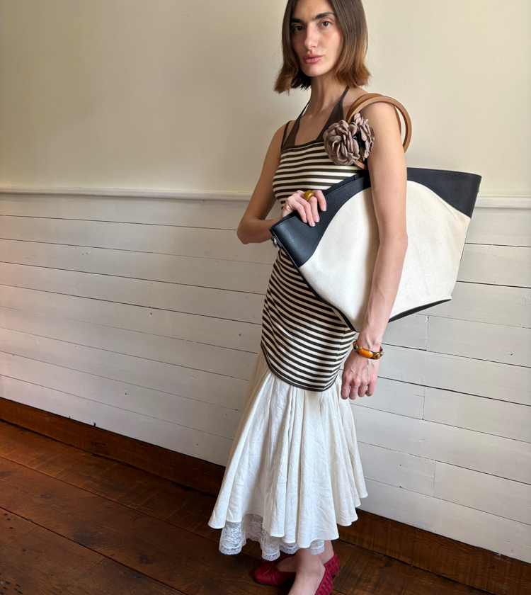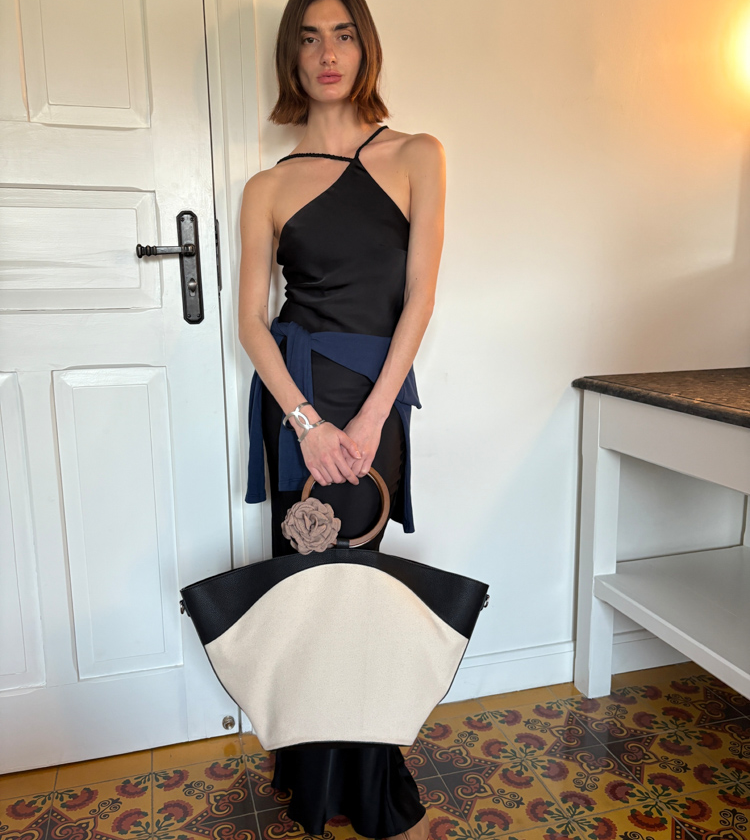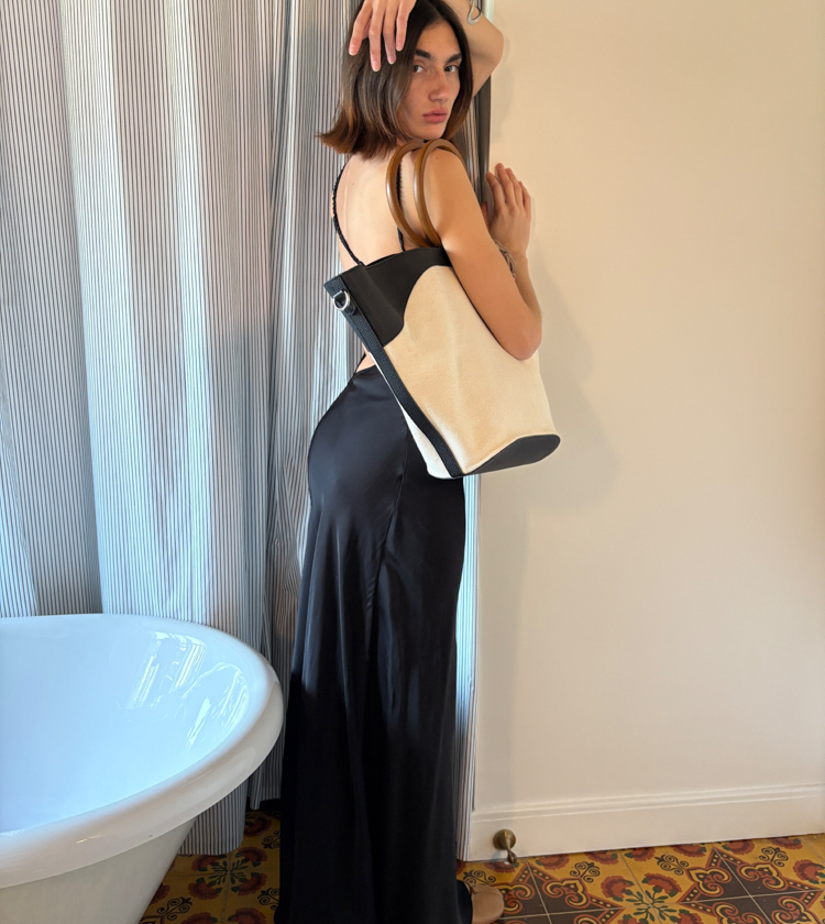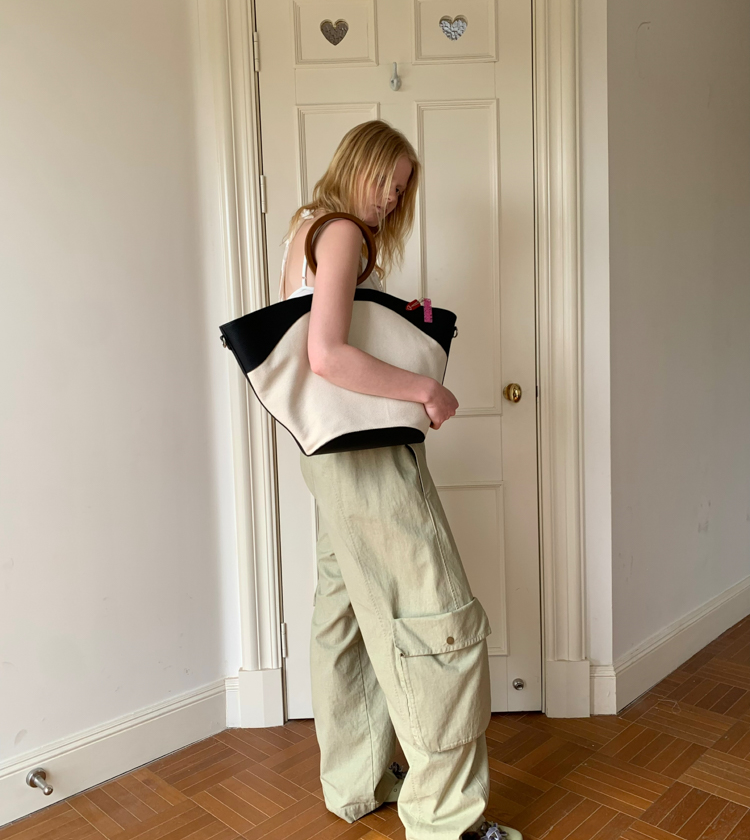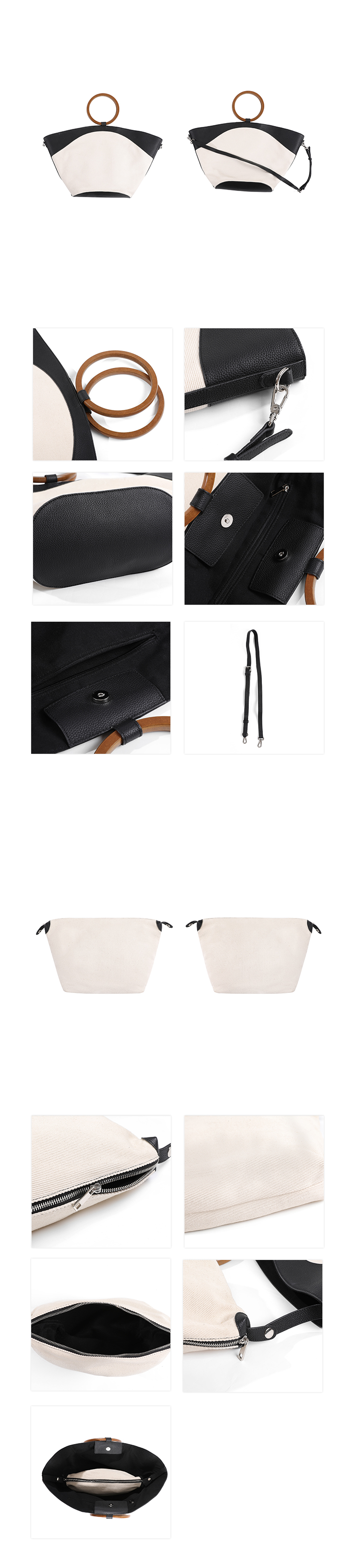 Minimalist Old Money Layer Cowhide Canvas Wood Ring Tote Bag