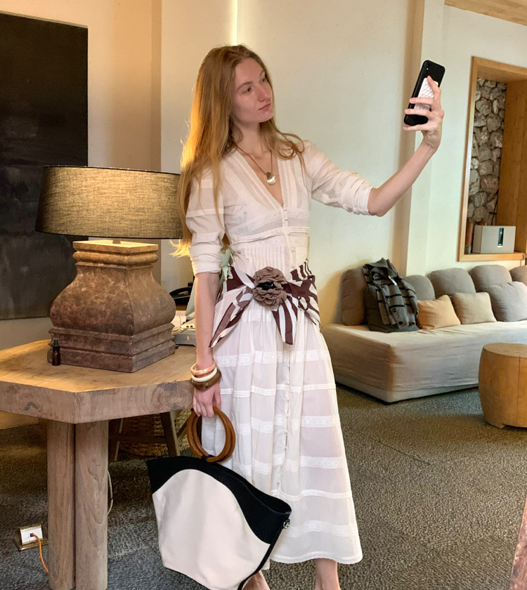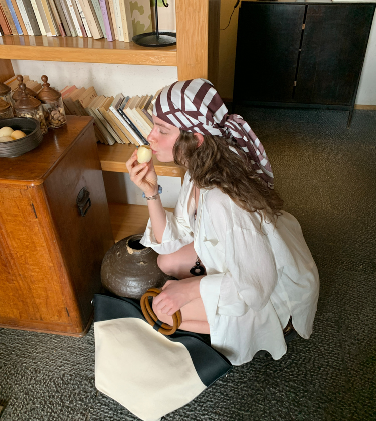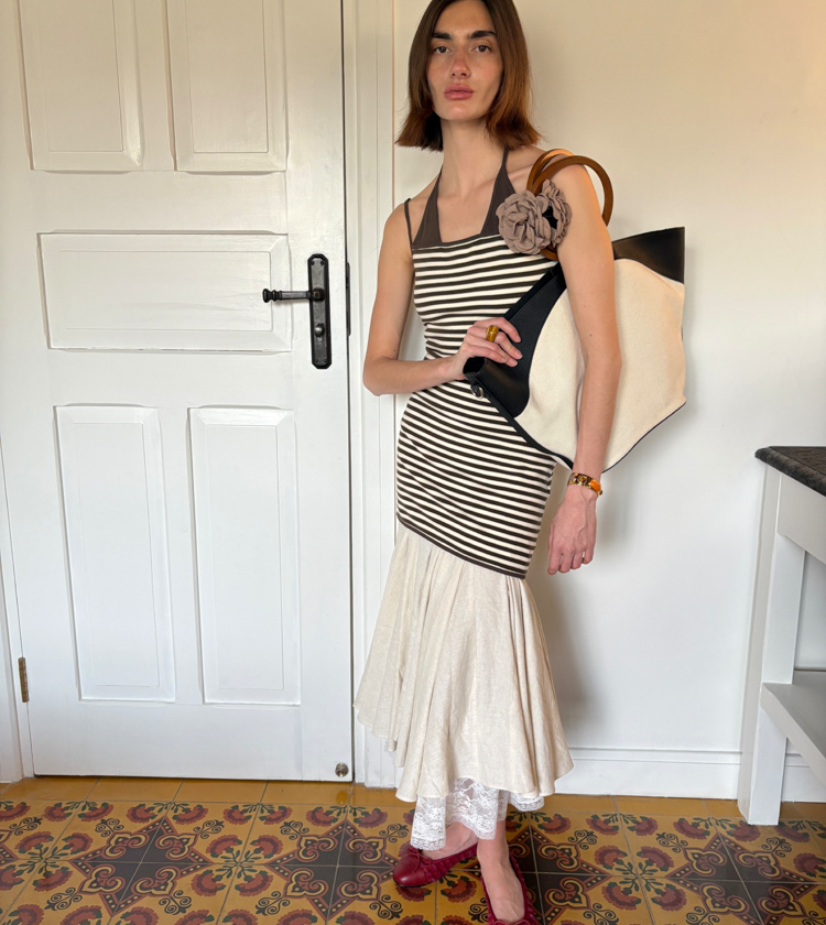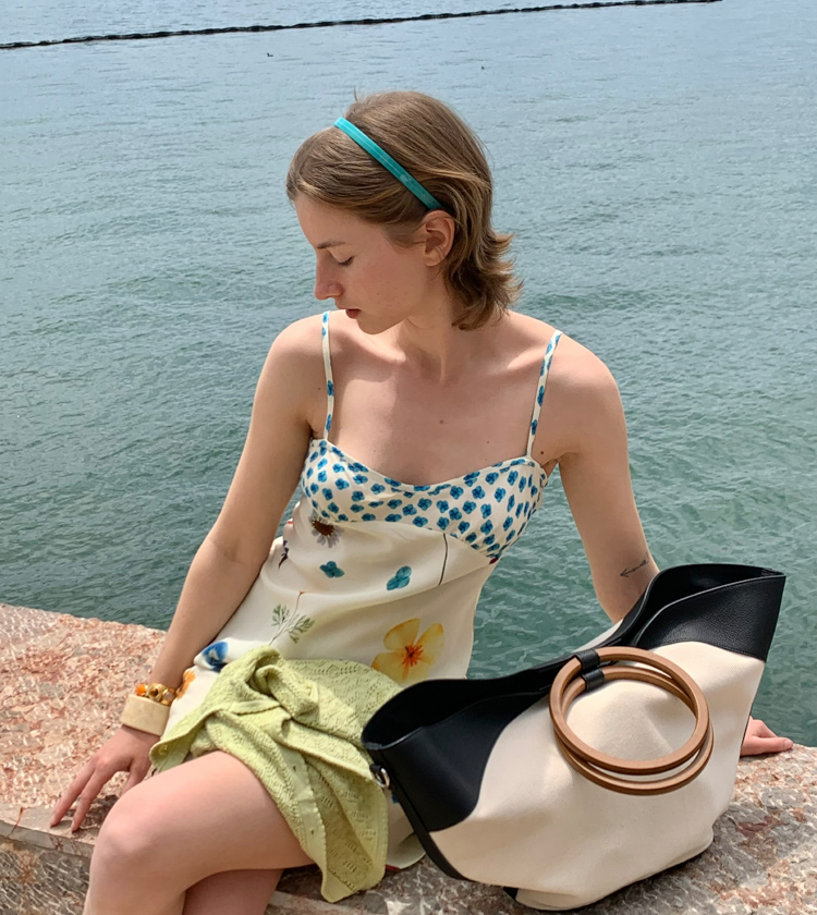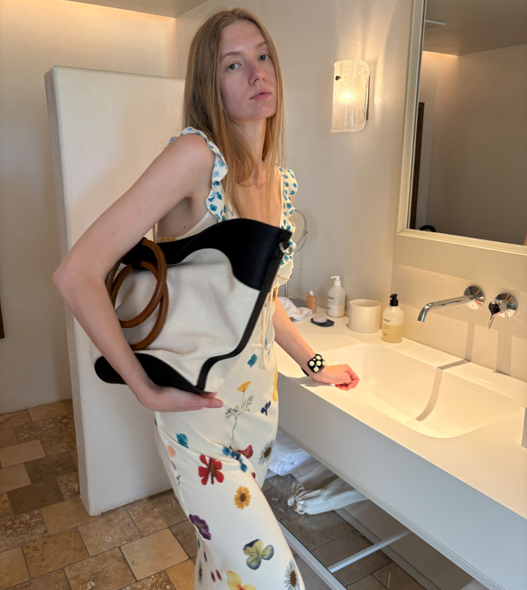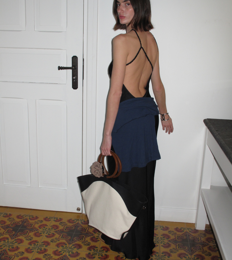 Minimalist Old Money Layer Cowhide Canvas Wood Ring Tote Bag