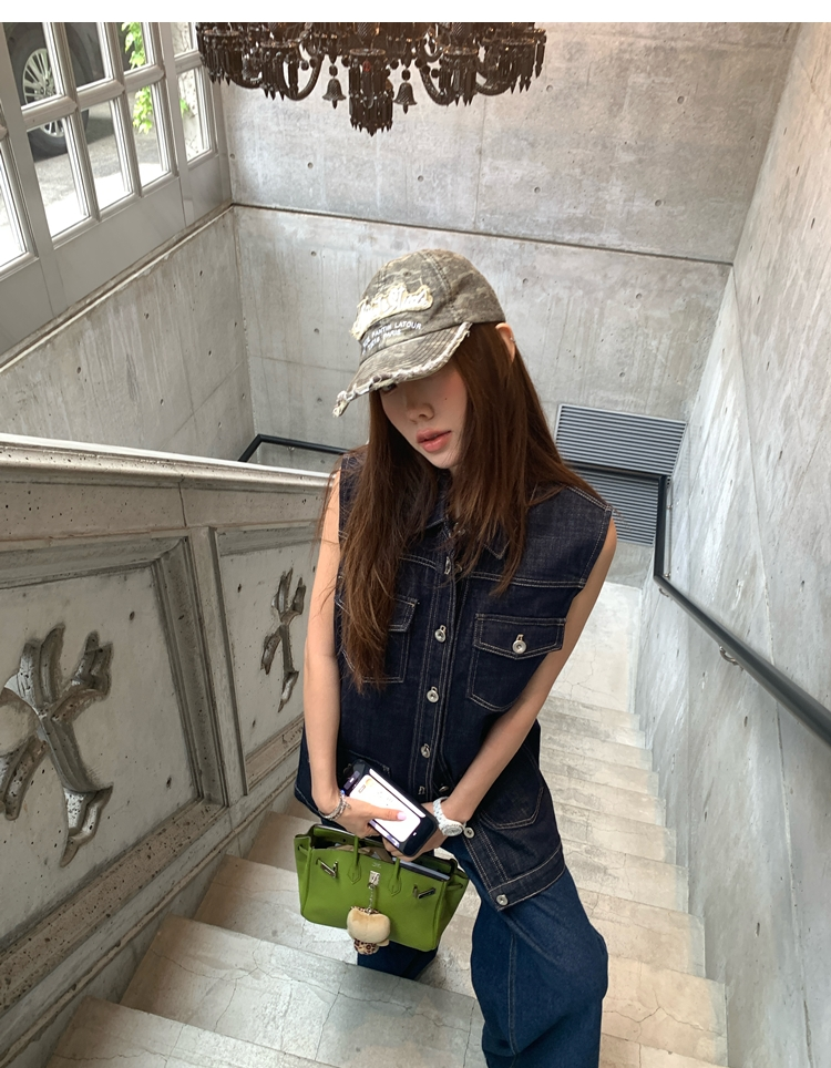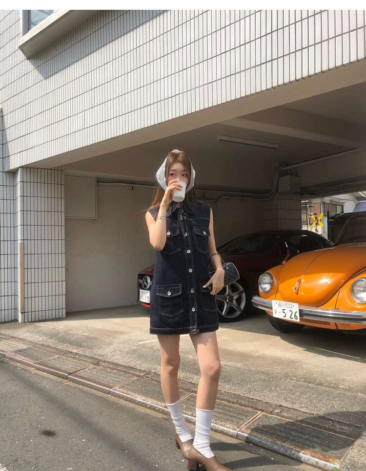 denim lazy temperament workwear vest sleeveless dress