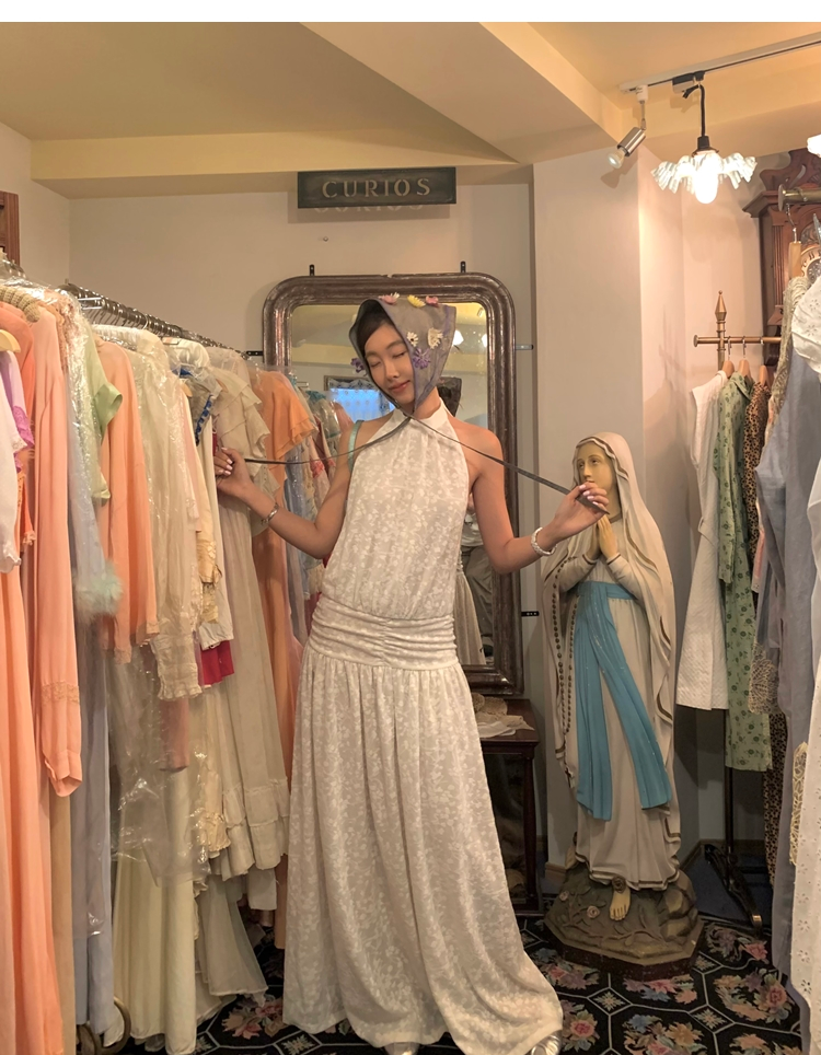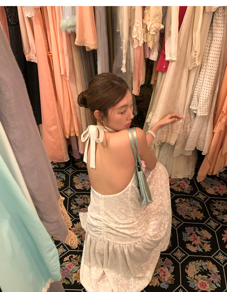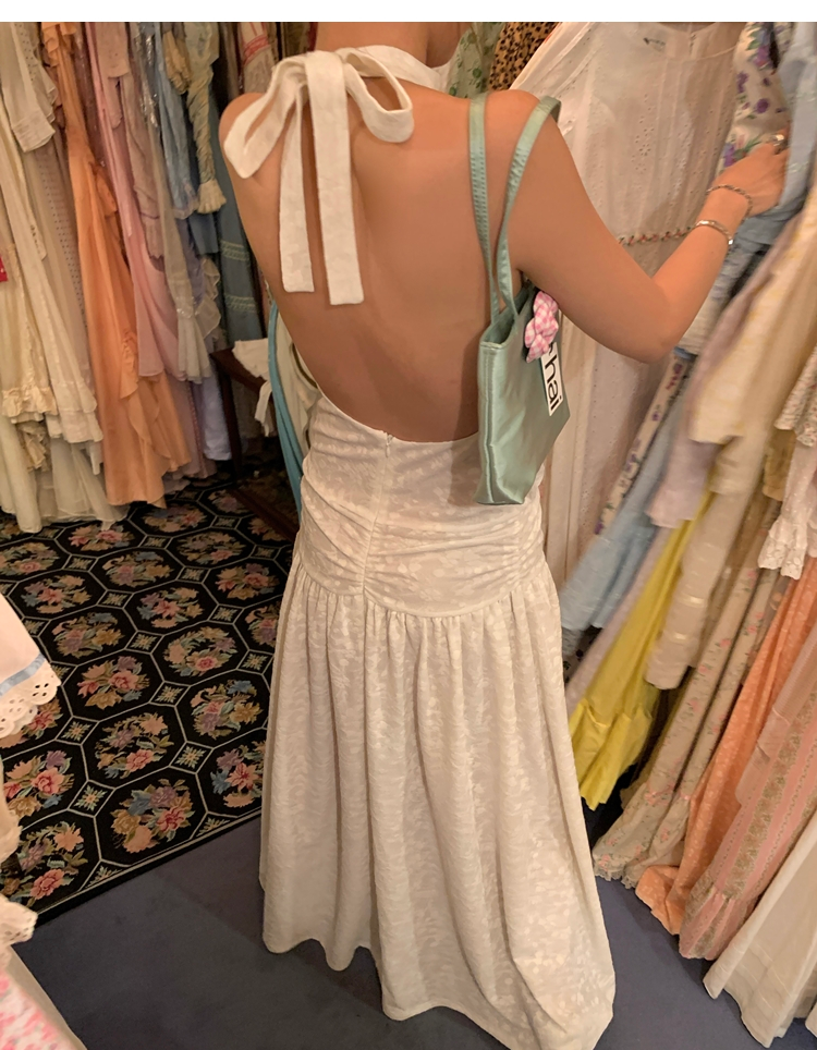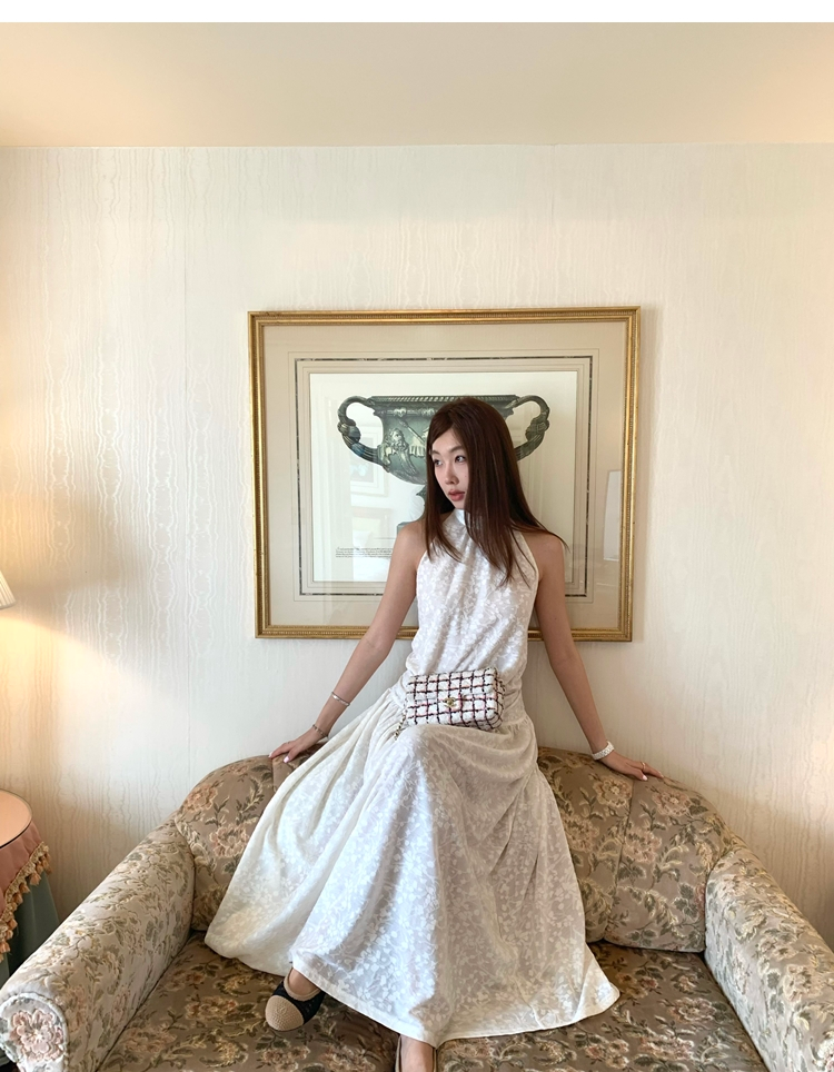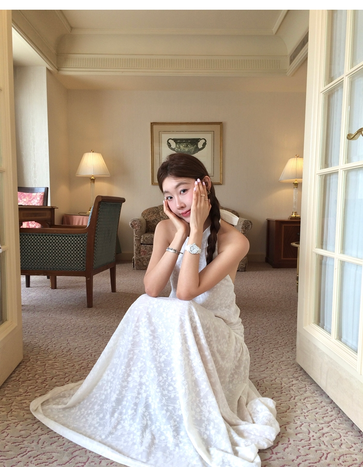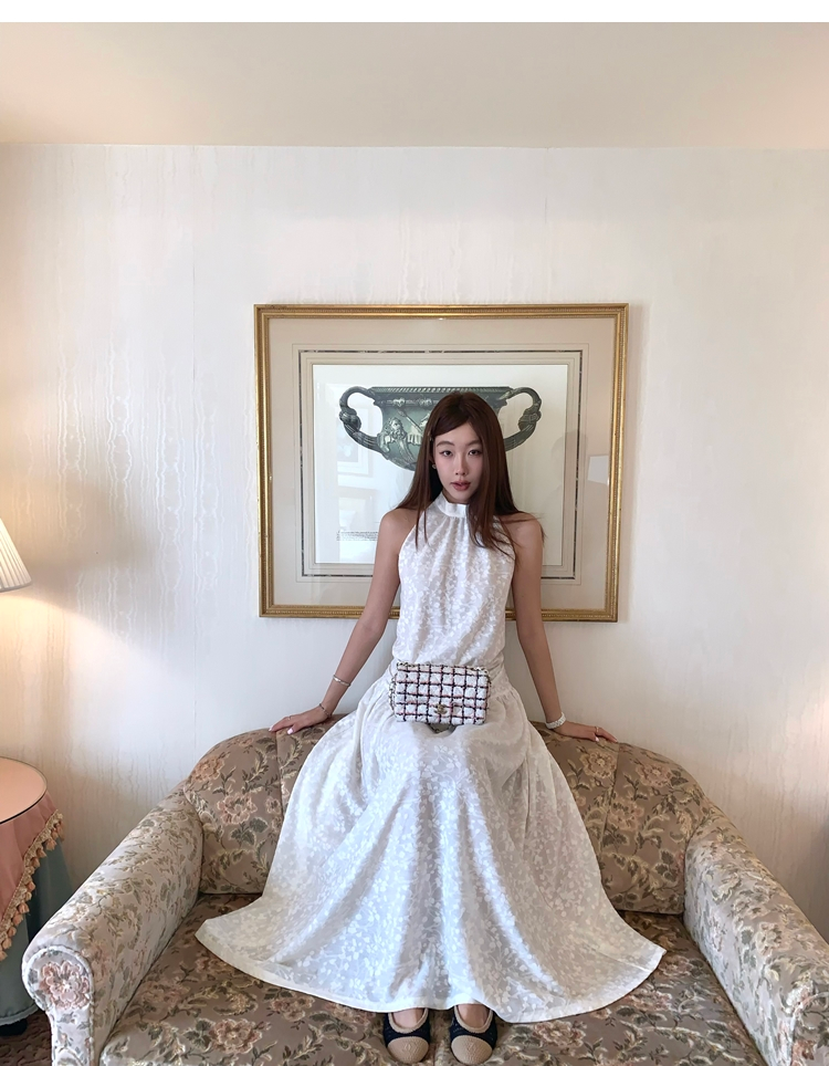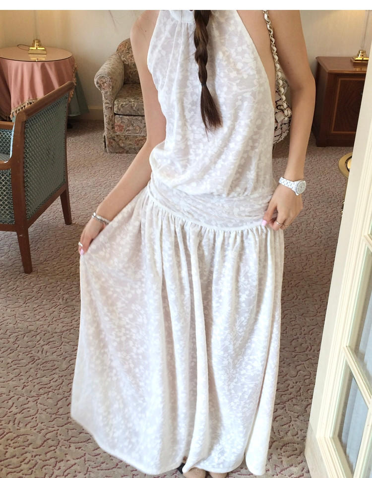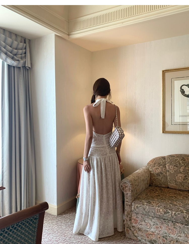 Venus Artistic Unique Lace Jacquard Halter Neck Backless Dress